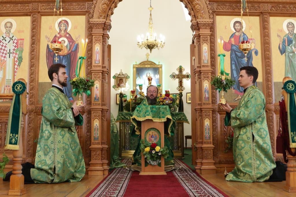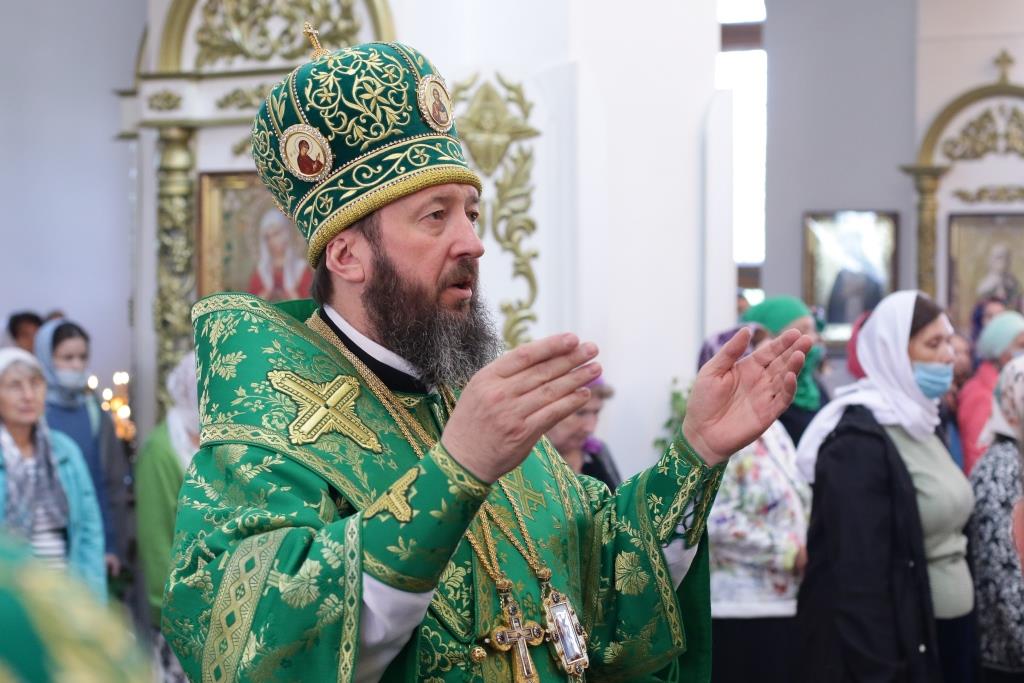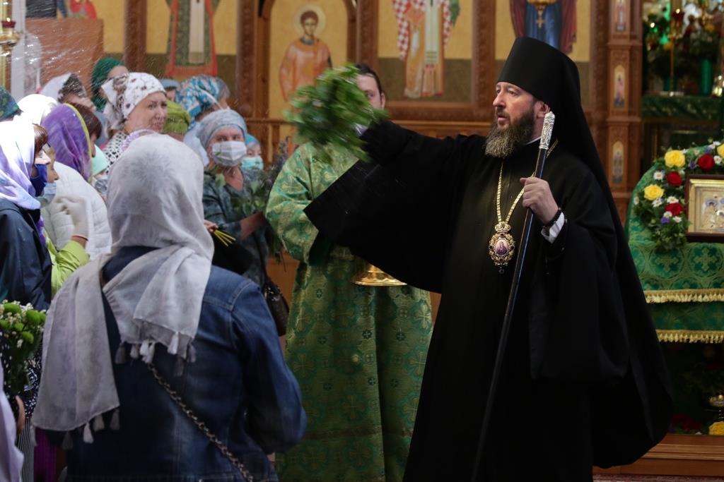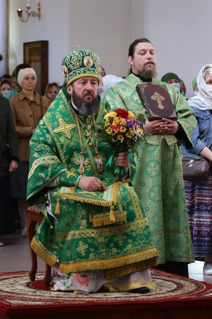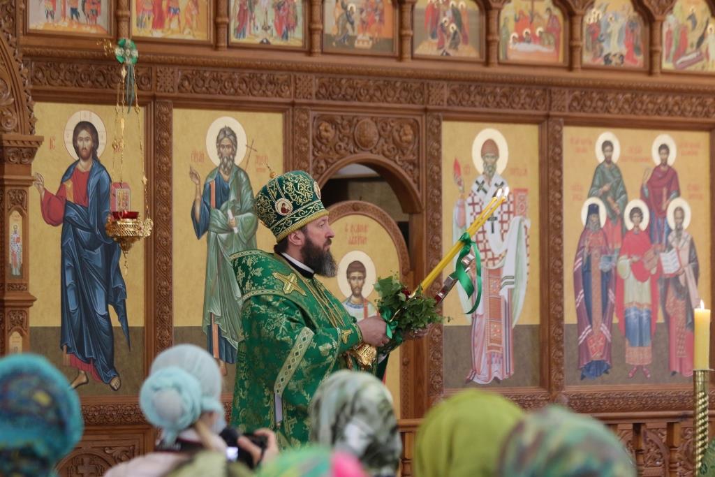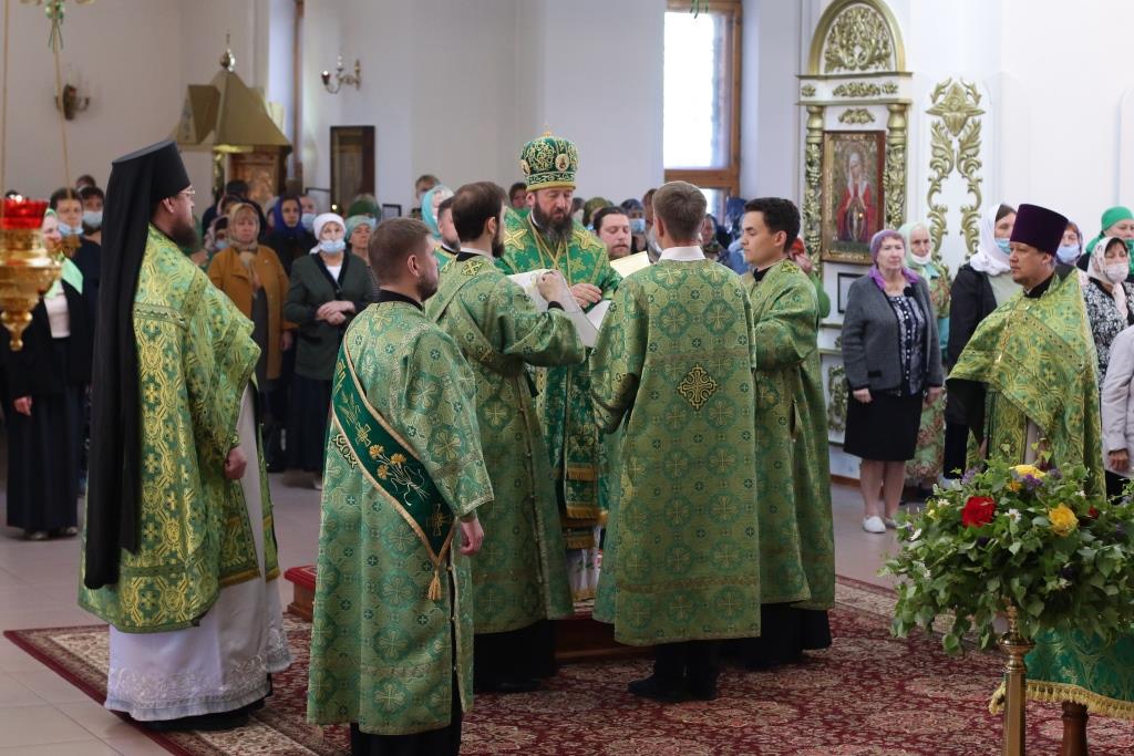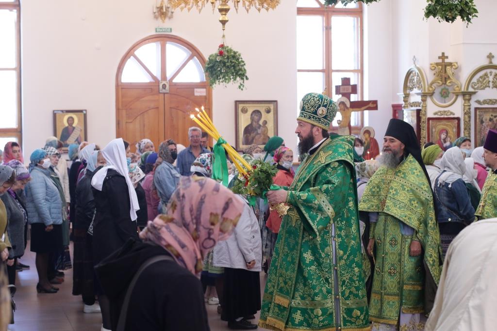Перед причастием мирян проповедовал иеромонах Силуан (Магилев). После окончания Литургии Преосвященнейший Архипастырь совершил Великую вечерню праздника Пятидесятницы с чтением особенных коленопреклонных молитв, в которых испрашивается у Пресвятой Троицы милости, мира и спасения всему православному народу. В завершение Богослужения Преосвященнейший Архипастырь поздравил всех молящихся с престольным праздником Свято-Троицкого монастыря города Усть-Каменогорска и обратился к многочисленной пастве с архипастырским словом.