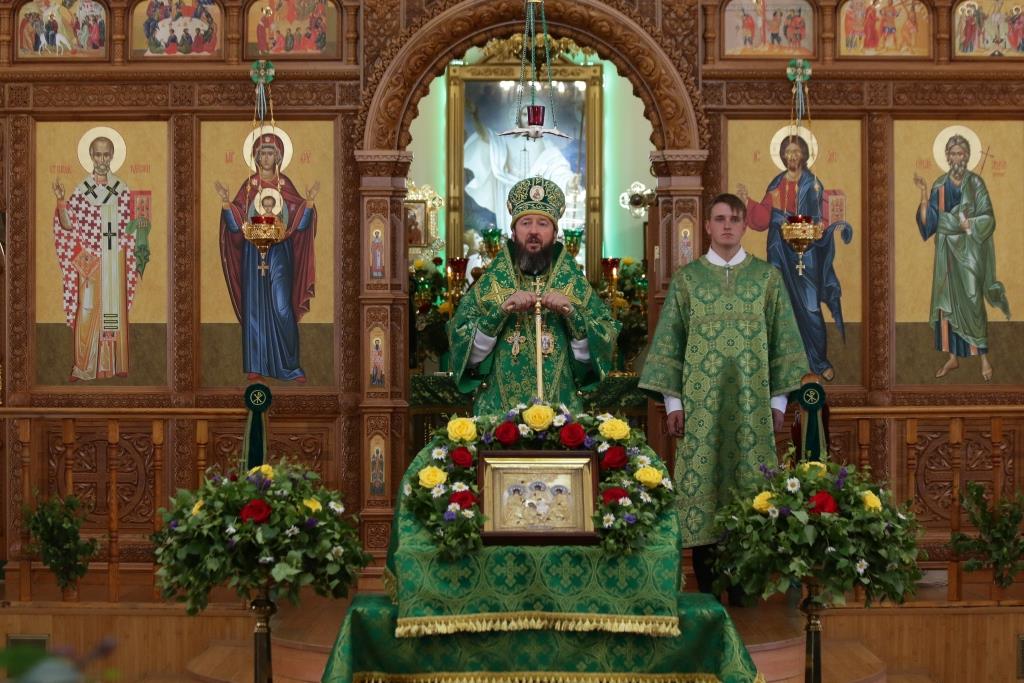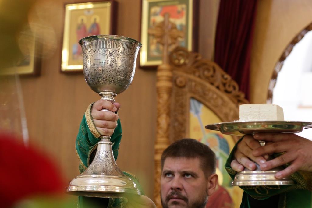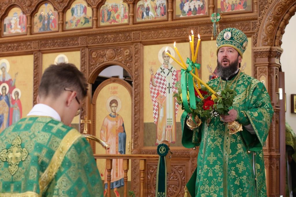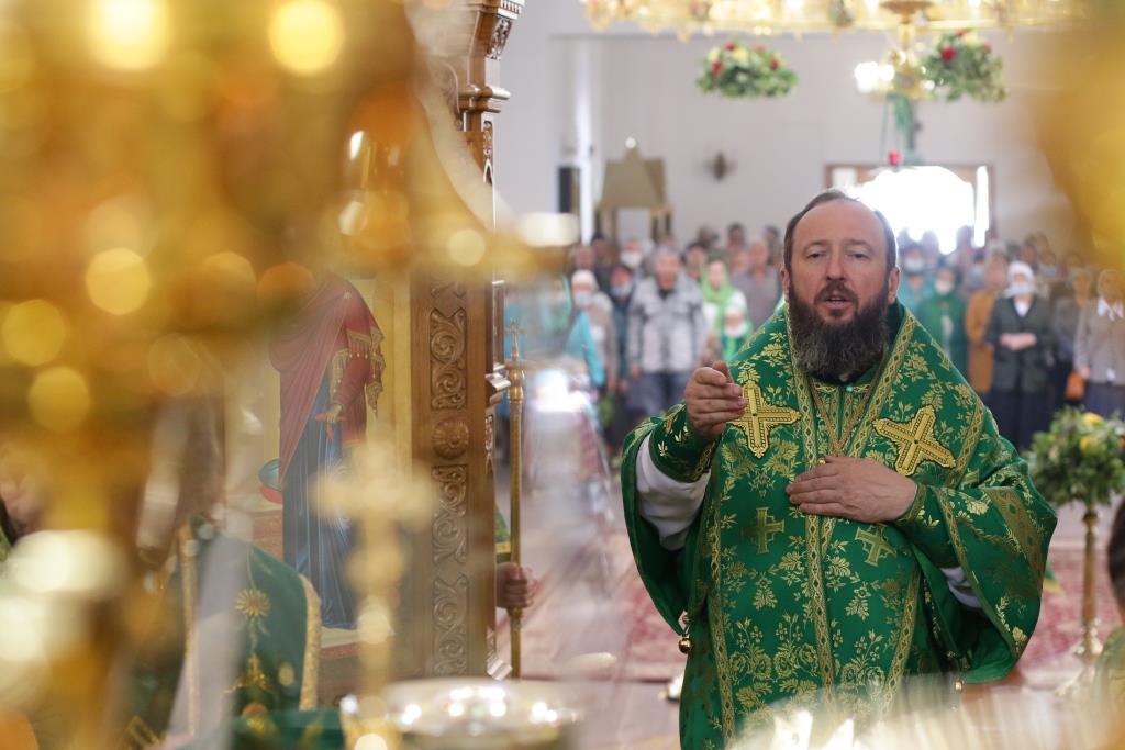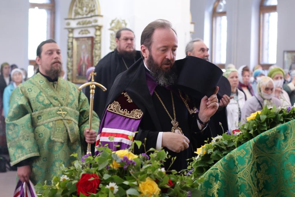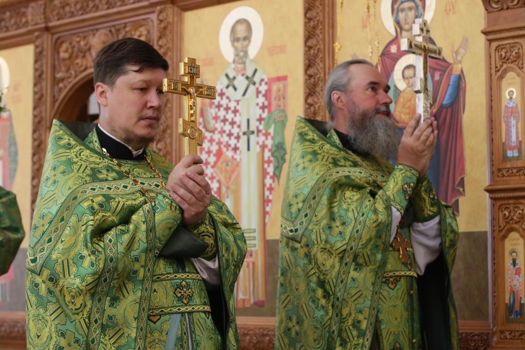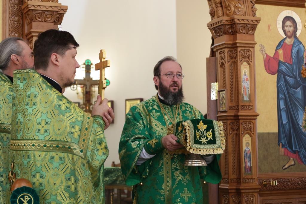 Перед причастием мирян проповедовал иеромонах Силуан (Магилев). После окончания Литургии Преосвященнейший Архипастырь совершил Великую вечерню праздника Пятидесятницы с чтением особенных коленопреклонных молитв, в которых испрашивается у Пресвятой Троицы милости, мира и спасения всему православному народу. В завершение Богослужения Преосвященнейший Архипастырь поздравил всех молящихся с престольным праздником Свято-Троицкого монастыря города Усть-Каменогорска и обратился к многочисленной пастве с архипастырским словом.