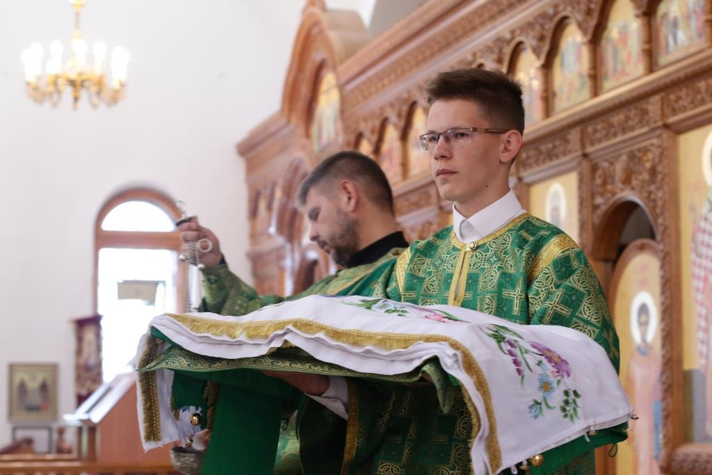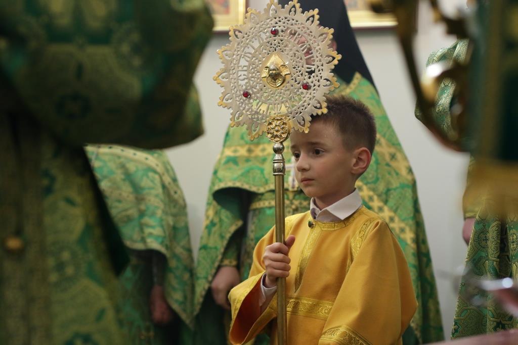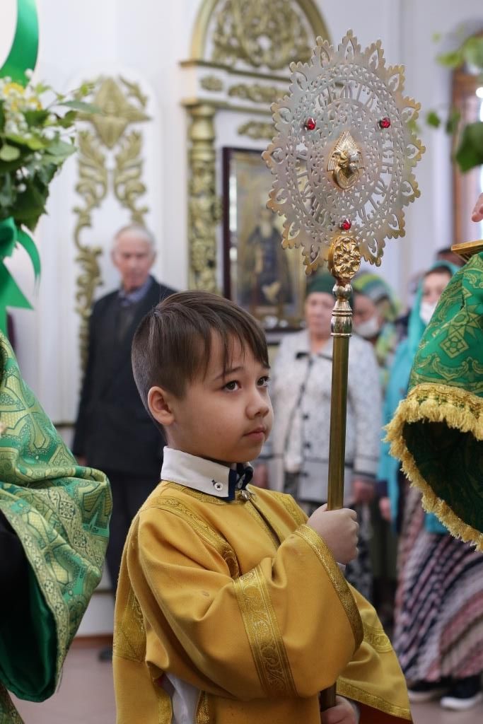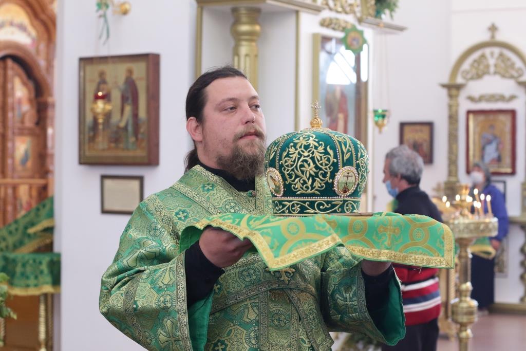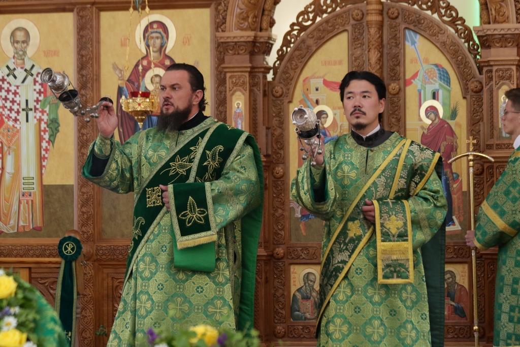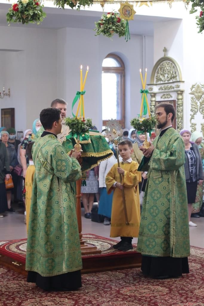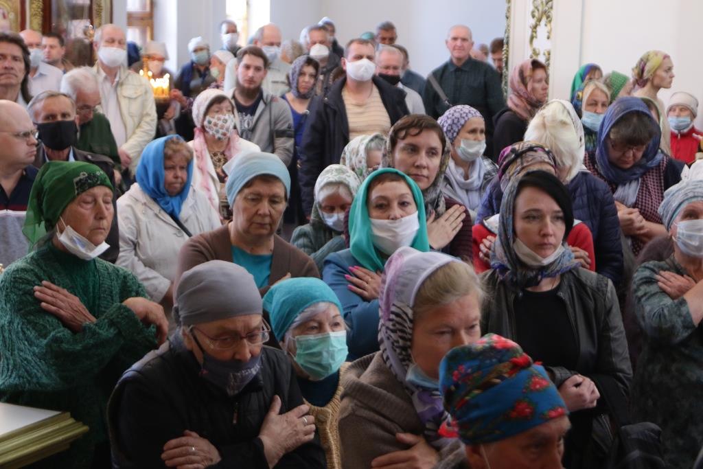 Песнопения праздника Пятидесятницы и Божественной Литургии исполнял хор кафедрального собора под управлением регента Н. Романцовой. За богослужением молились прихожане кафедрального собора и насельники Свято-Троицкого монастыря, сотрудники епархиального управления.