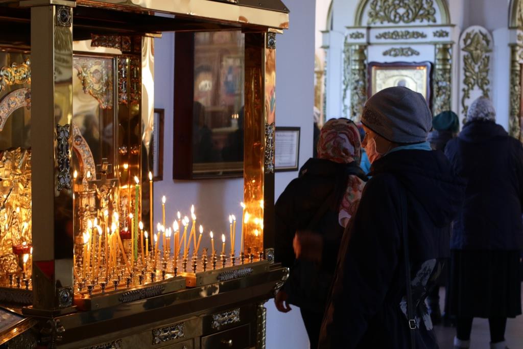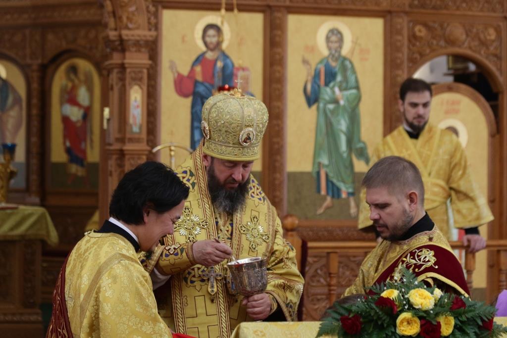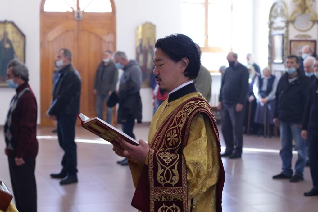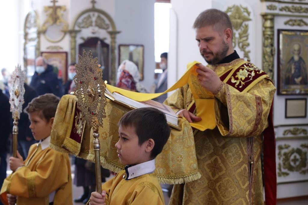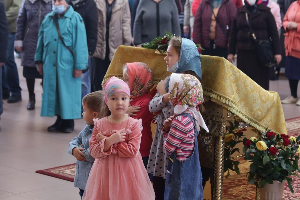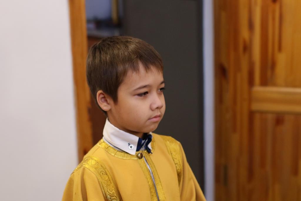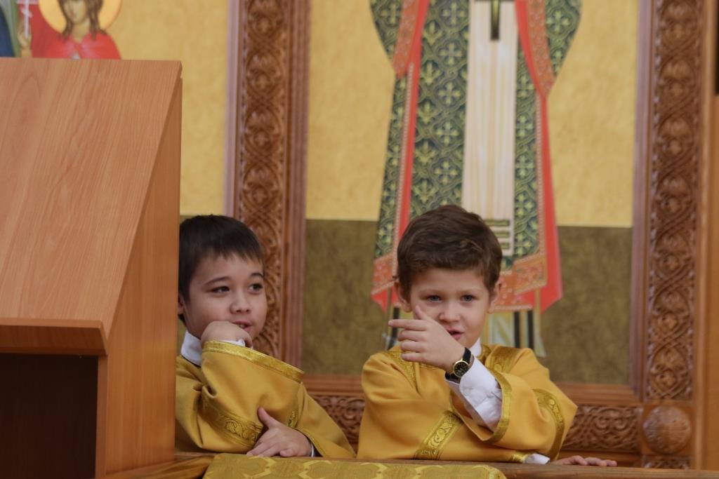 Хор под управлением регента Н. Романцовой исполнял песнопения Божественной Литургии. За богослужением молились прихожане кафедрального собора и братия Свято-Троицкого мужского монастыря города Усть-Каменогорска. Перед причастием мирян проповедовал иеромонах Силуан (Магилев).