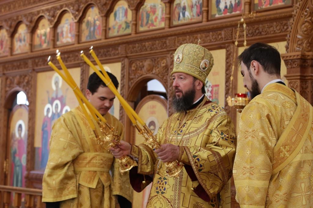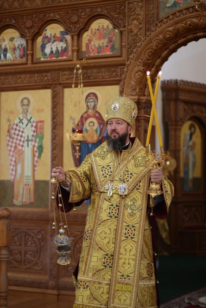 После завершения воскресной Литургии Владыка Амфилохий поздравил молящихся с праздником и обратился к прихожанам с проповедью.