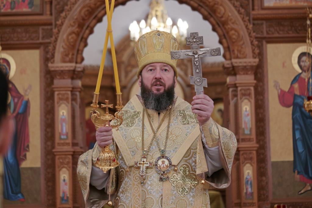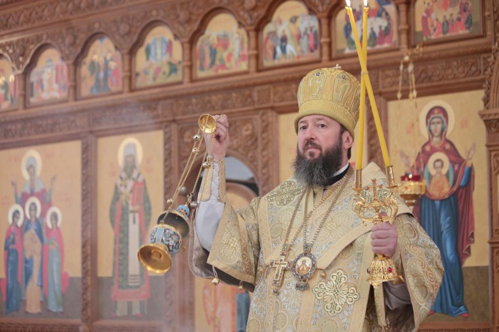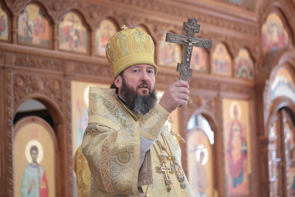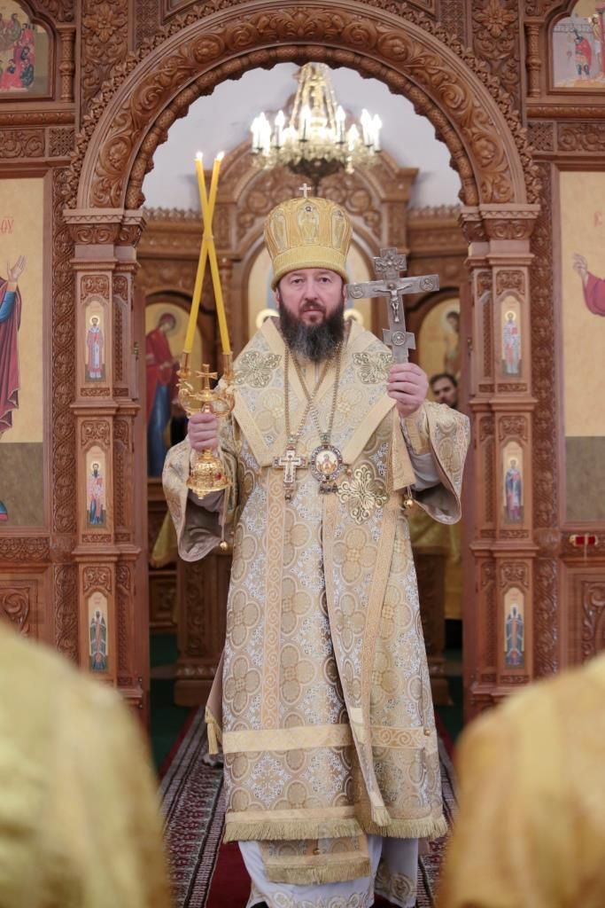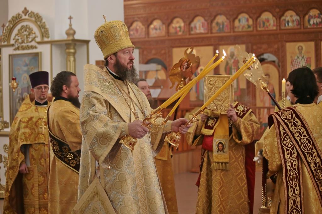 После заамвонной молитвы было совершено славление Пресвятой Богородице пред Её образом «Скоропослушница». В завершение Литургии Преосвященнейший Владыка поздравил молящихся с праздником и обратился к прихожанам со словами проповеди.