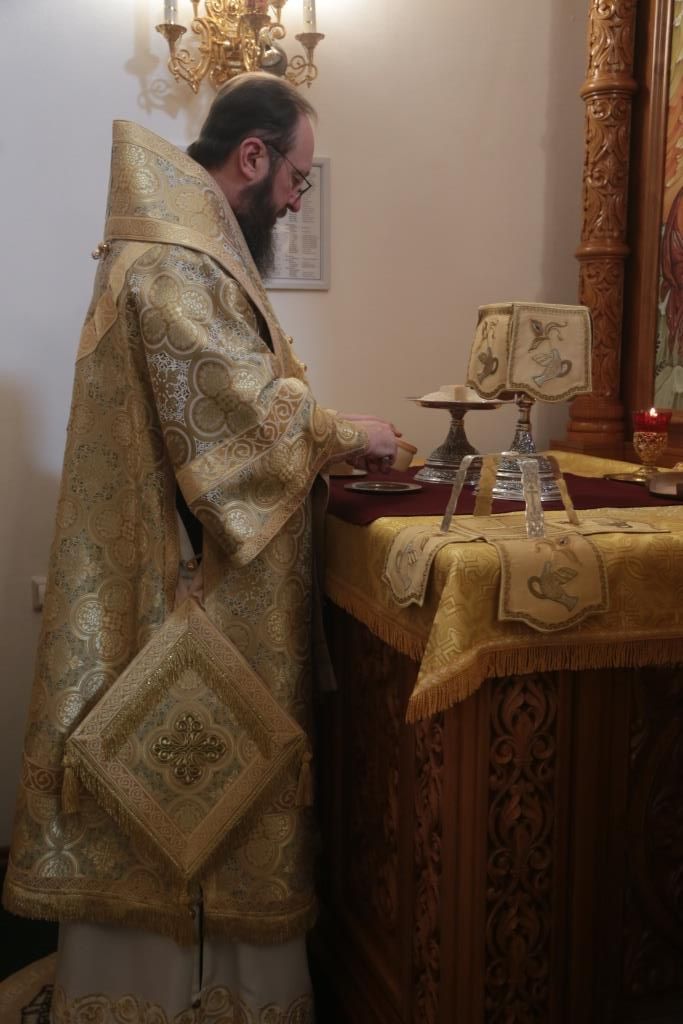 Преосвященнейший Епископ Усть-Каменогорский и Семипалатинский Амфилохий совершил Божественную Литургию святителя Иоанна Златоуста в Андреевском кафедральном соборе города Усть-Каменогорска. Его Преосвященству сослужили: ключарь собора иеромонах Никодим (Авдеев), заведующий канцелярией епархии иерей Константин Дьяков, секретарь епархии диакон Илия Кван, протодиаконы Георгий Засыпкин и Андрей Дудник, диаконы Владимир Лаврешин и Иоанн Толмачев.
