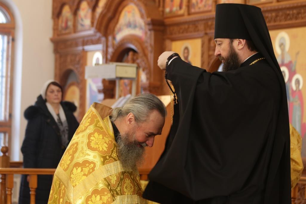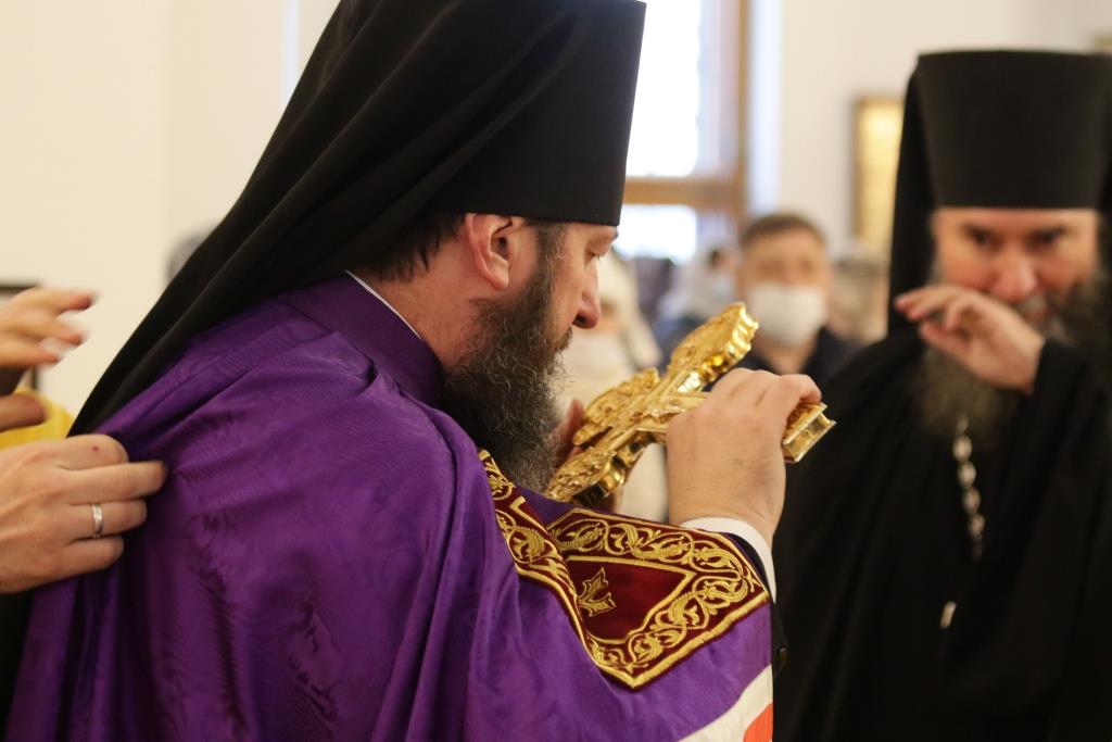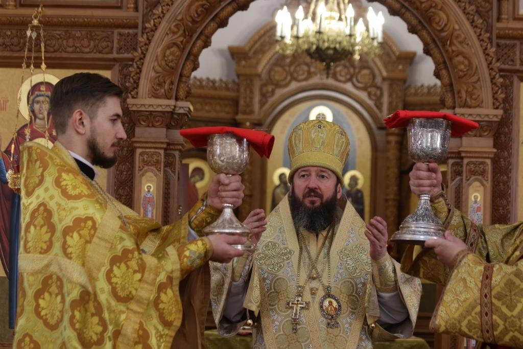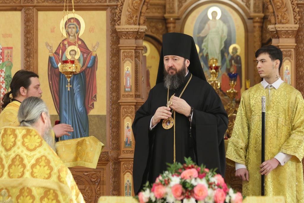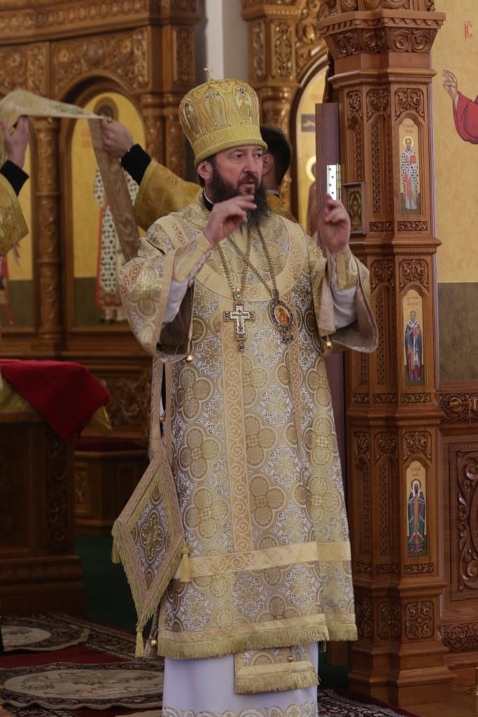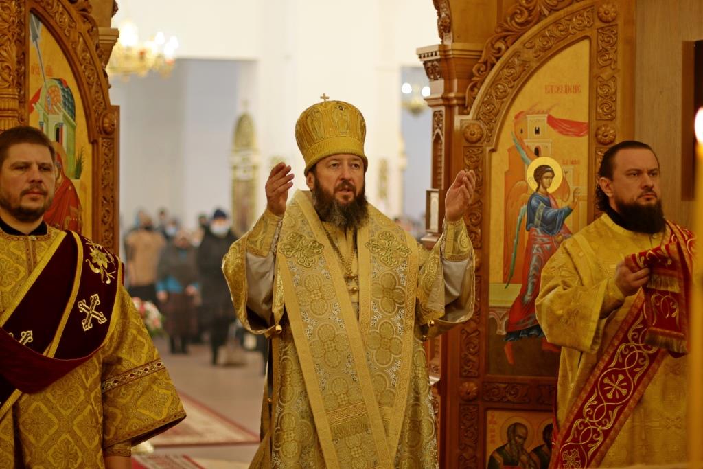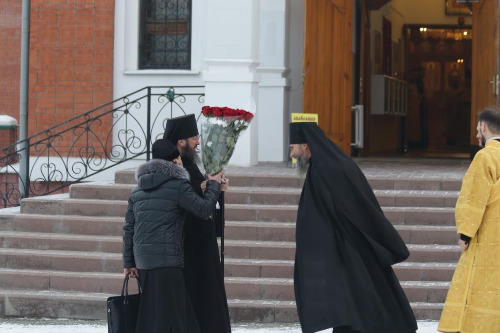 После богослужения Преосвященнейший Архипастырь принял поздравления от духовенства и прихожан кафедрального собора.