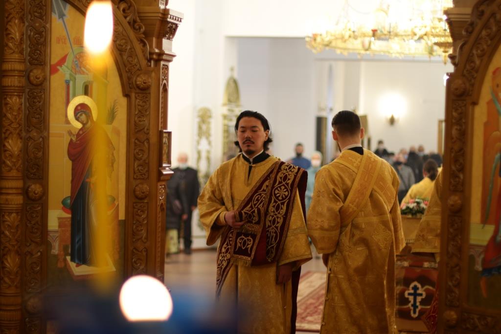 Управляющий Усть-Каменогорской и Семипалатинской епархией Преосвященнейший епископ Амфилохий совершил праздничную Божественную Литургию в Андреевском кафедральном соборе города Усть-Каменогорска. Архипастырю сослужили: духовник епархии архимандрит Спиридон (Теплухин), ключарь собора иеромонах Никодим (Авдеев), клирики собора иеромонах Силуан (Магилев), иерей Роман Подрезов, иерей Иоанн Толмачев, секретарь епархии диакон Илия Кван, протодиаконы Георгий Засыпкин и Андрей Дудник.