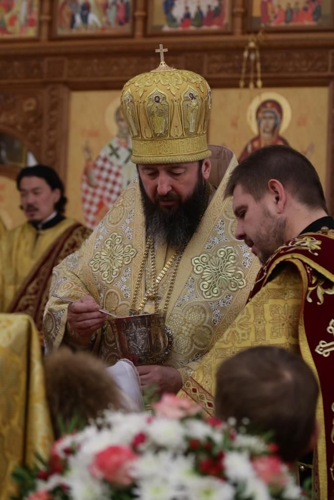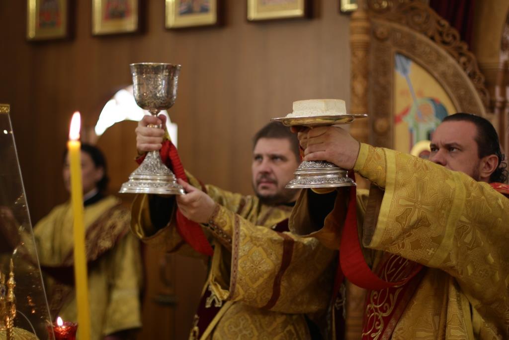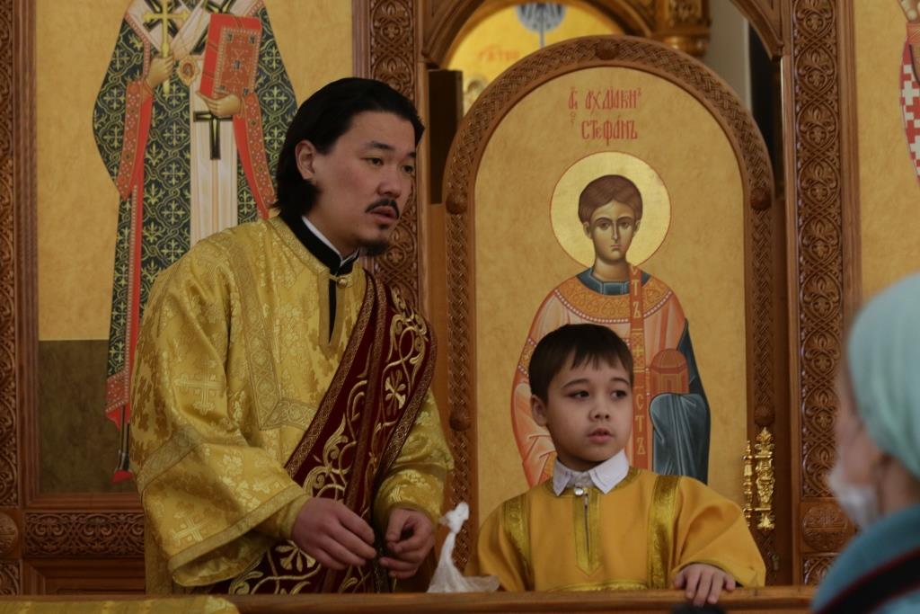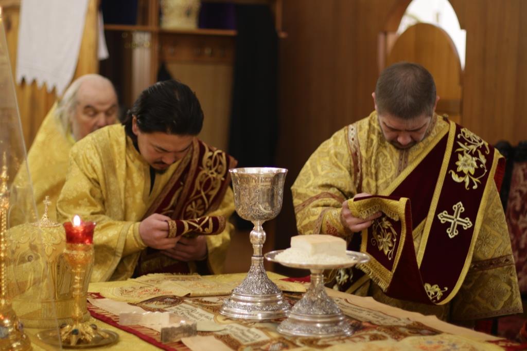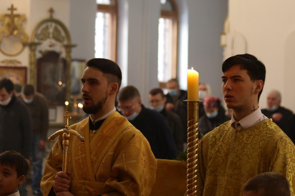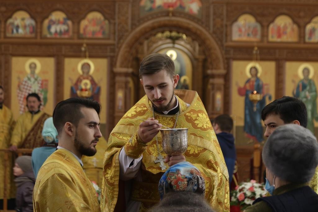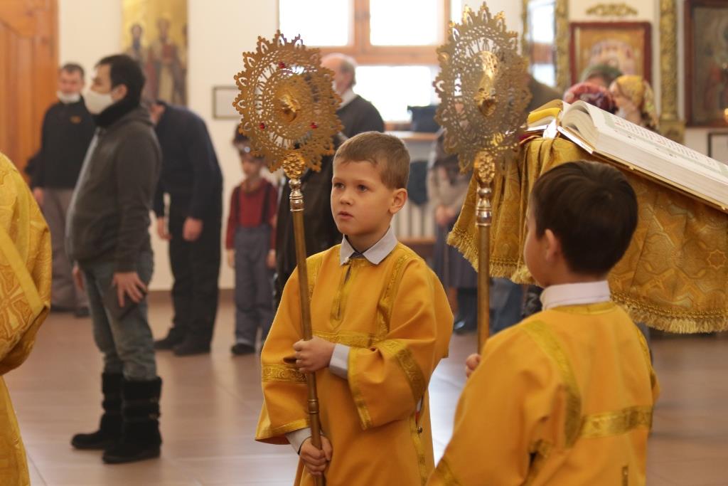 Песнопения Божественной Литургии исполнял хор под управлением регента Н. Романцовой. За богослужением молились прихожане главного храма Рудного Алтая, сотрудники епархиального управления и насельники Свято-Троицкого мужского монастыря. Перед причастием мирян проповедовал иеромонах Силуан (Магилев).