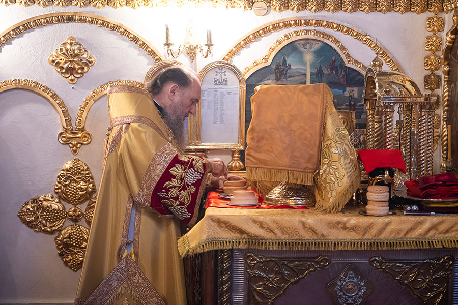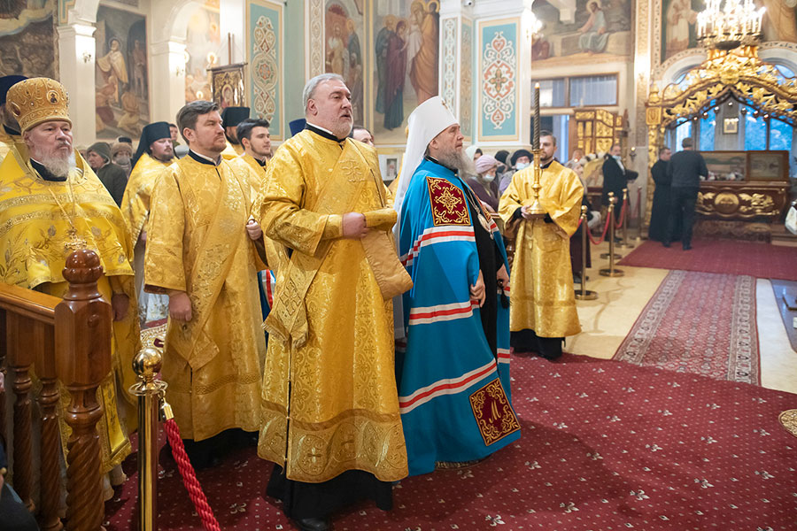 За богослужением совершались заупокойные молитвы о приснопамятных казахстанских иерархах, в числе которых подвижник благочестия митрополит Иосиф (Чернов, †1975 г.), строителях собора и возобновителях богослужебной жизни, почивших священнослужителях и прихожанах храма.
