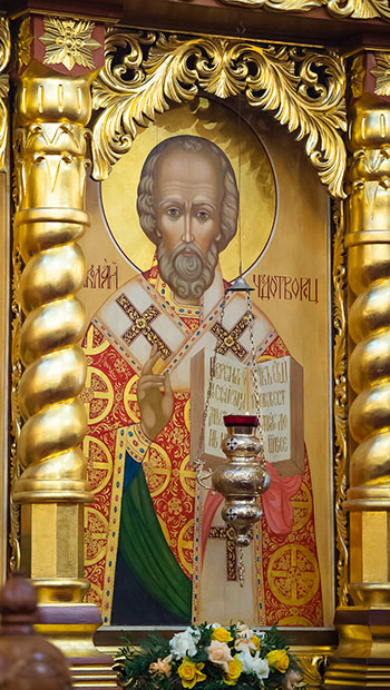 Живя на земле, святитель отдал всего себя людям, Церкви Христовой, он верой и правдой совершал свое служение – диаконское, священническое, епископское – неизменно являя добрый пример настоящего православного пастырства. Он все, что имел – свои человеческие способности, свои таланты, силы и время, свою жизнь – отдал Христу, Которого возлюбил всем сердцем. Любовь к Богу стала для него источником огромной любви к ближнему. Мы знаем о многих чудесах, о которых повествует его житие. Святитель протягивал руку помощи всем находящимся в скорбях и напастях, усердно молился за обуреваемых невзгодами, спасал невинных от несправедливого суда и казни, и множество других дел совершил к пользе ближнего и к прославлению имени Христова. Святителя Николая мы называем в тропаре, в кратком песнопении, ему посвященном, «правилом веры и образом кротости». Вера святого Николая называется «правилом», то есть она верная и совершенная как в догматическом отношении, так и живая, искренняя и настоящая в своем проявлении через конкретные дела и поступки. Его житие, его вера, кротость и благочестие, должны стать для нас не только предметом восхищения и удивления, а самым непосредственным руководством в повседневной жизни.
