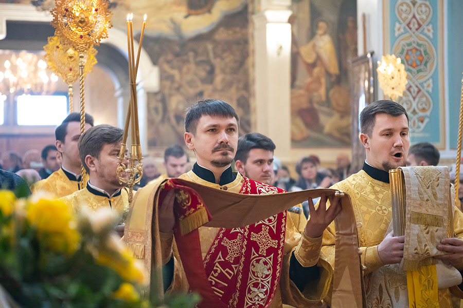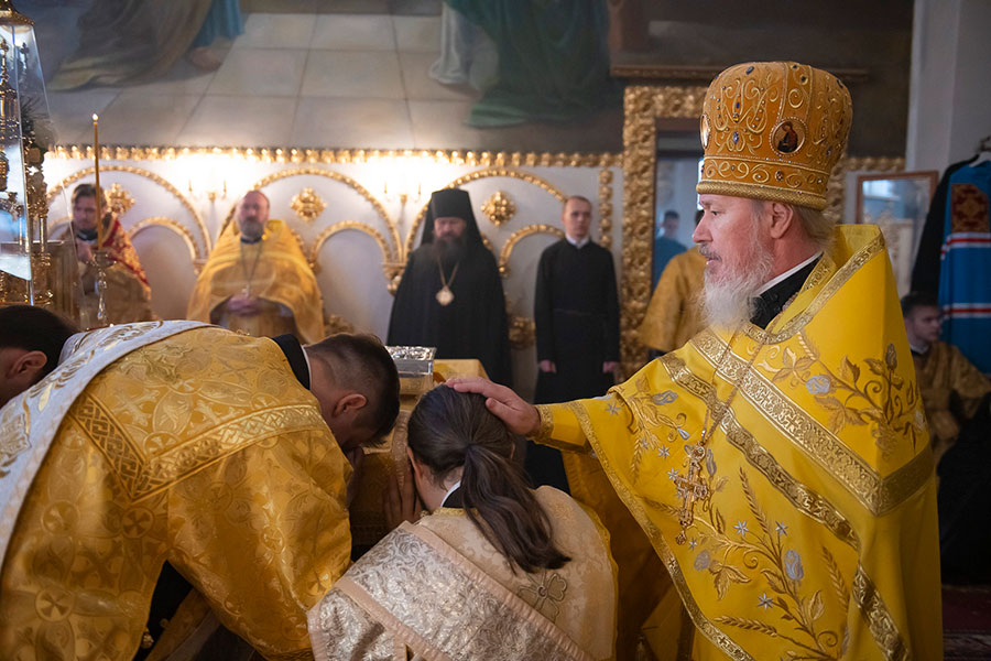 Песнопения исполнял хор Никольского собора под управлением О. Берекешевой.