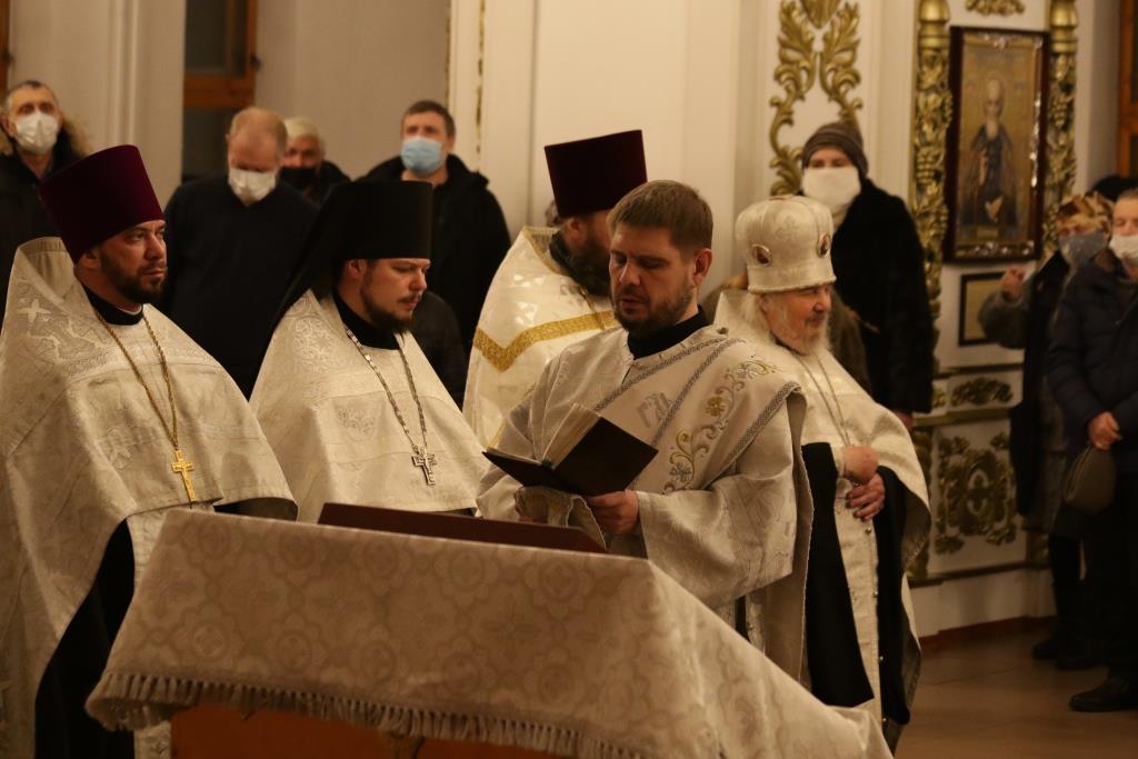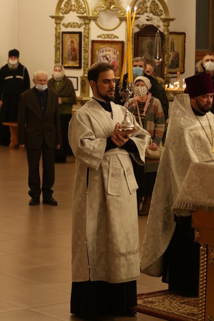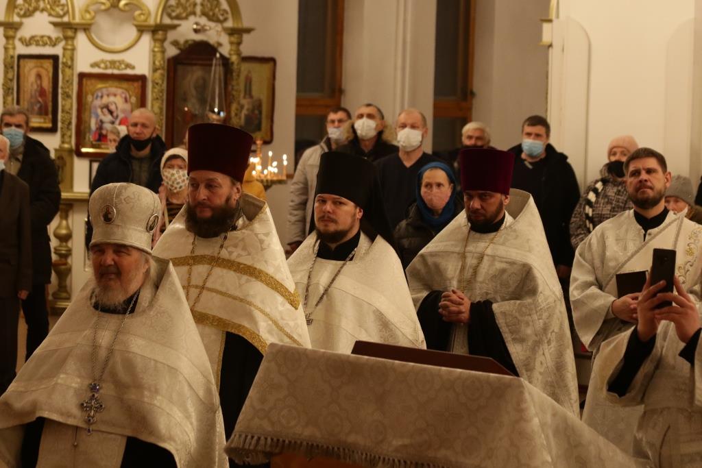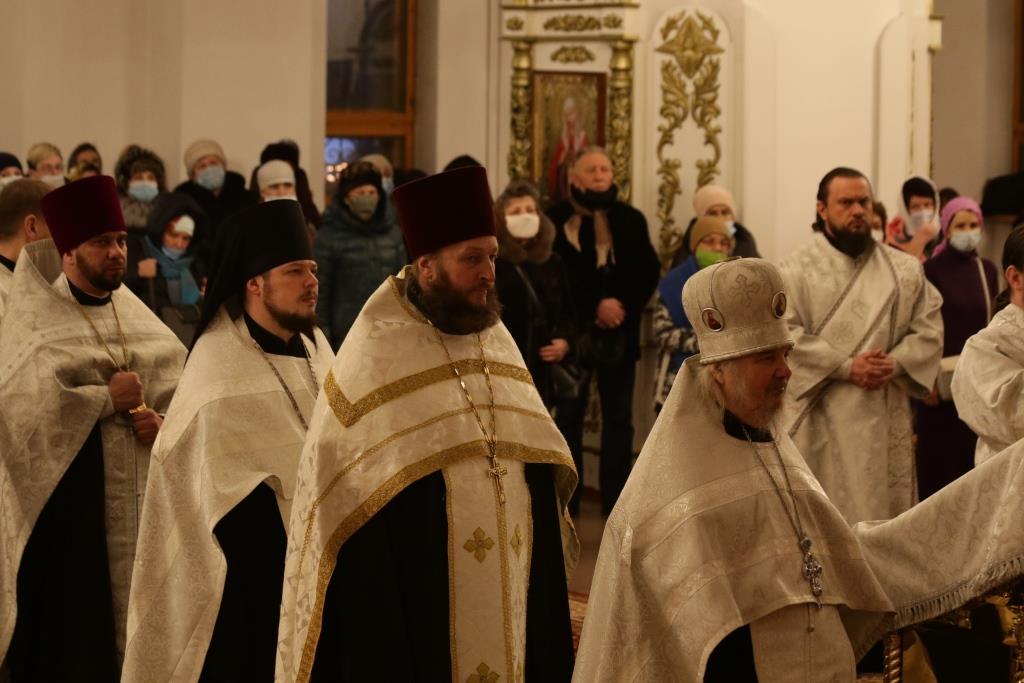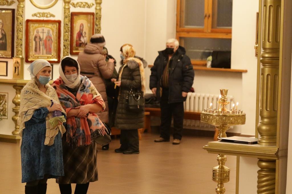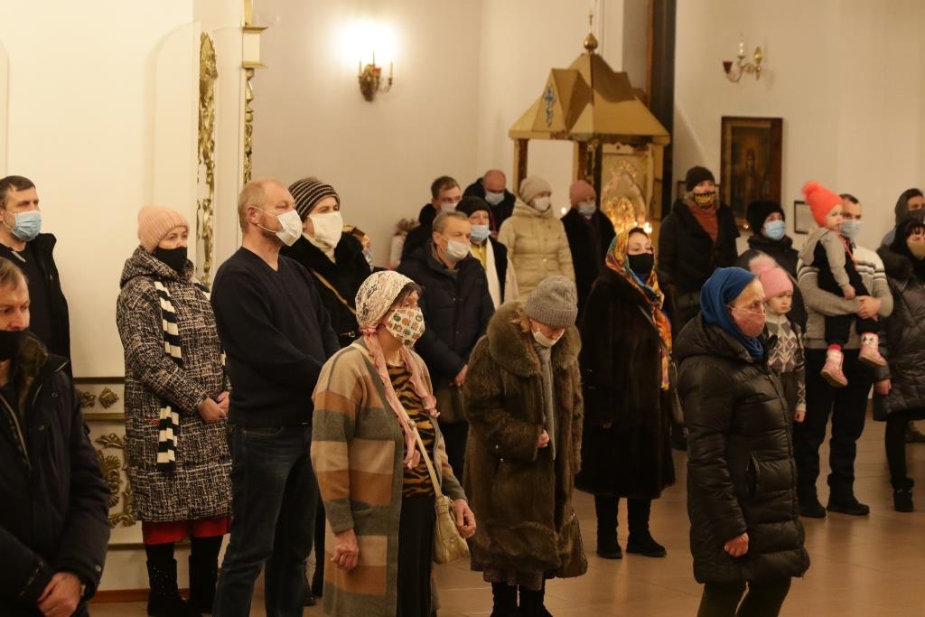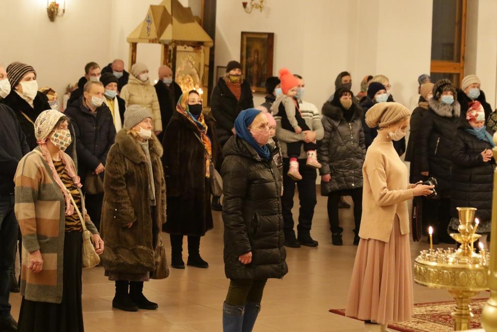 За богослужением пел хор род управлением регента Н.Романцовой. В канун Нового года в храме молились прихожане городских храмов, сотрудники епархиального управления и насельники Свято-Троицкого мужского монастыря.