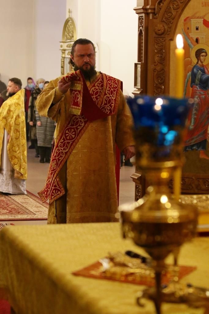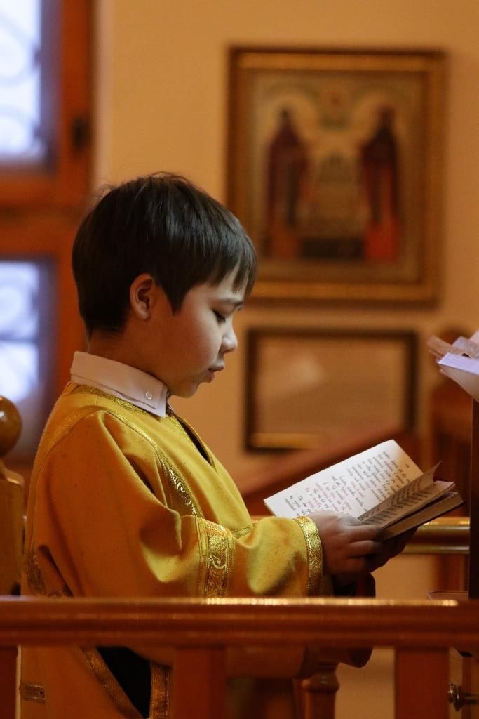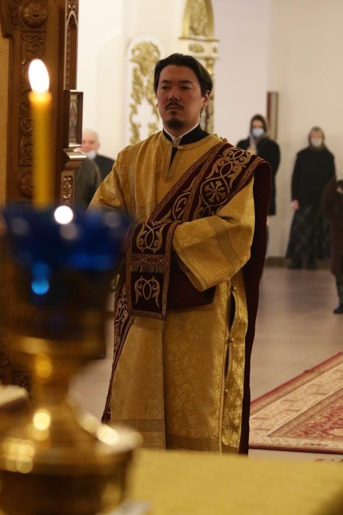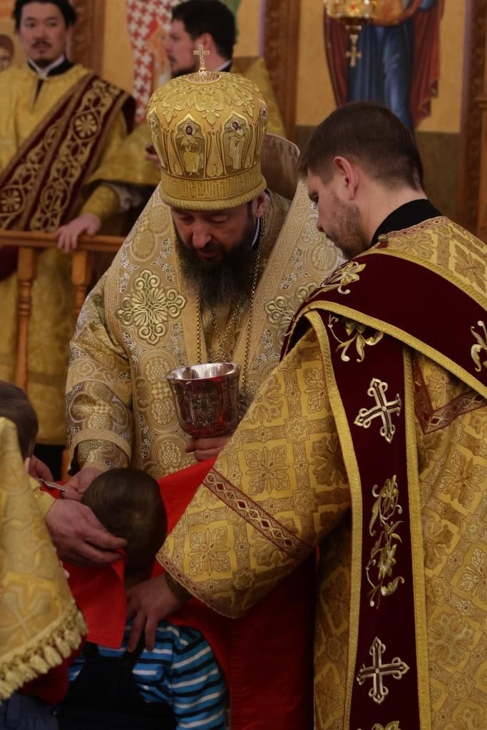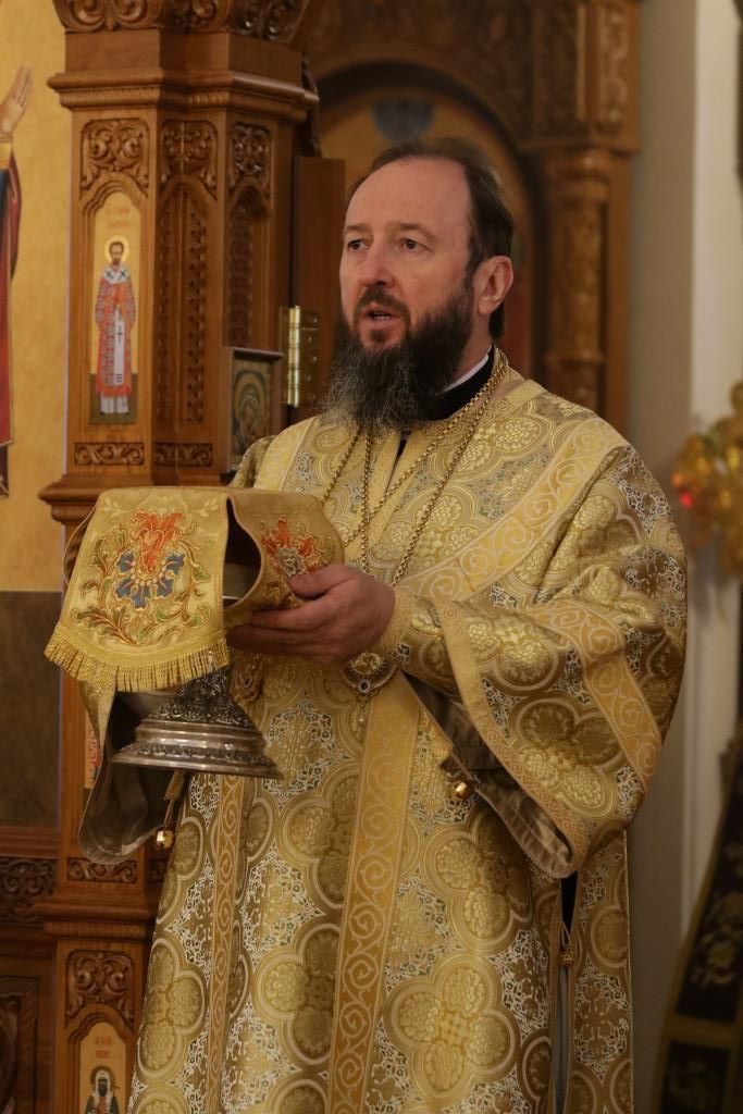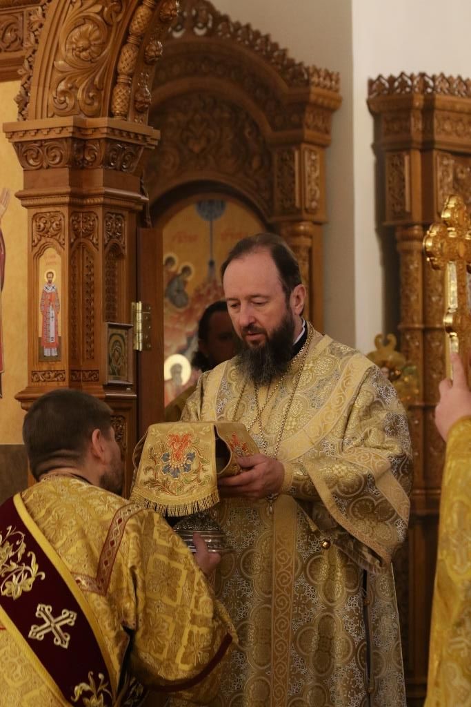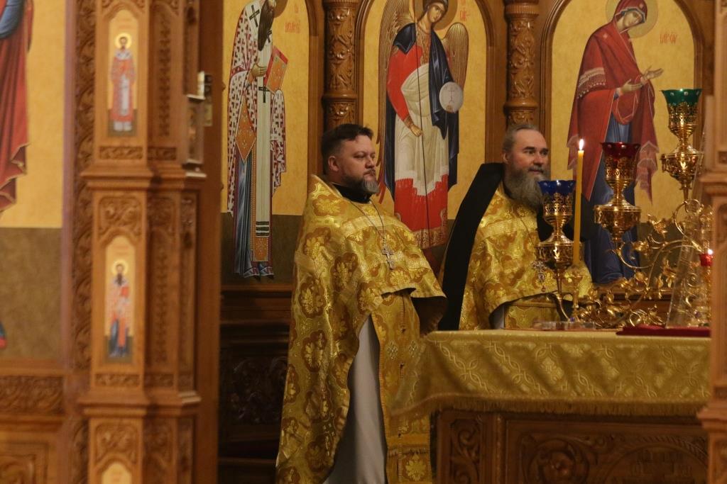 Архипастырю сослужили: духовник епархии архимандрит Спиридон (Теплухин), ключарь собора иеромонах Никодим (Авдеев), клирик собора иеромонах Силуан (Магилев), иерей Владимир Лаврешин, секретарь епархии диакон Илия Кван, протодиакон Георгий Засыпкин, протодиакон Андрей Дудник.