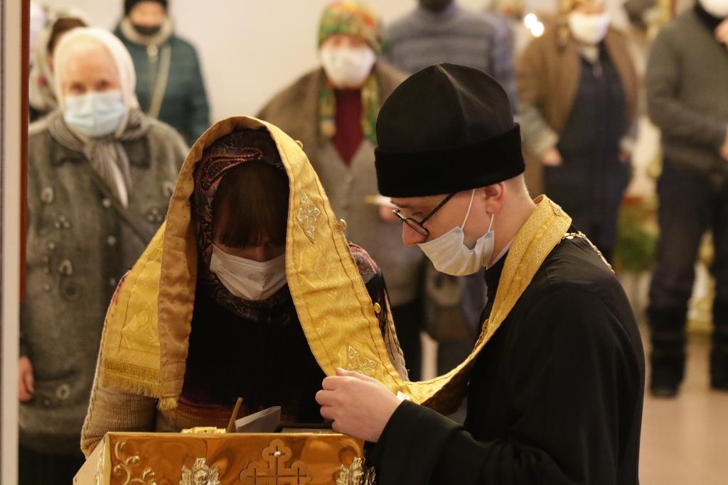 Песнопения предпразднства Рождества Христова и Литургии исполнял хор под управлением регента Н. Романцовой. За богослужением молились насельники Свято-Троицкого мужского монастыря, прихожане кафедрального собора и сотрудники епархиального управления. Перед причастием мирян проповедовал иеромонах Силуан (Магилев).