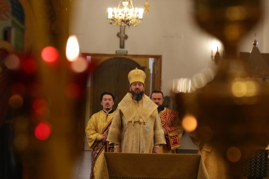 Управляющий Усть-Каменогорской и Семипалатинской епархией Преосвященнейший епископ Амфилохий возглавил служение Божественной Литургии в кафедральном соборе во имя святого апостола Андрея Первозванного города Усть-Каменогорска.