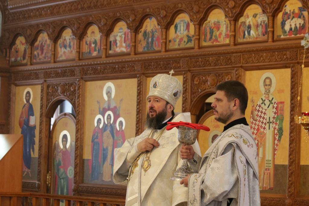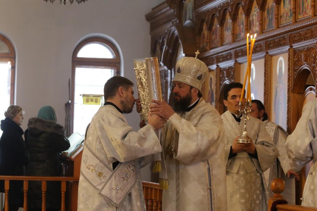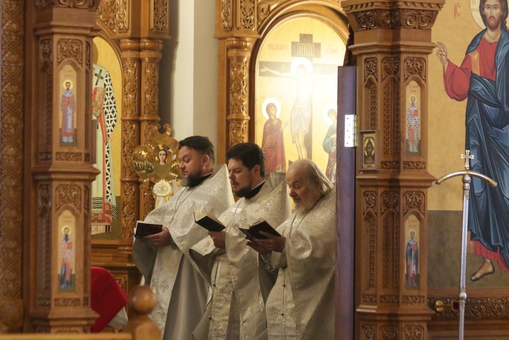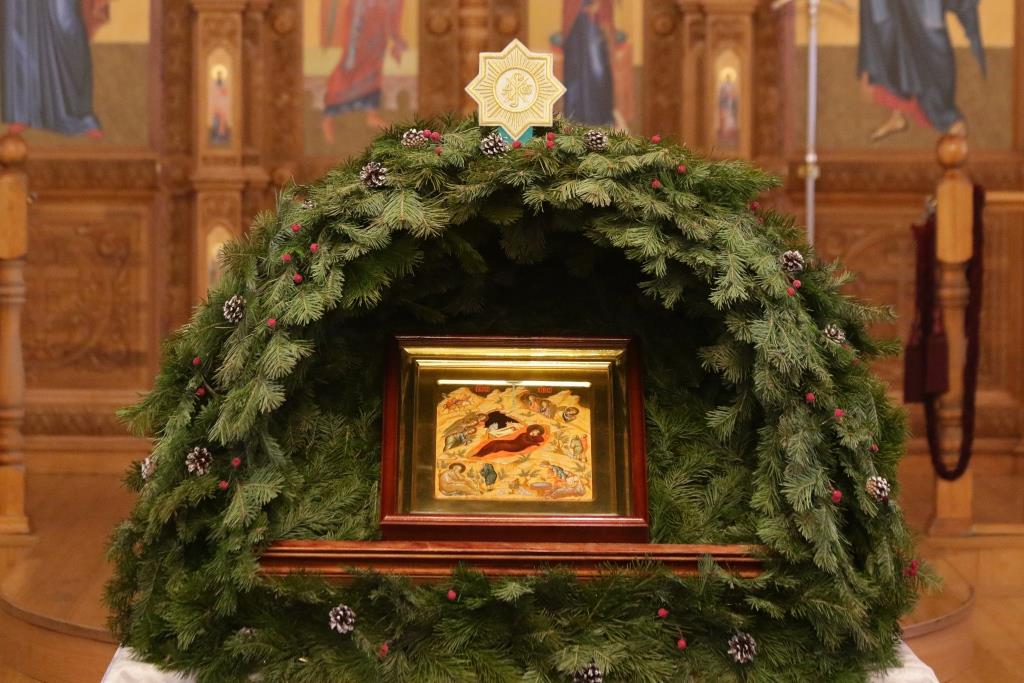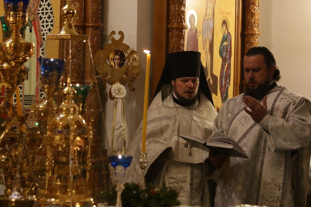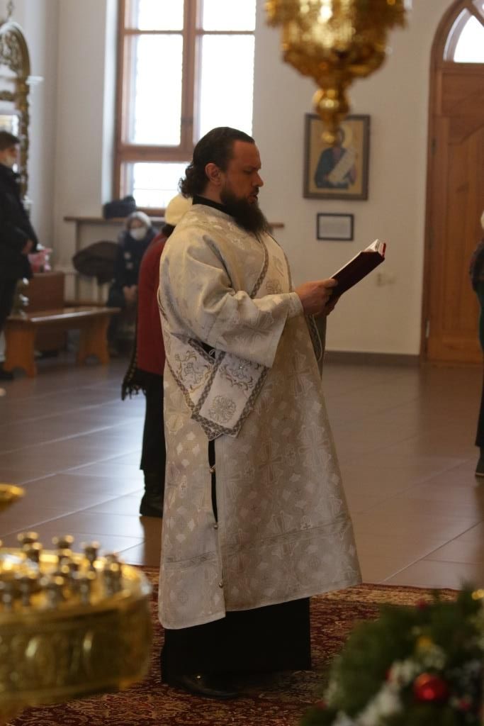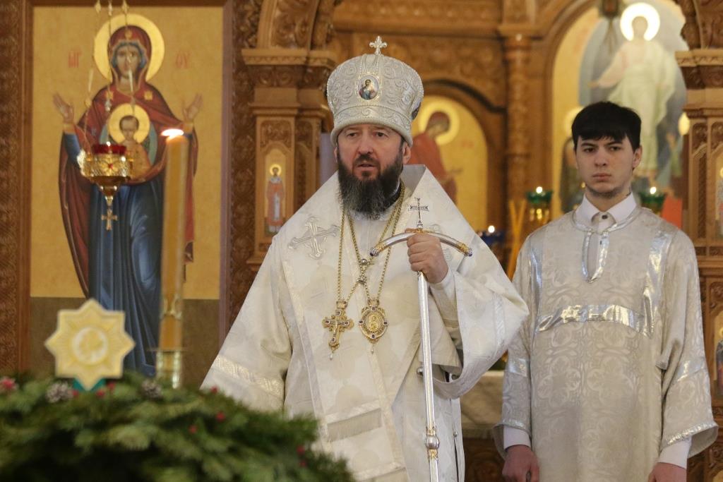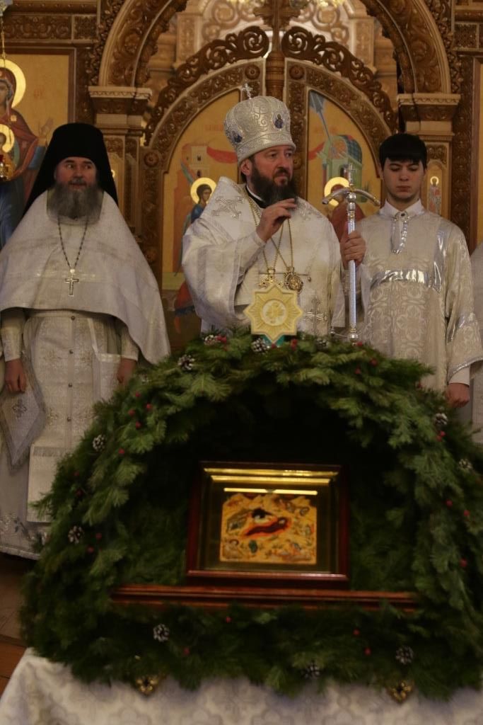 Перед причастием проповедовал иеромонах Силуан (Магилев). По окончании Божественной Литургии Архипастырь и духовенство воспели перед праздничной иконой тропарь и кондак грядущего праздника – Рождества Христова.