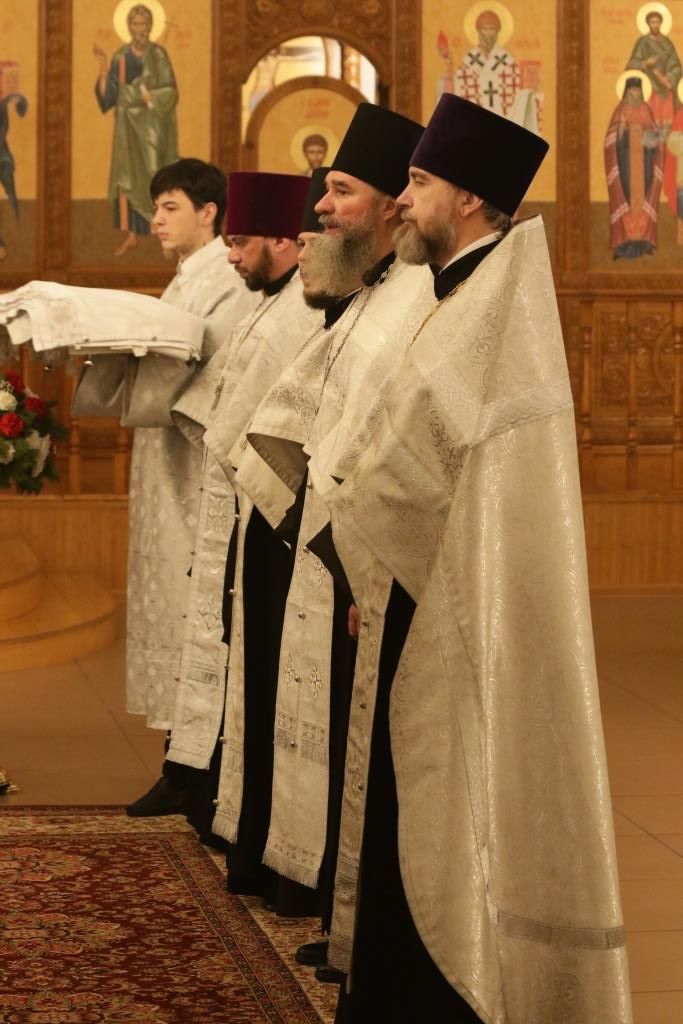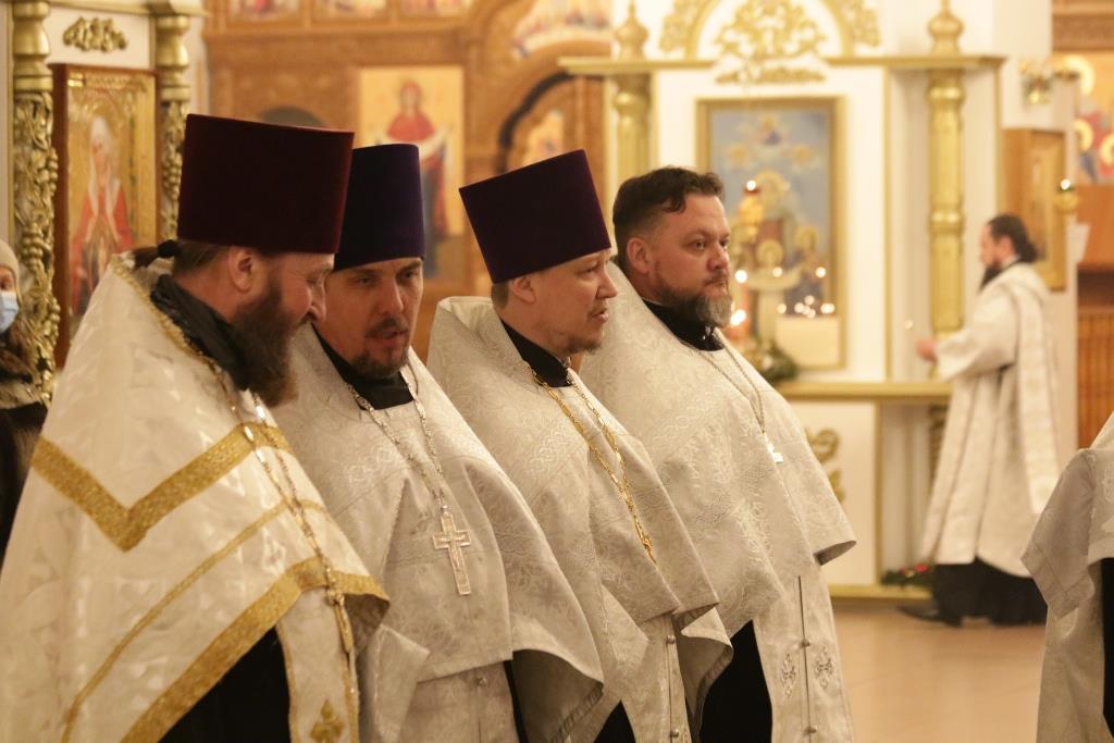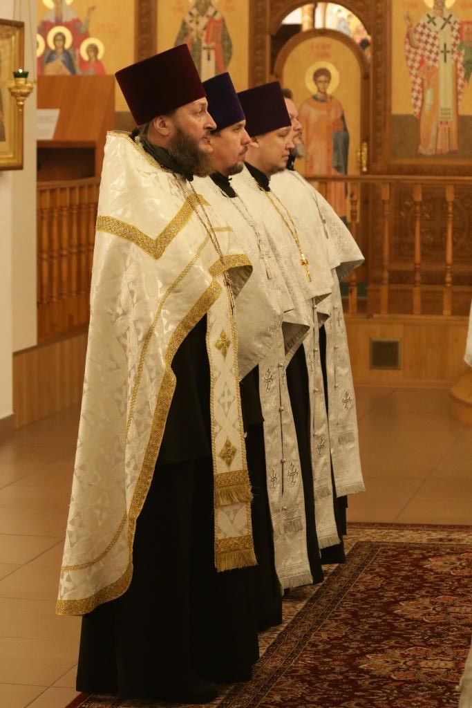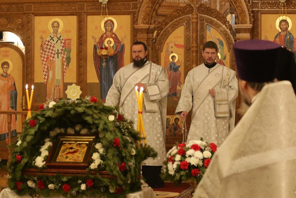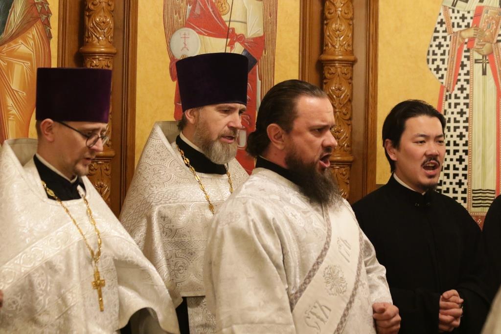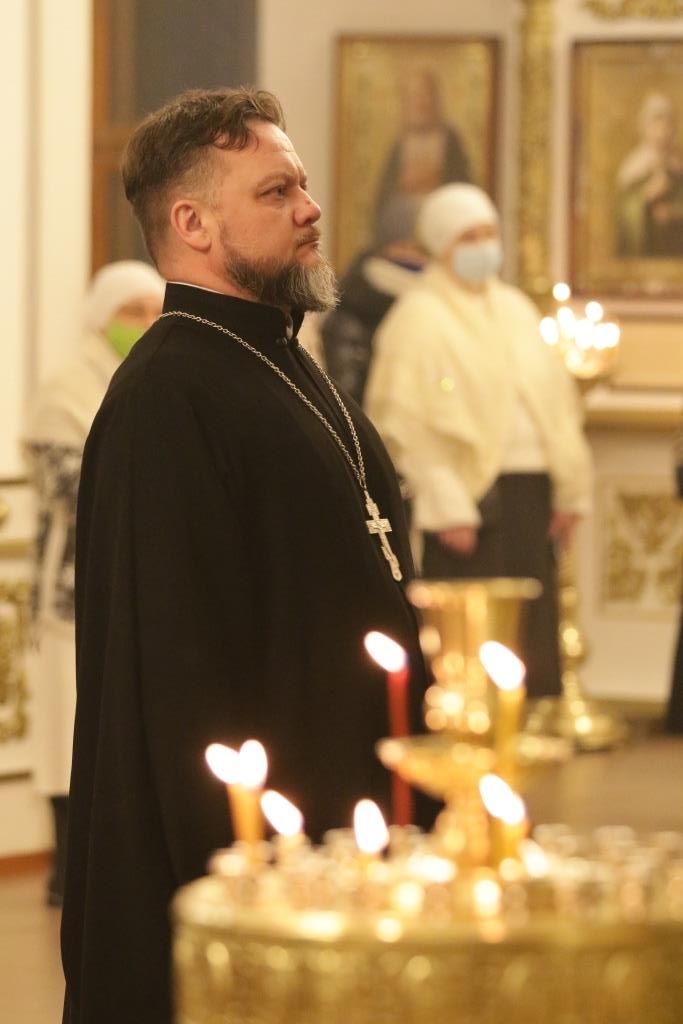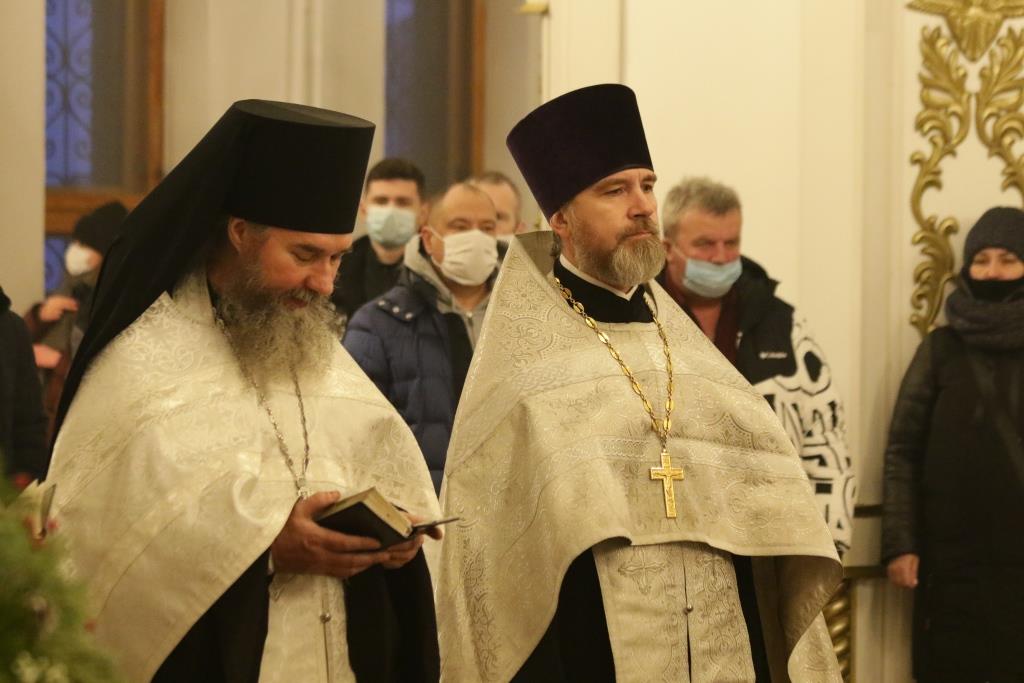 За вечерним богослужением молились насельники Свято-Троицкого мужского монастыря, прихожане кафедрального собора. Праздничные песнопения исполнял хор Андреевского собора под управлением Н. Романцовой.