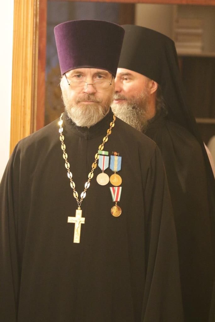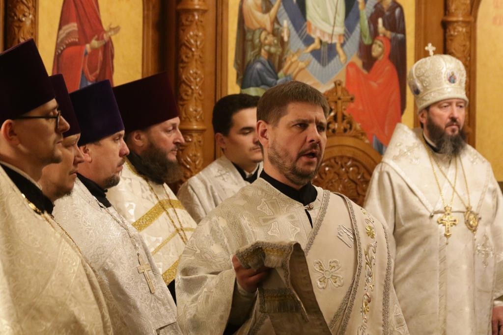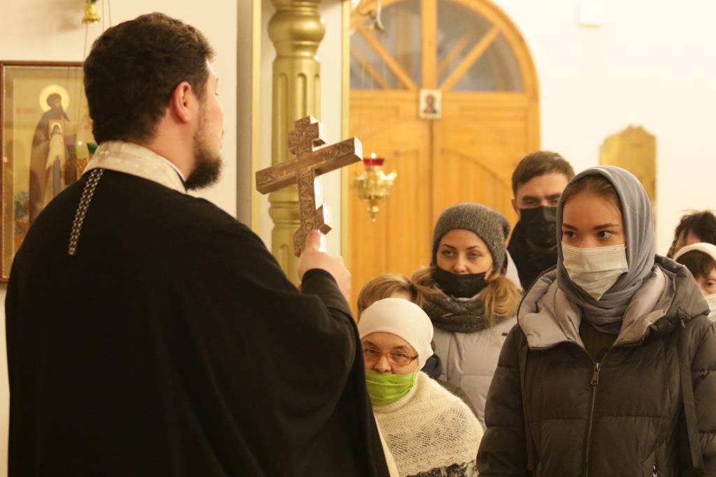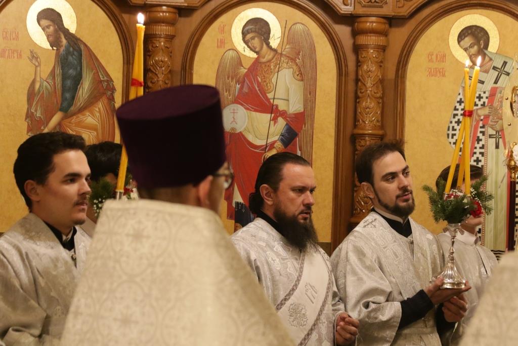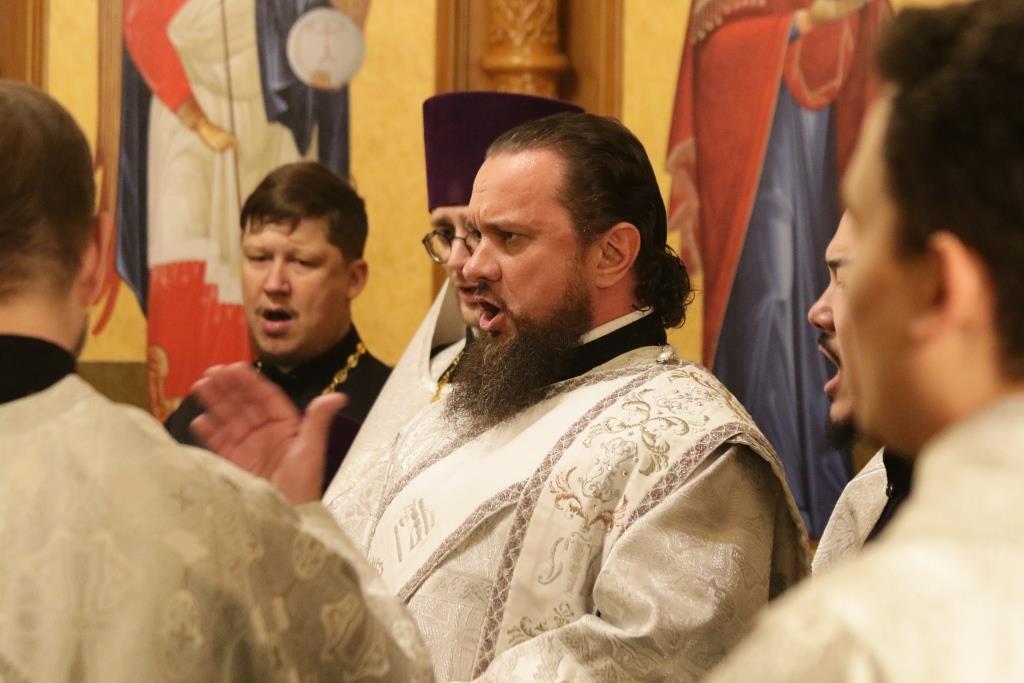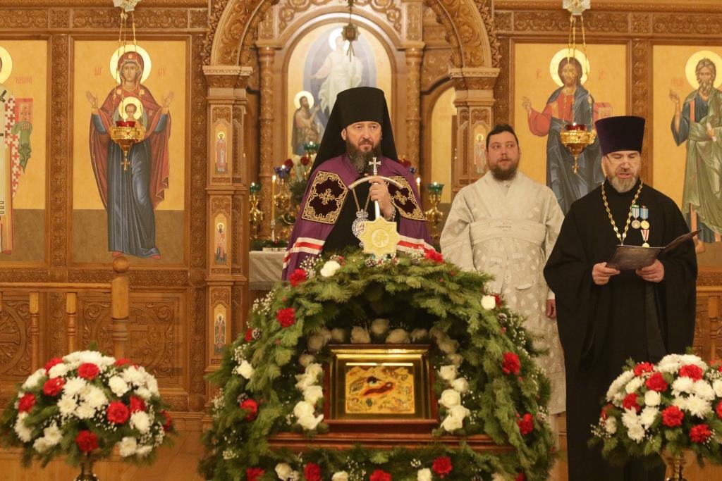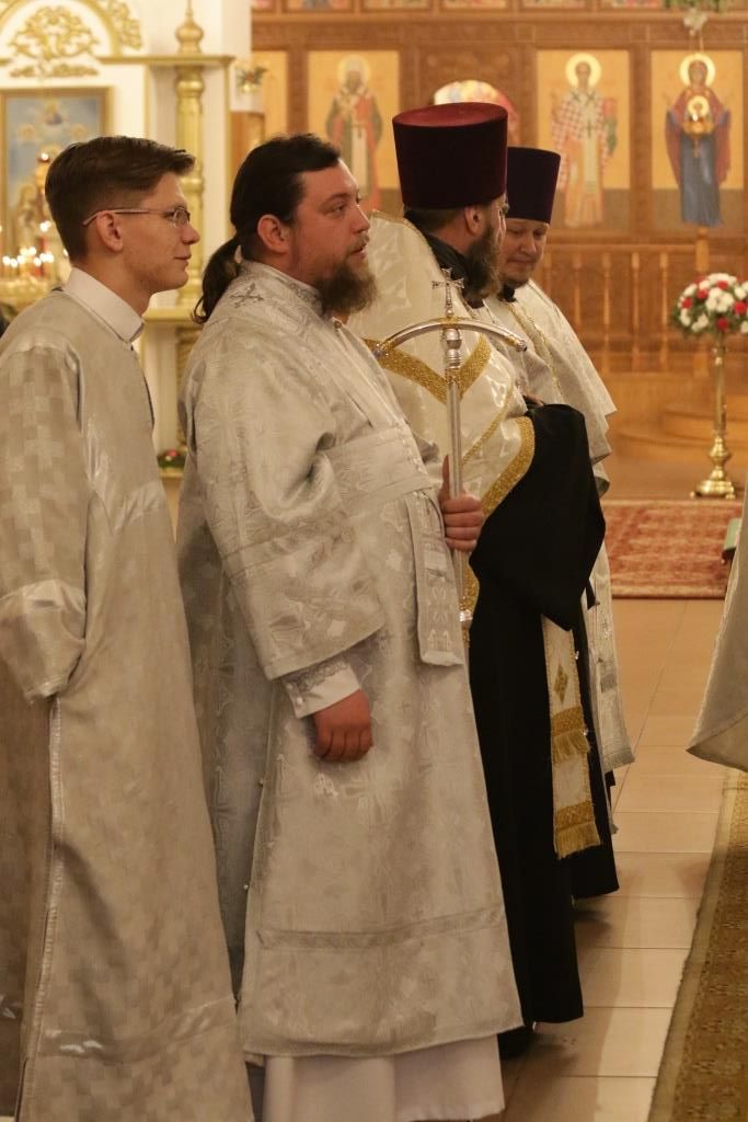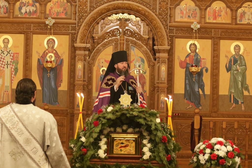 За вечерним богослужением молились насельники Свято-Троицкого мужского монастыря, прихожане кафедрального собора. Праздничные песнопения исполнял хор Андреевского собора под управлением Н. Романцовой.