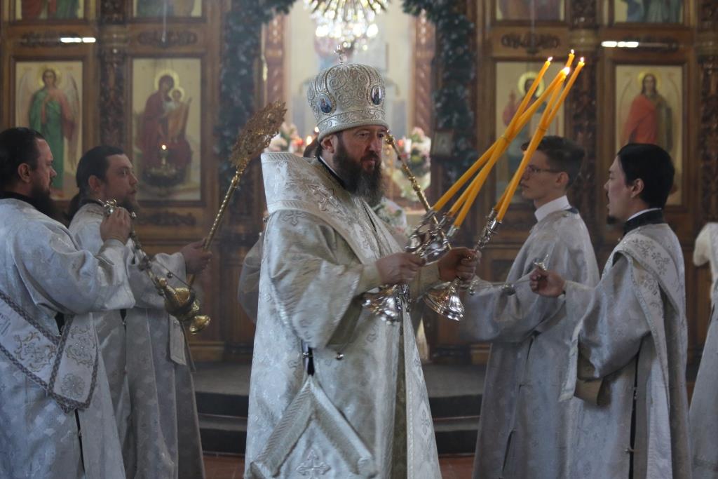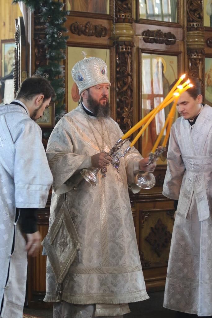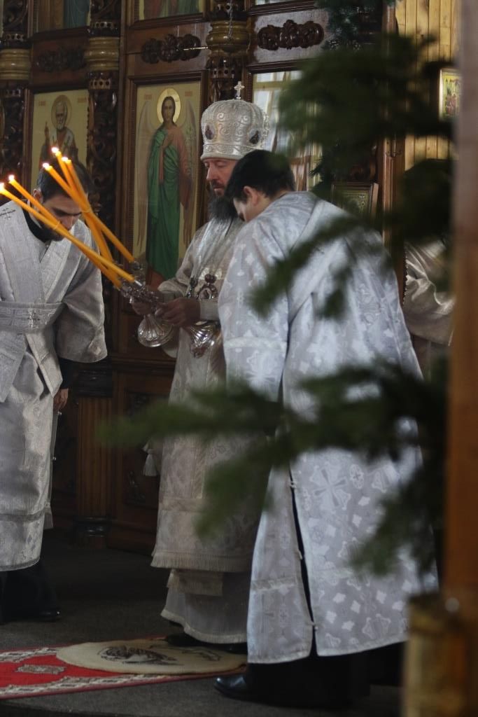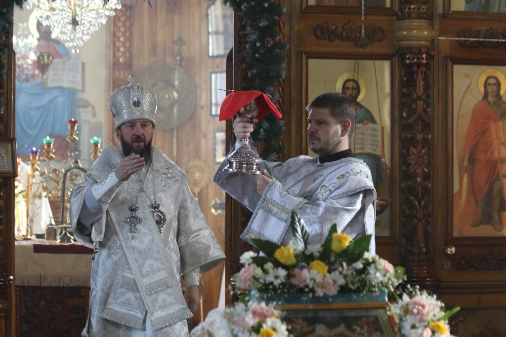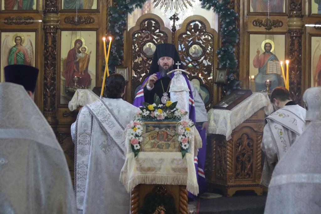 После окончания Литургии было совершено славление Господу Иисусу Христу, после которого епископ Амфилохий поздравил духовенство и молящихся с праздником Рождества Христова и обратился к прихожанам со словами наставления.