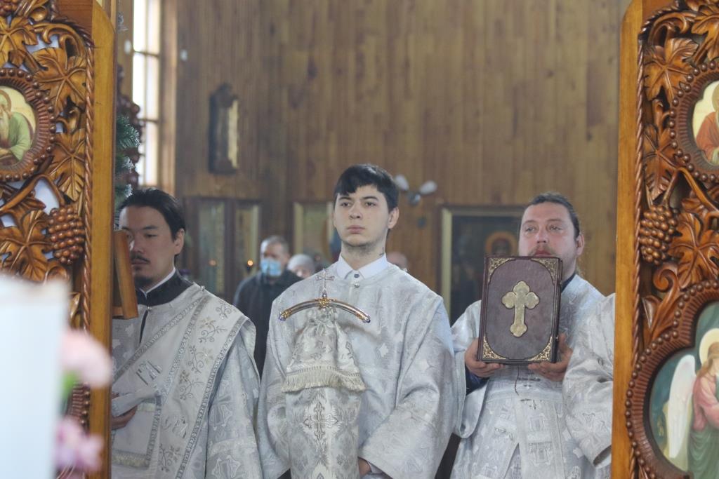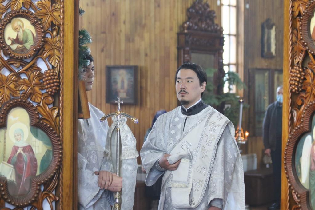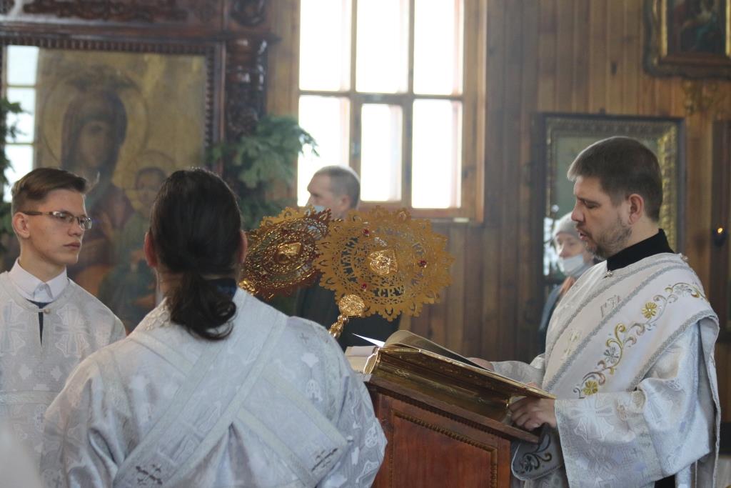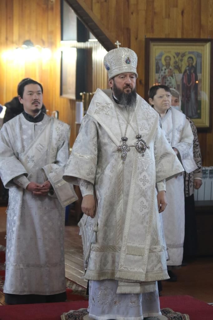 Песнопения праздника Собора Пресвятой Богородицы и Божественной Литургии исполнял хор под управлением регента А. Король. За архипастырским богослужением молились прихожане Покровского храма и паломники с приходов Усть-Каменогорска.
