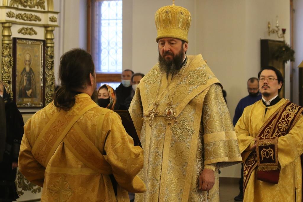 В завершение проповеди Преосвященнейший Архипастырь призвал на собравшихся Божие благословение и пожелал им крепкого здоровья душевного и телесного.