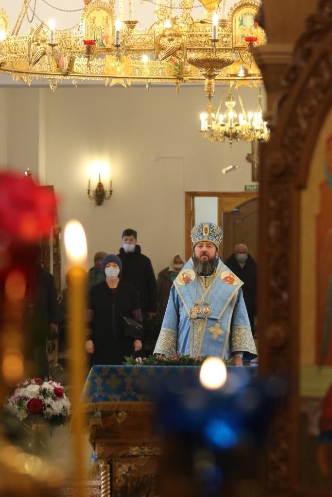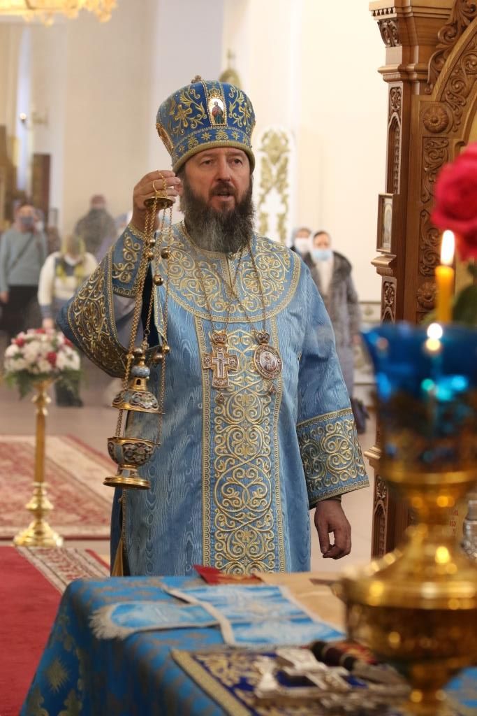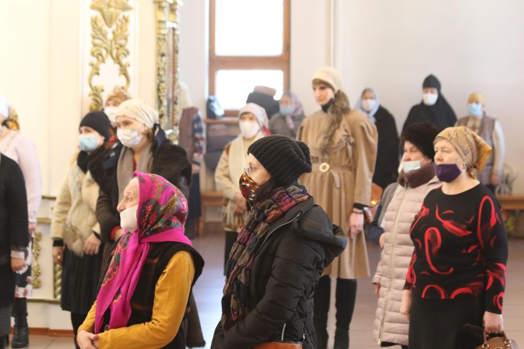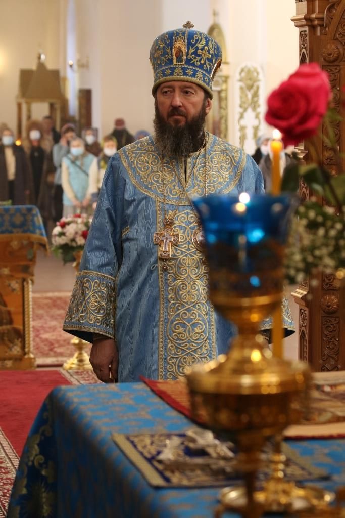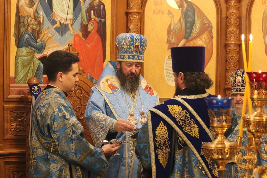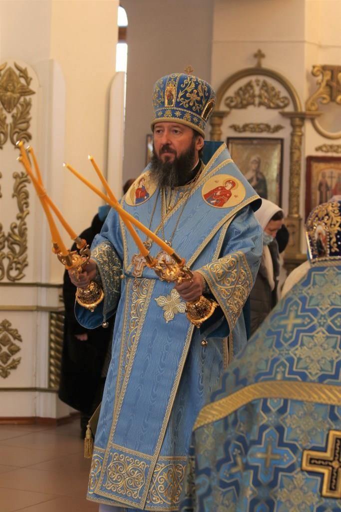 После заамвонной молитвы было совершено славление Господу Иисусу Христу и Его Пречистой Матери. В завершение праздничного богослужения Преосвященнейший Владыка поздравил богомольцев с двунадесятым торжеством Сретения Господня и обратился к народу Божию с проповедью.