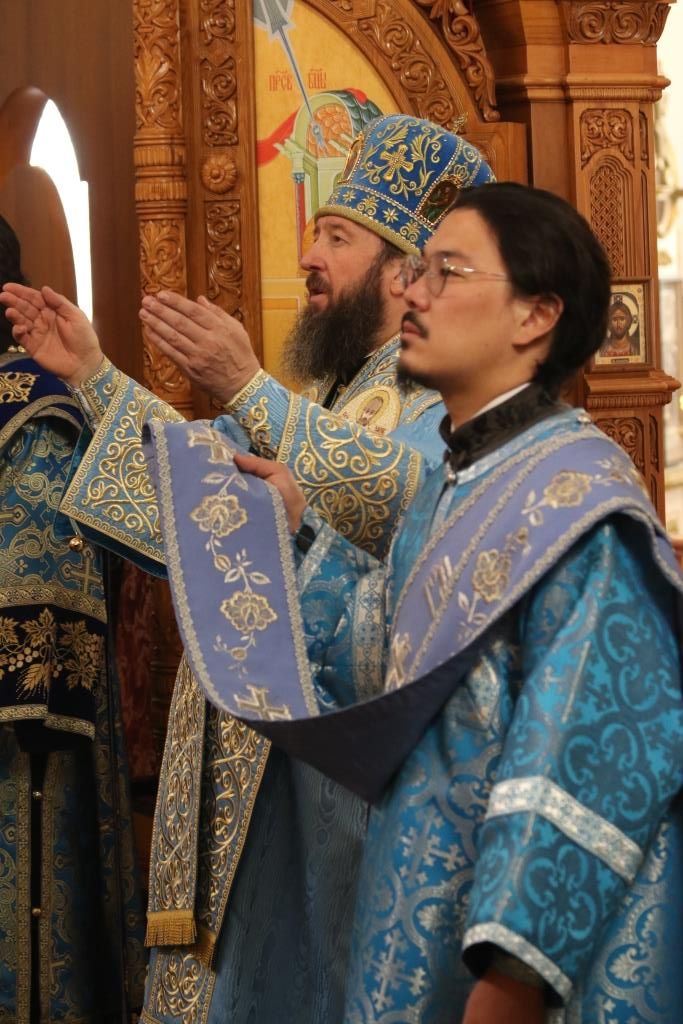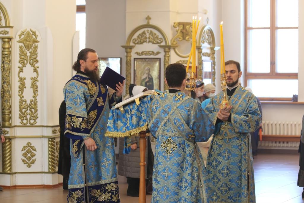 Архипастырю сослужили: духовник епархии архимандрит Спиридон (Теплухин), клирики собора иерей Алексий Клепиков и иеромонах Силуан (Магилев), секретарь епархии диакон Илия Кван, протодиакон Андрей Дудник. Песнопения праздника Сретения и Божественной Литургии исполнял соборный хор под управлением регента Н. Романцовой.