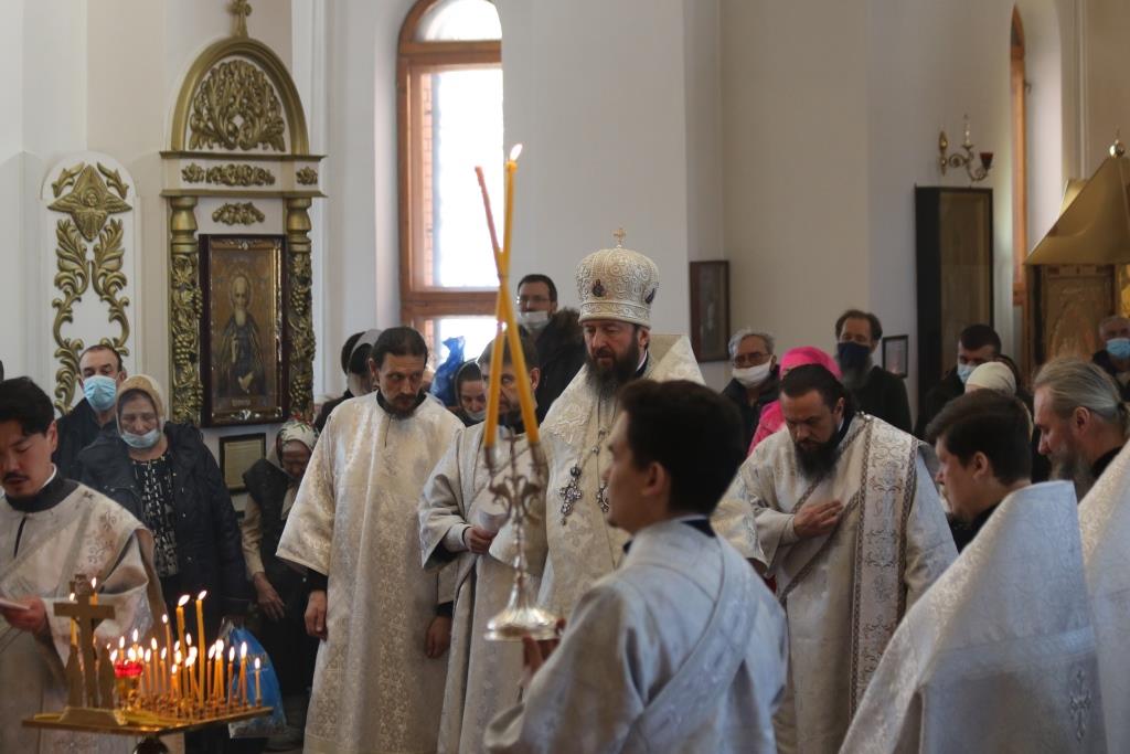 Преосвященнейший епископ Усть-Каменогорский и Семипалатинский Амфилохий совершил Божественную Литургию святителя Иоанна Златоуста Свято-Андреевском кафедральном соборе столицы Рудного Алтая. Архипастырю сослужили: духовник епархии архимандрит Спиридон (Теплухин), ключарь кафедрального собора иеромонах Никодим (Авдеев), клирики собора иеромонах Силуан (Магилев) и иерей Роман Подрезов, секретарь епархии диакон Илия Кван, протодиаконы Георгий Засыпкин и Андрей Дудник.