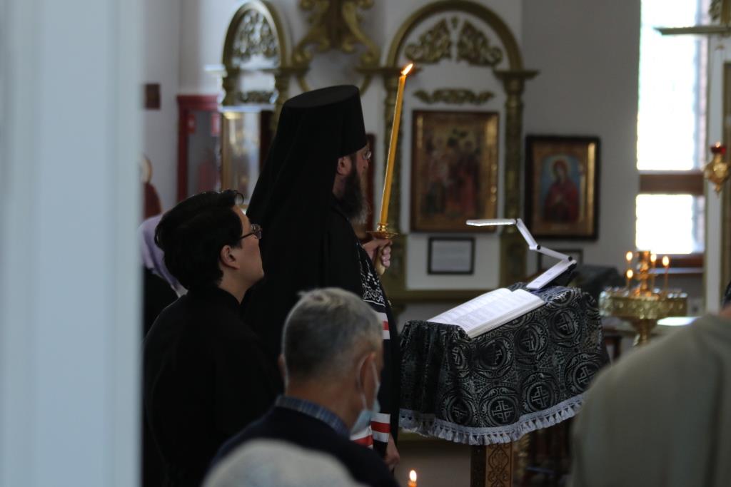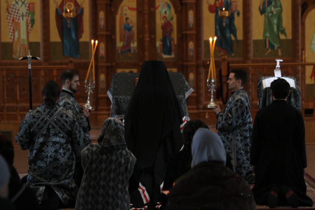 За вечерним богослужением молились: духовник епархии архимандрит Спиридон (Теплухин), ключарь кафедрального собора иеромонах Никодим (Авдеев), клирики собора иерей Алексий Клепиков, иеромонах Силуан (Магилев), иерей Роман Подрезов, иерей Константин Дьяков, секретарь епархии диакон Илия Кван, протодиакон Андрей Дудник, сотрудники епархиального управления и прихожане. Песнопения повечерия и Великого покаянного канона исполнял хор Андреевского кафедрального собора под управлением регента В. Федоровой.