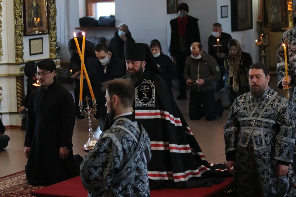 Во вторник первой седмицы Великого поста епископ Усть-Каменогорский и Семипалатинский Амфилохий совершил Великое повечерие с чтением второй части Великого покаянного канона преподобного Андрея Критского.