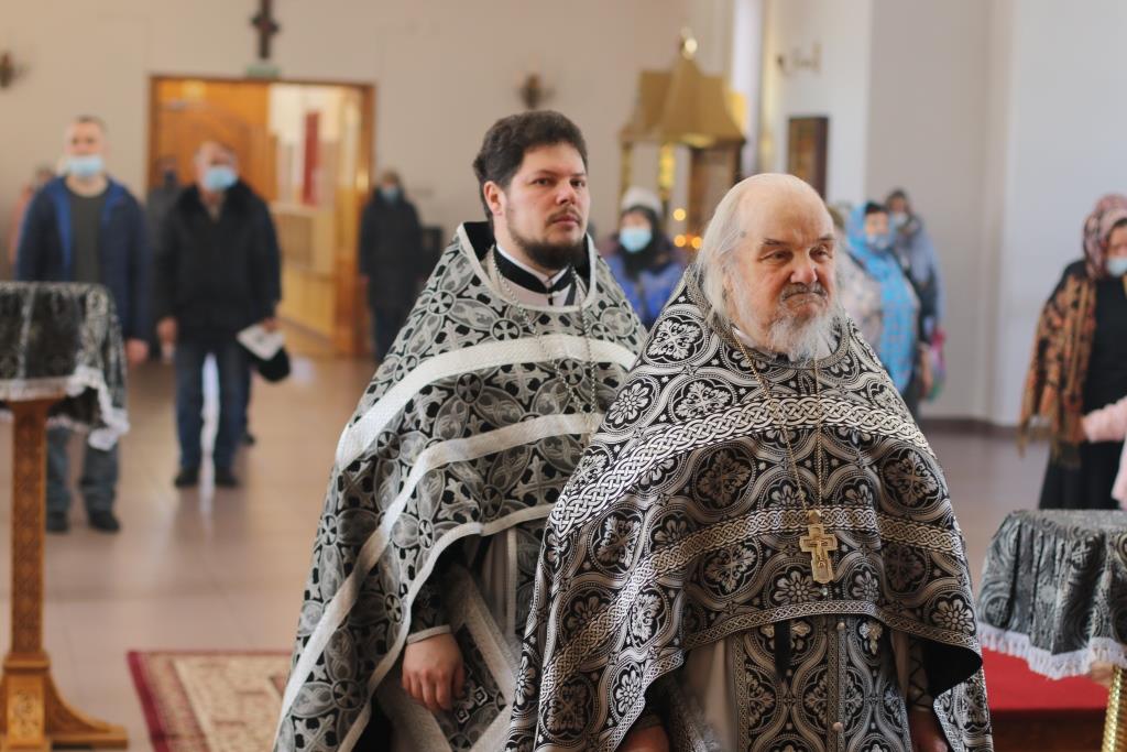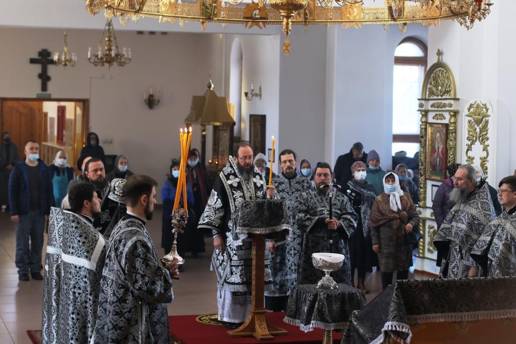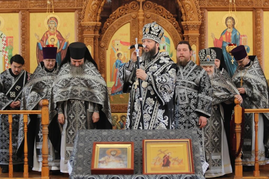 В пятый день Великого поста Управляющий Усть-Каменогорской и Семипалатинской епархией Преосвященнейший епископ Амфилохий совершил великую вечерню с Литургией Преждеосвященных Даров святителя Григория Двоеслова. Владыке Амфилохию сослужили: духовник епархии архимандрит Спиридон (Теплухин), ключарь собора иеромонах Никодим (Авдеев), клирики собора иеромонах Силуан (Магилев), иерей Роман Подрезов и иерей Константин Дьяков, секретарь епархии диакон Илия Кван, протодиакон Андрей Дудник. Хор под управлением регента В. Федоровой исполнял песнопения великой вечерни и Божественной Литургии. В храме молились прихожане кафедрального собора и сотрудники епархиального управления.