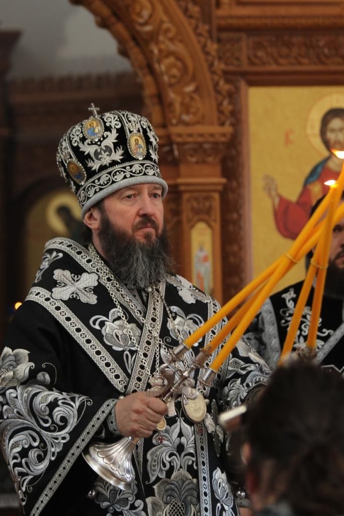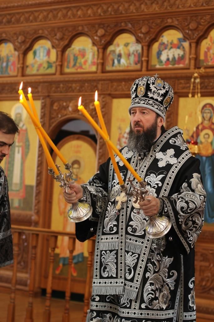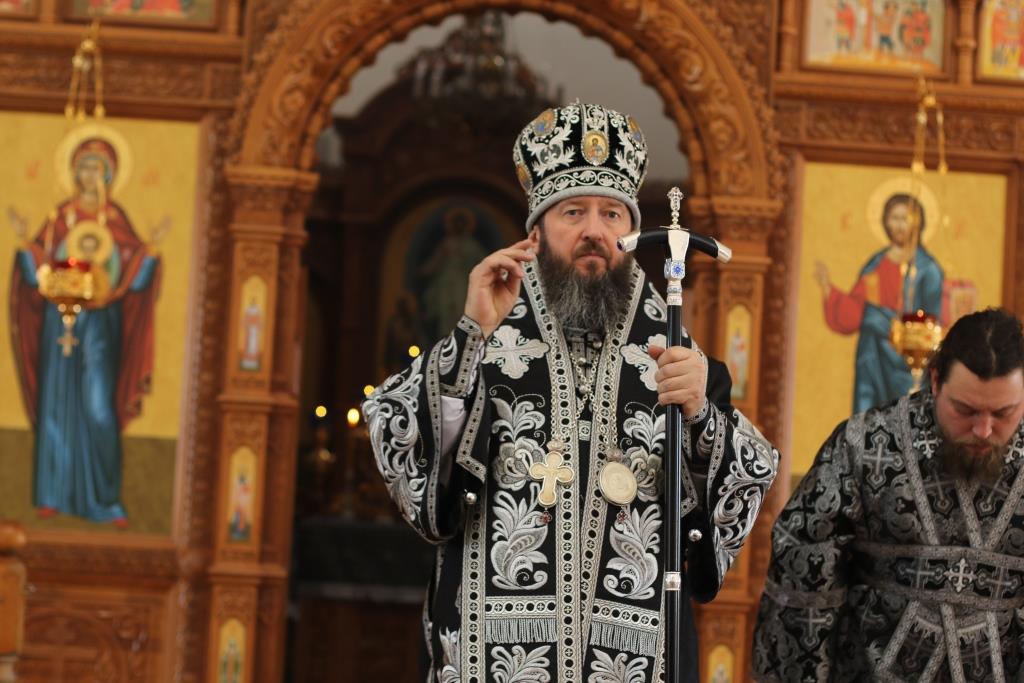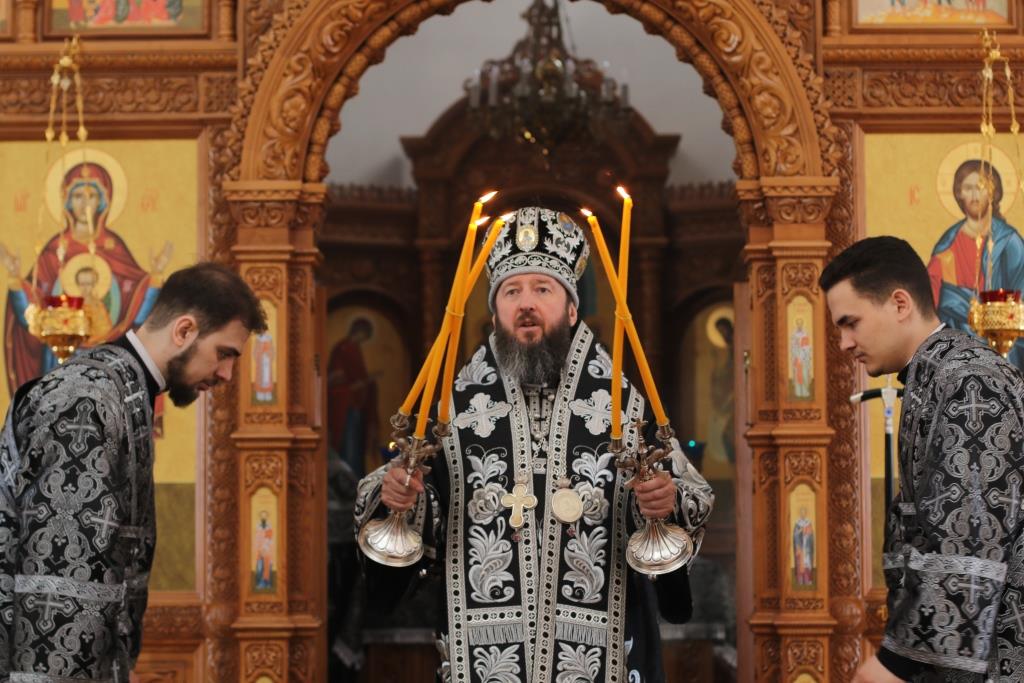 После окончания Литургии был совершен канон молебный великомученику Феодору Тирону и чин освящения колива. В завершение богослужения Преосвященнейший Владыка призвал Божие благословение на прихожан и обратился к христианам со словами Архипастырской проповеди.