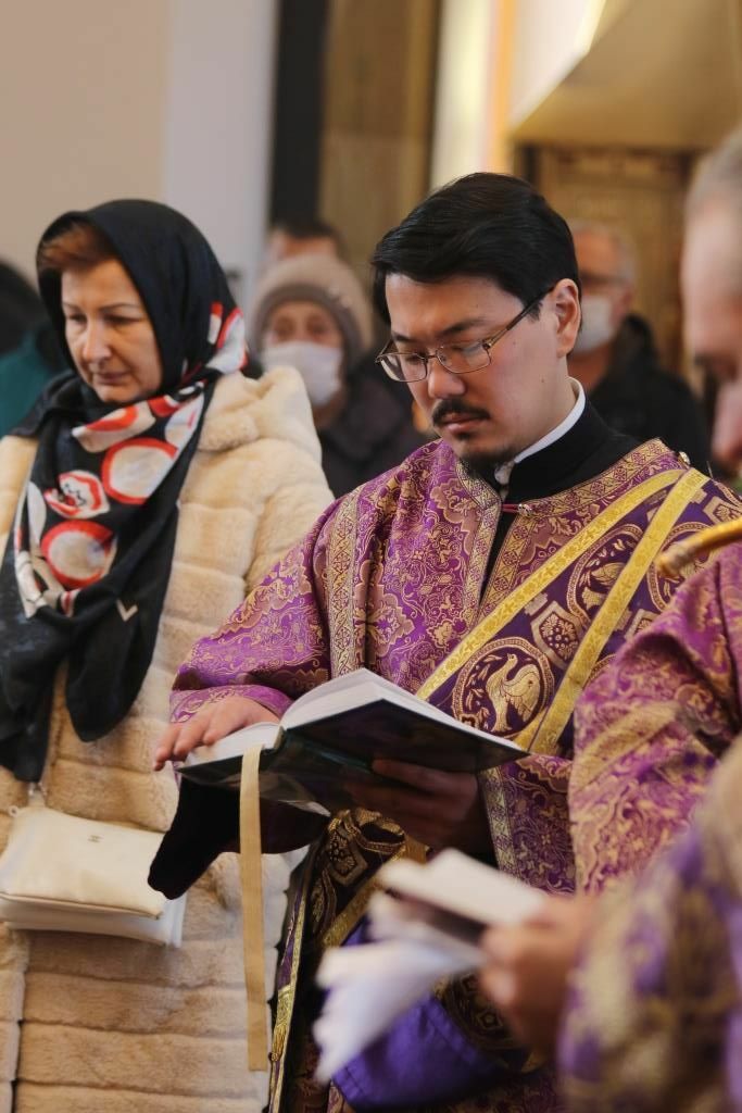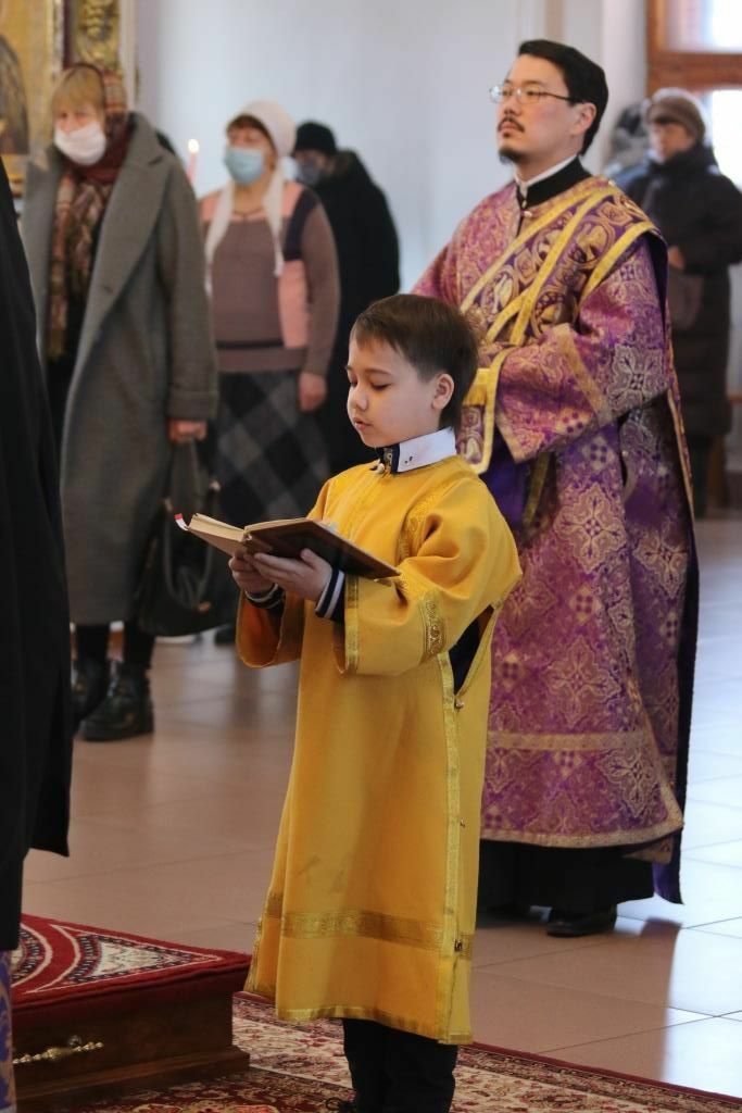 Песнопения Божественной Литургии исполнял хор под управлением регента В. Федоровой. За субботним богослужением молились прихожане главного храма Восточного Казахстана. Проповедь перед причастием мирян произнес иеромонах Силуан (Магилев). На заупокойной ектение сугубо поминались почившие священнослужители Восточного Казахстана, прихожане и благодетели Андреевского собора.
