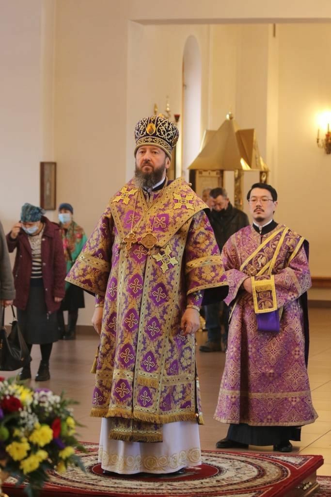 Управляющий Усть-Каменогорской и Семипалатинской епархией Преосвященнейший епископ Амфилохий совершил Божественную Литургию святителя Иоанна Златоуста в Андреевском кафедральном соборе города Усть-Каменогорска. Архипастырю сослужили: духовник епархии архимандрит Спиридон (Теплухин), ключарь кафедрального собора иеромонах Никодим (Авдеев), клирики собора иеромонах Силуан (Магилев), иерей Роман Подрезов, секретарь епархии диакон Илия Кван, протодиакон Андрей Дудник.