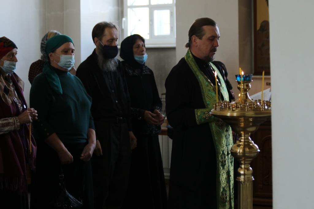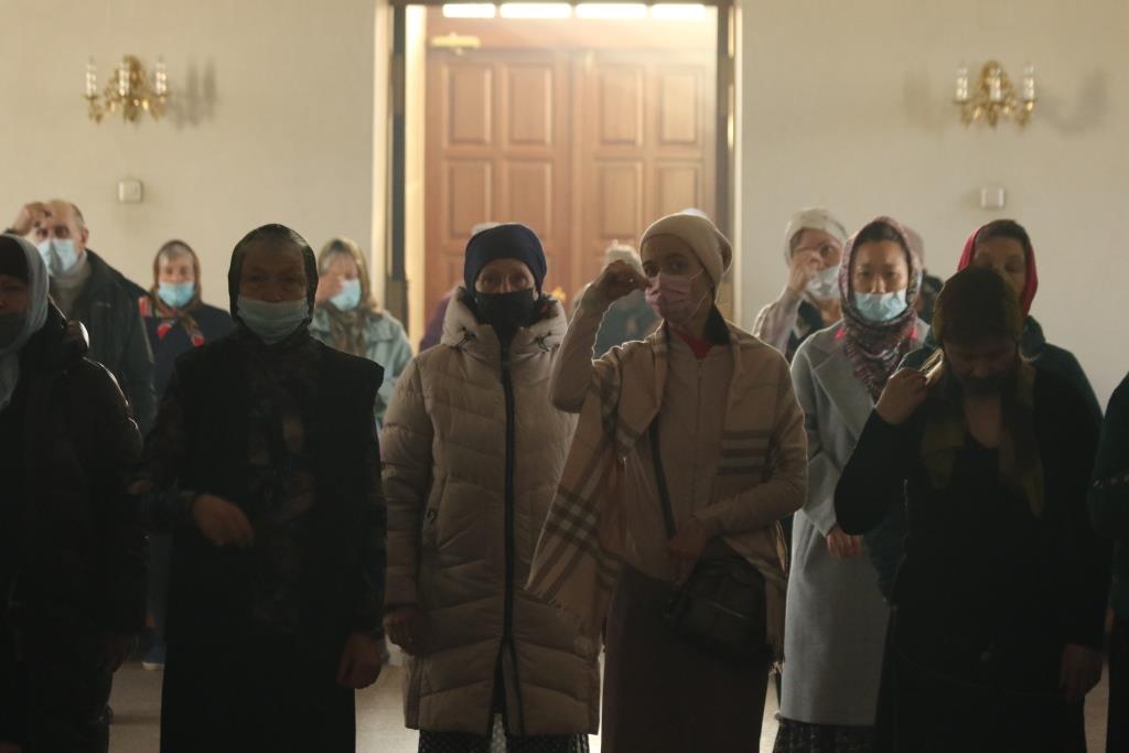 Хор под управлением регента В. Федоровой исполнял песнопения великой вечерни и Божественной Литургии. В храме молились прихожане, сотрудники епархиального управления и насельники Свято-Троицкого мужского монастыря.