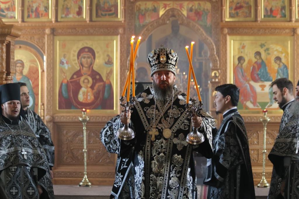 В среду вечером Управляющий Усть-Каменогорской и Семипалатинской епархией Преосвященнейший епископ Амфилохий совершил великую вечерню с соединении с Литургией Преждеосвященных Даров в храме во имя Святой Троицы города Усть-Каменогорска.