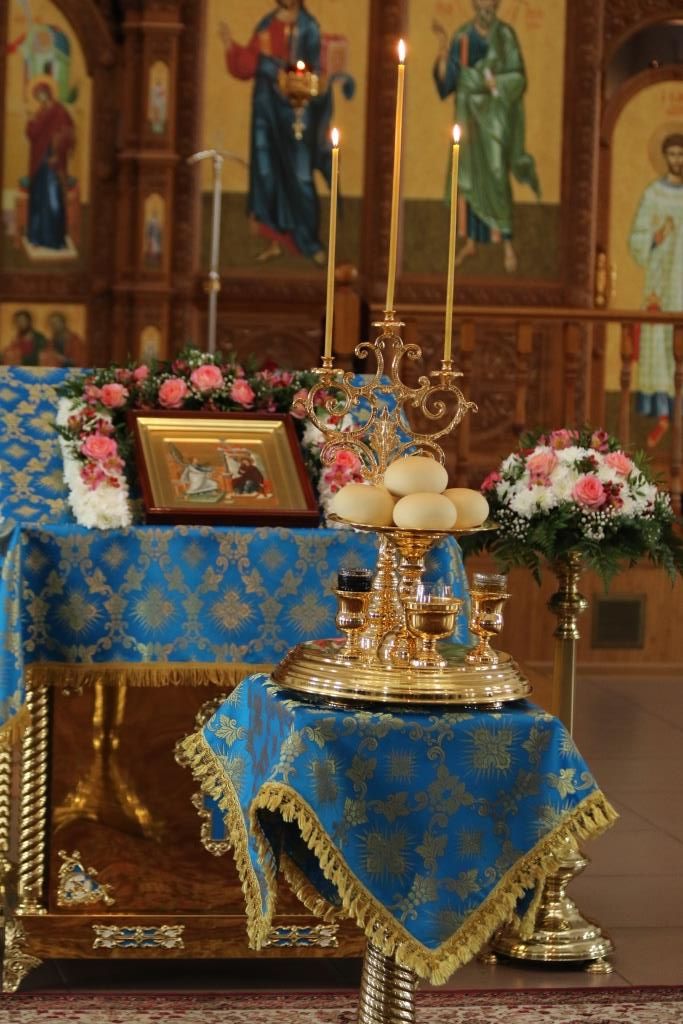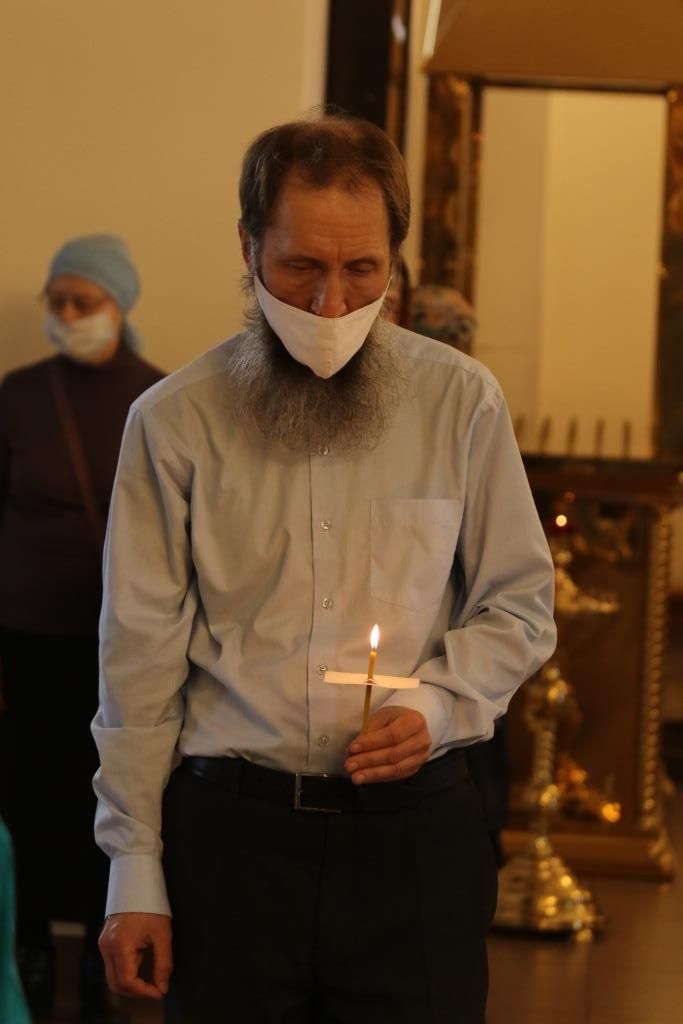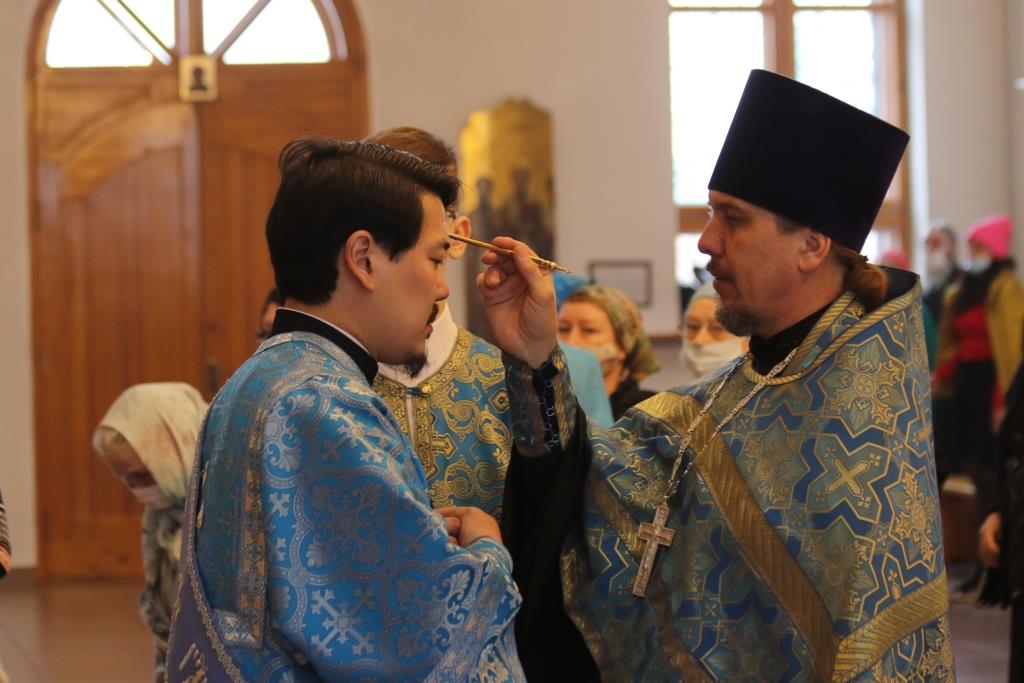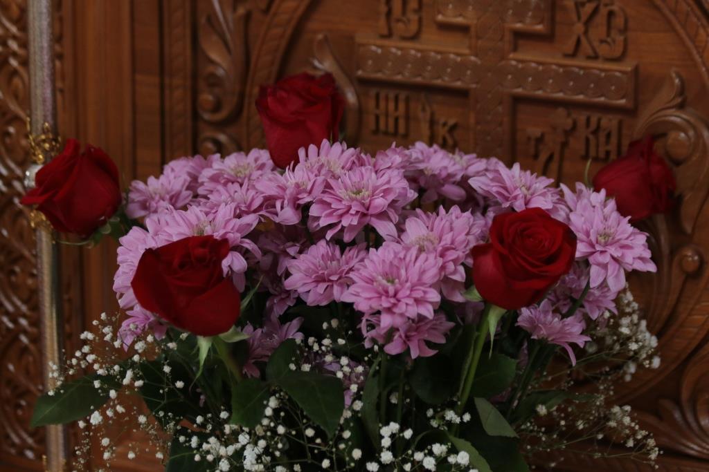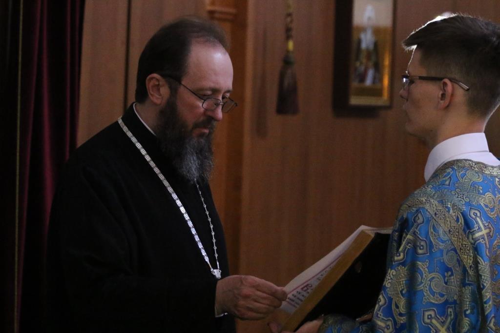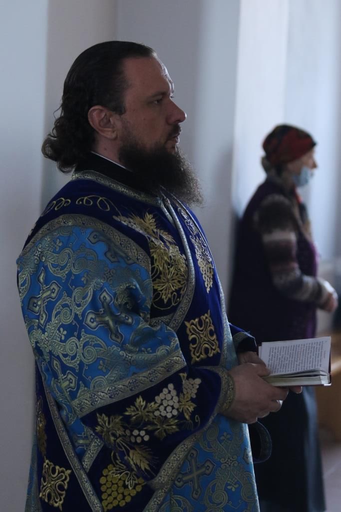 За богослужением епископ Амфилохий поздравил клирика кафедрального собора протодиакона Георгия Засыпкина с 45-летием со дня рождения и вручил ему памятный подарок. После чтения праздничного евангельского зачала епископ Амфилохий помазал клириков освященным елеем.