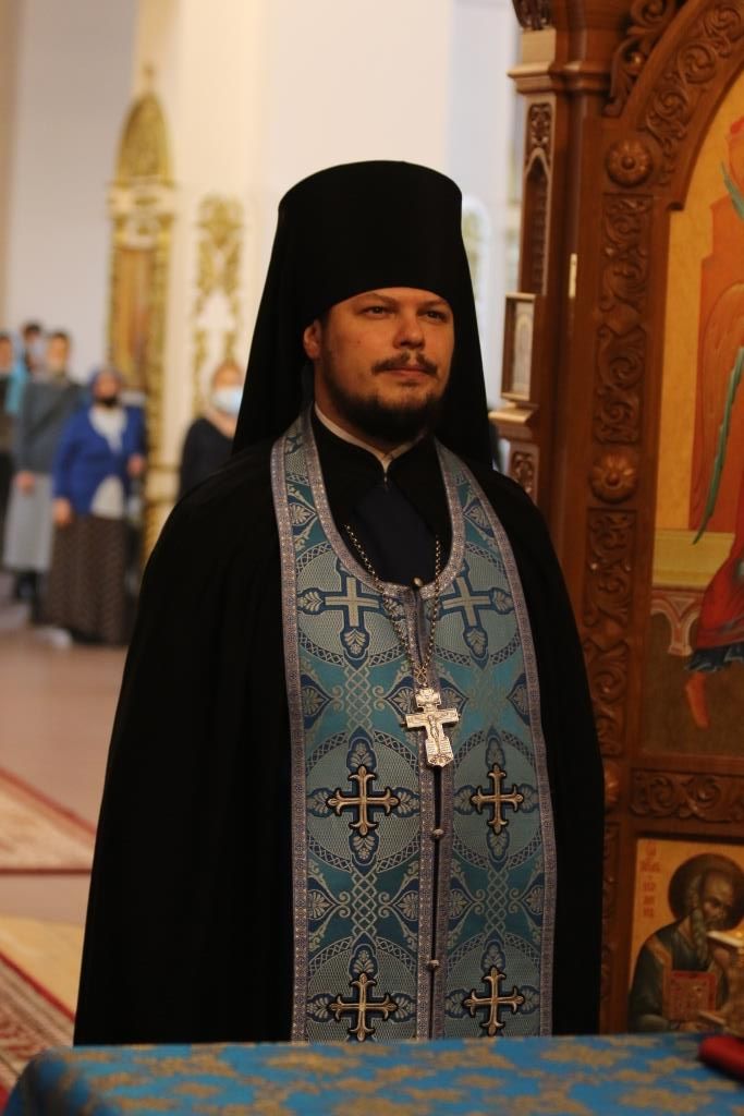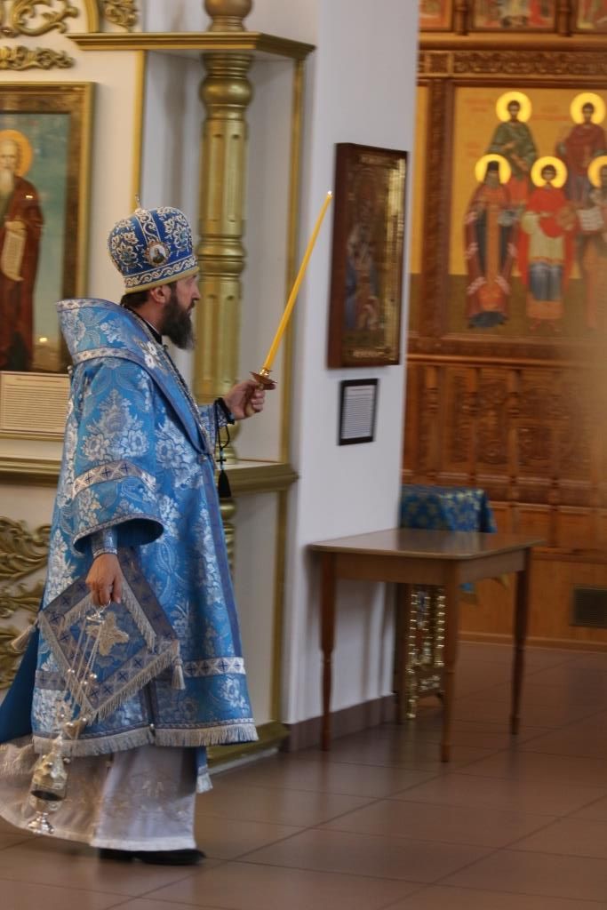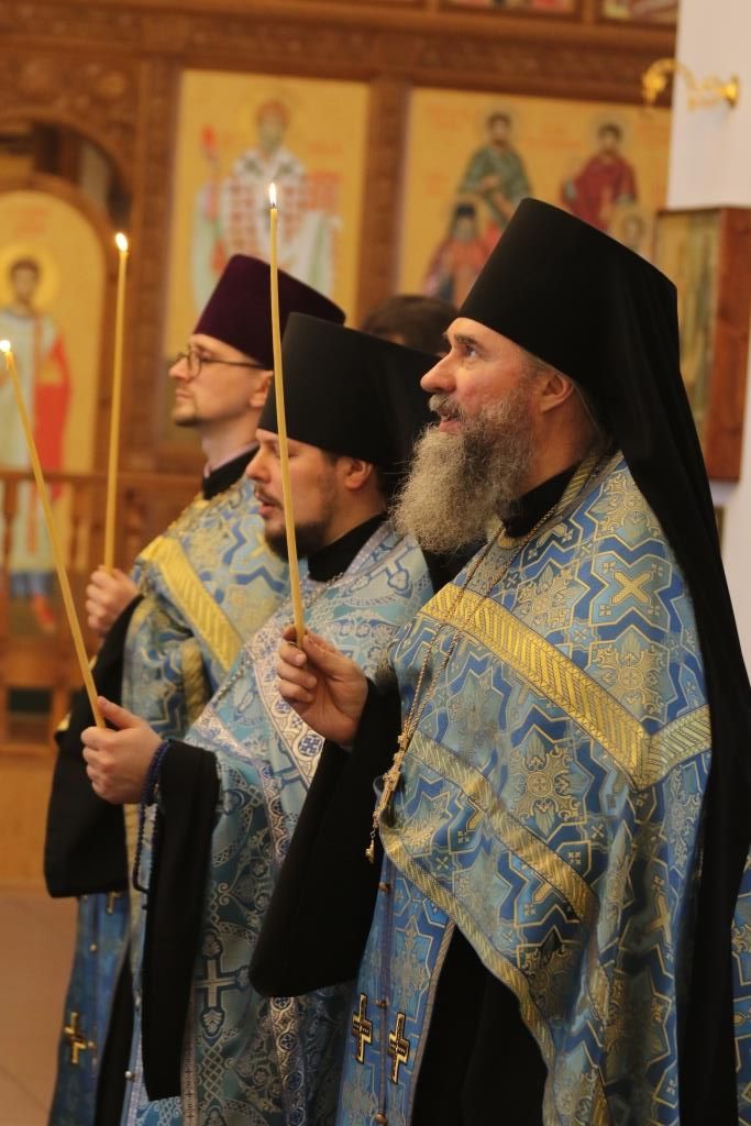 Его Преосвященству сослужили: ключарь кафедрального собора иеромонах Никодим (Авдеев), клирики собора иерей Алексий Клепиков, иеромонах Силуан (Магилев), иерей Роман Подрезов, иерей Константин Дьяков, секретарь епархии диакон Илия Кван, протодиакон Георгий Засыпкин, протодиакон Андрей Дудник.