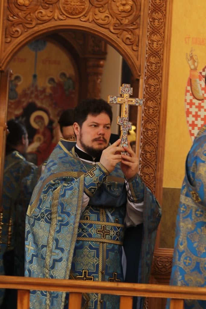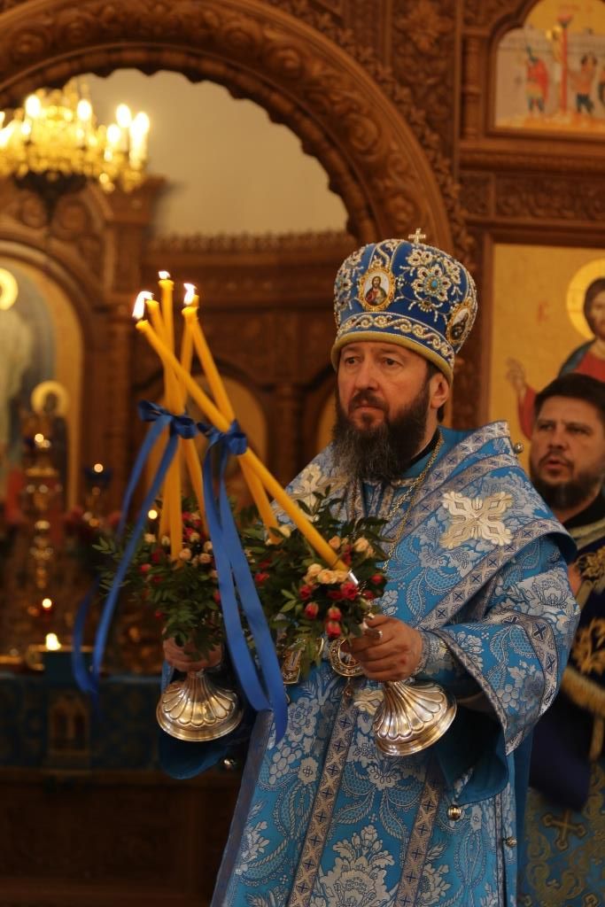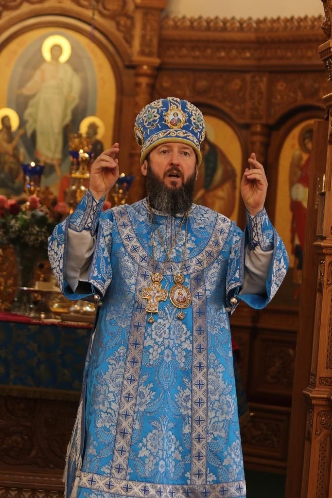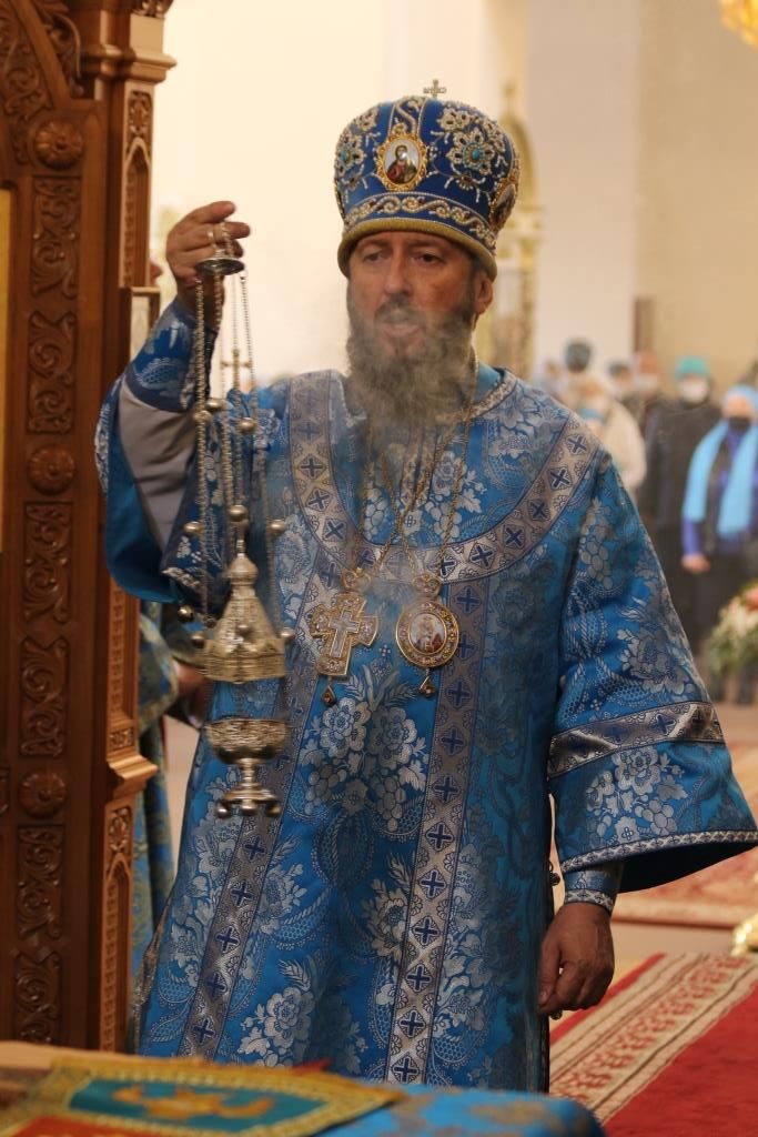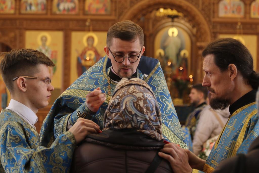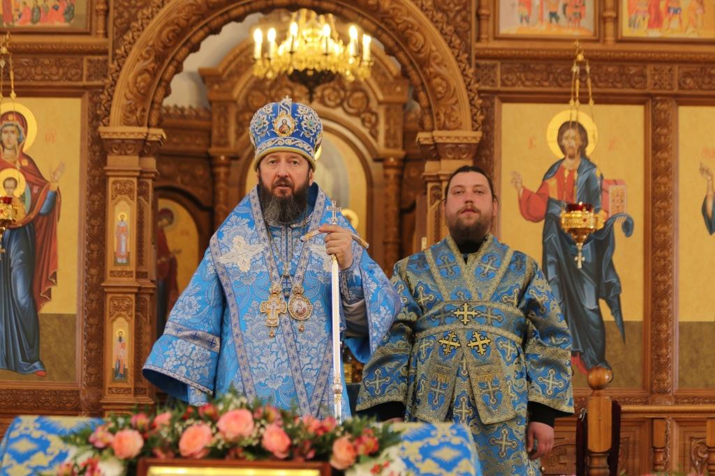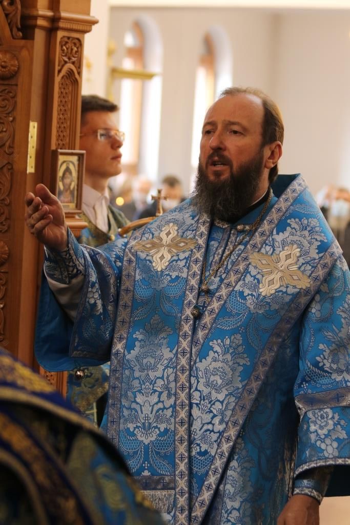Перед причастием мирян проповедовал иеромонах Силуан (Магилев). После заамвонной молитвы Архипастырь с духовенством и молящимися воспел славление Пресвятой Матери Божией, после чего поздравил всех с праздником и обратился к народу Божию со словами наставления.