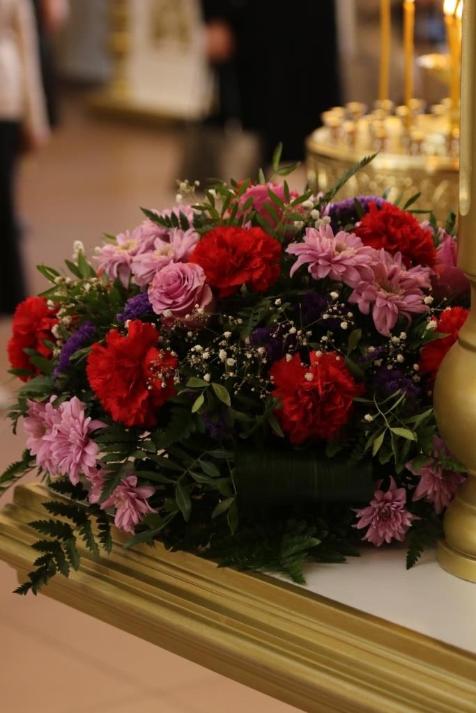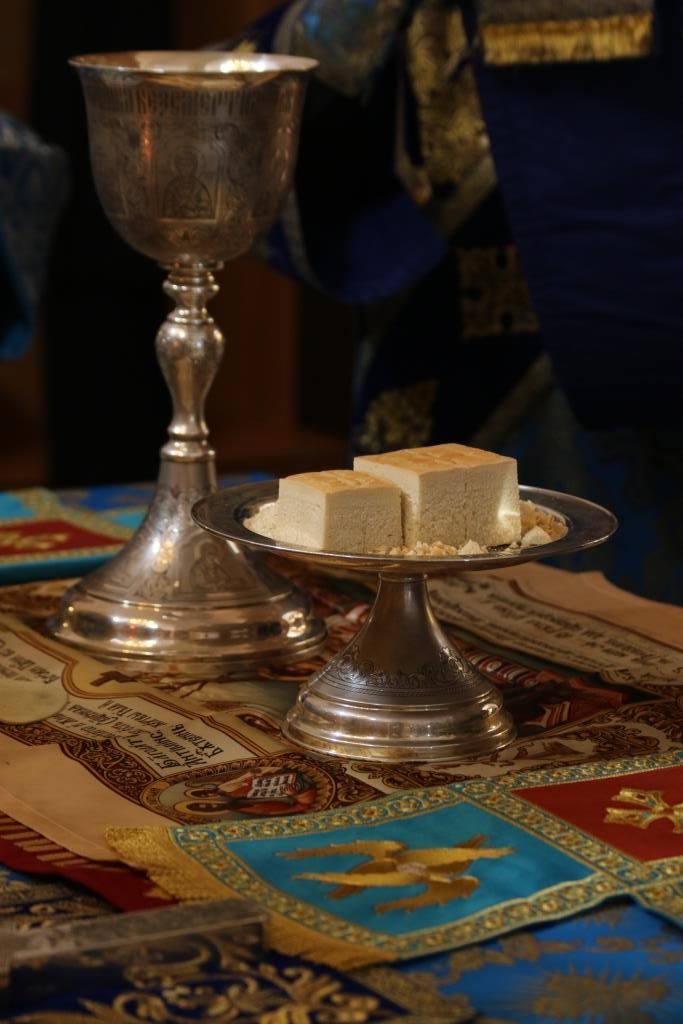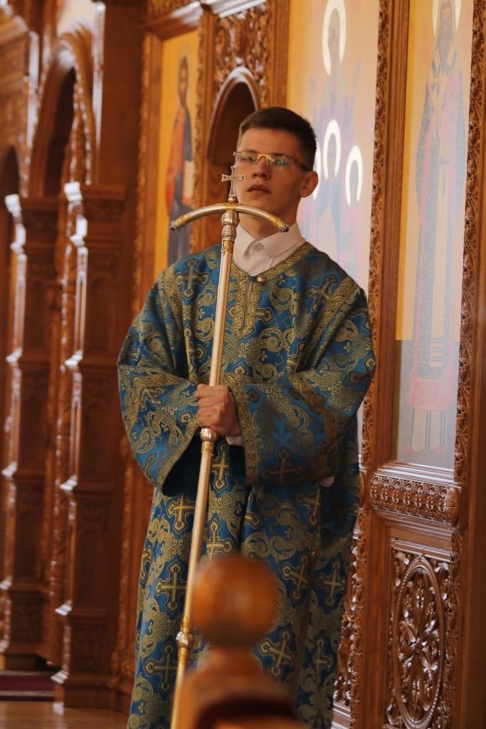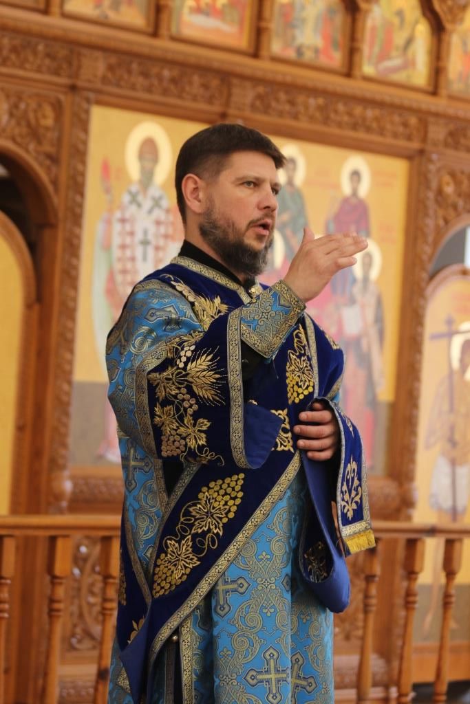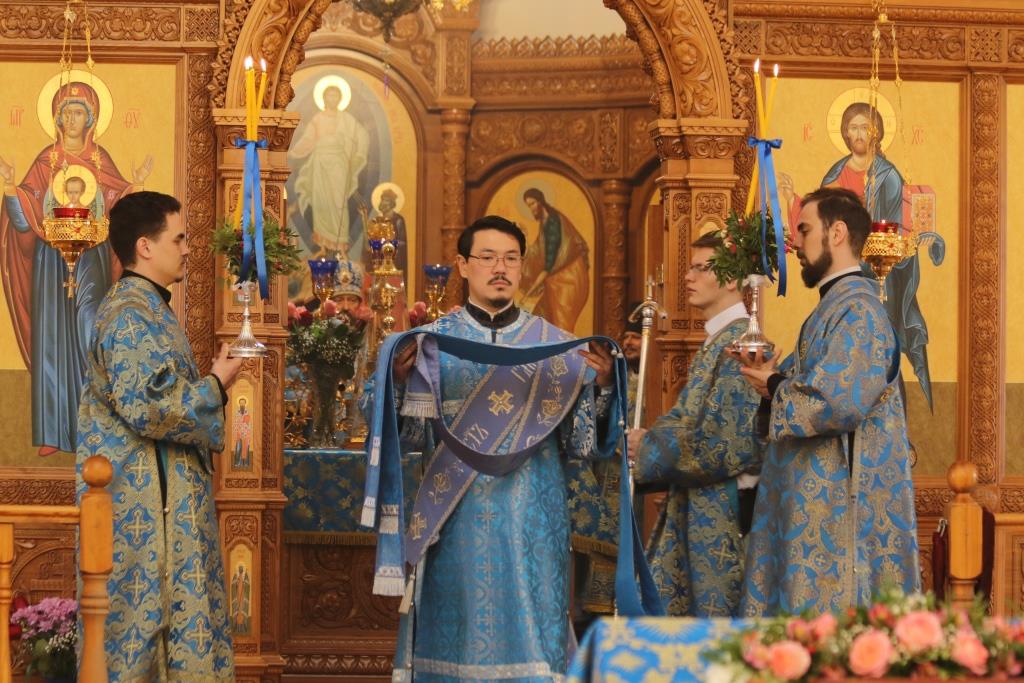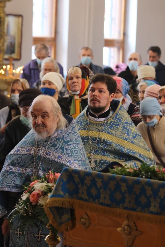 Перед причастием мирян проповедовал иеромонах Силуан (Магилев). После заамвонной молитвы Архипастырь с духовенством и молящимися воспел славление Пресвятой Матери Божией, после чего поздравил всех с праздником и обратился к народу Божию со словами наставления.