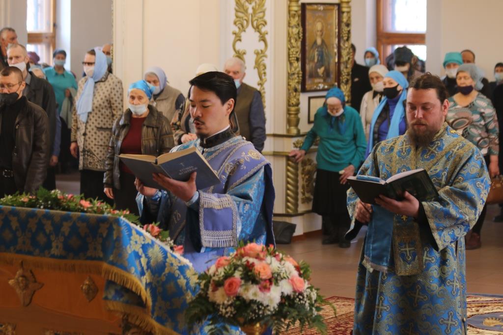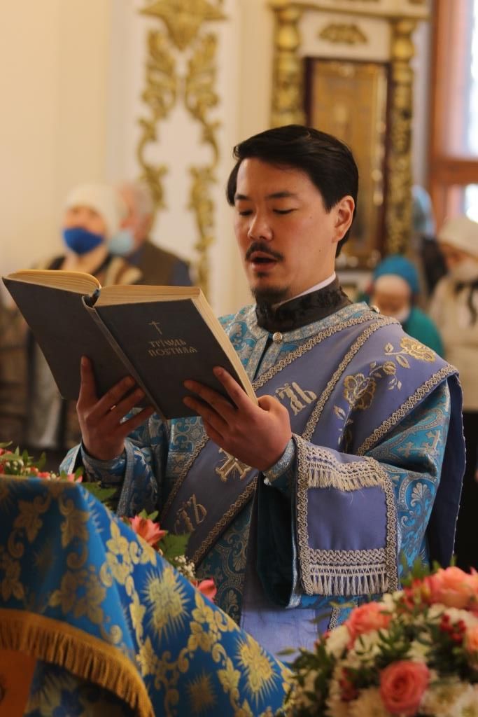 В праздничный день Владыке Амфилохию сослужили: духовник епархии архимандрит Спиридон (Теплухин), ключарь кафедрального собора иеромонах Никодим (Авдеев), клирики собора иеромонах Силуан (Магилев), иерей Роман Подрезов, иерей Константин Дьяков, секретарь епархии диакон Илия Кван, протодиаконы Георгий Засыпкин и Андрей Дудник. Песнопения праздника Благовещения и Божественной Литургии исполнял хор под управлением регента В. Федоровой. В храме молились прихожане кафедрального собора, паломники и насельники Свято-Троицкого мужского монастыря города Усть-Каменогорска.