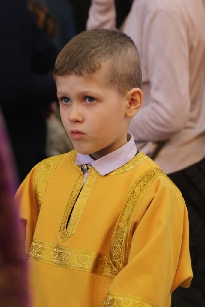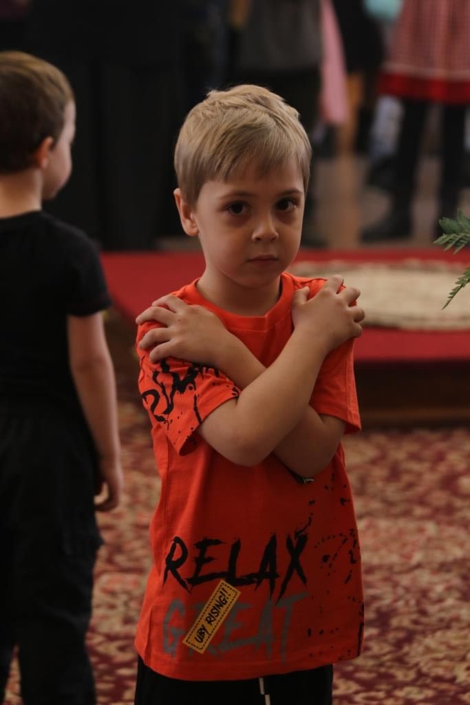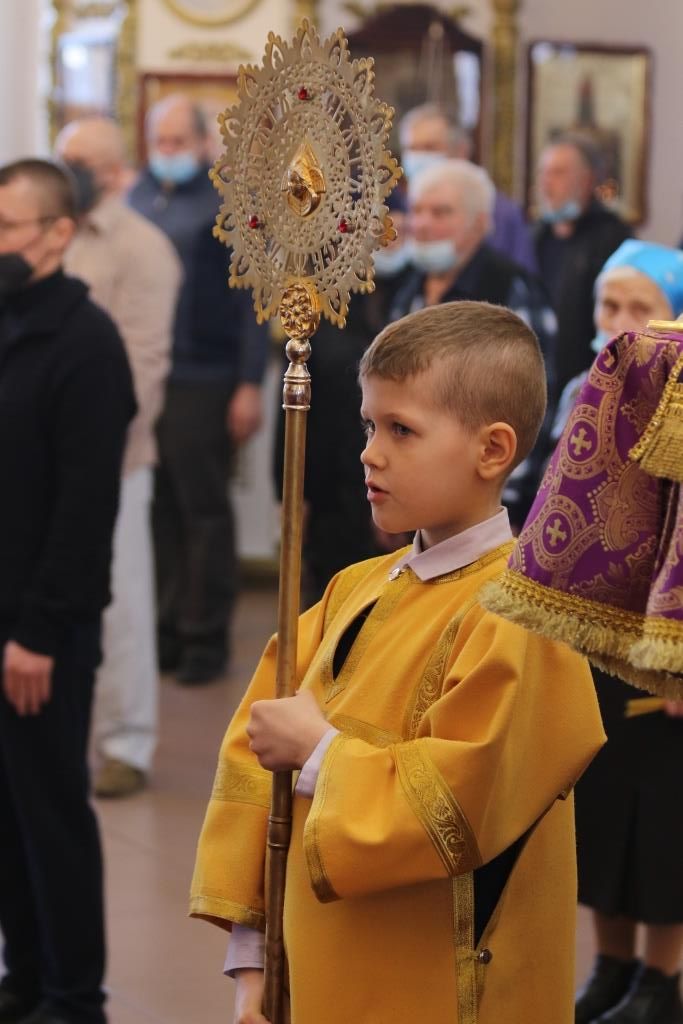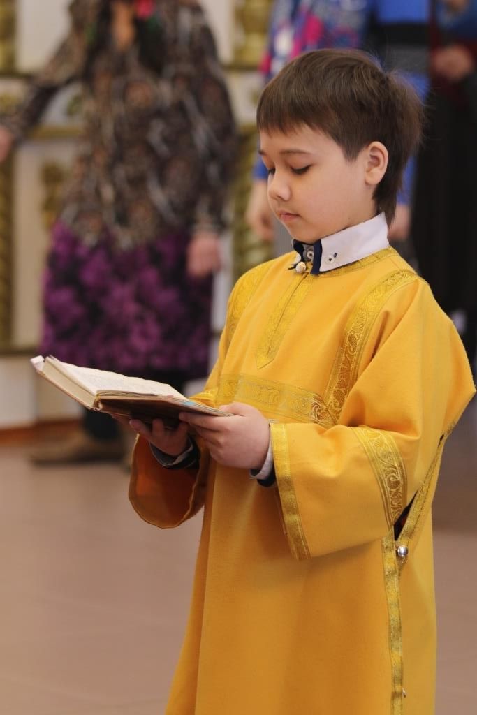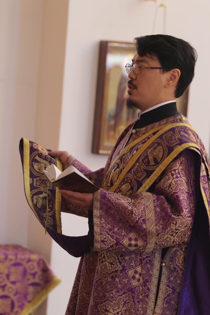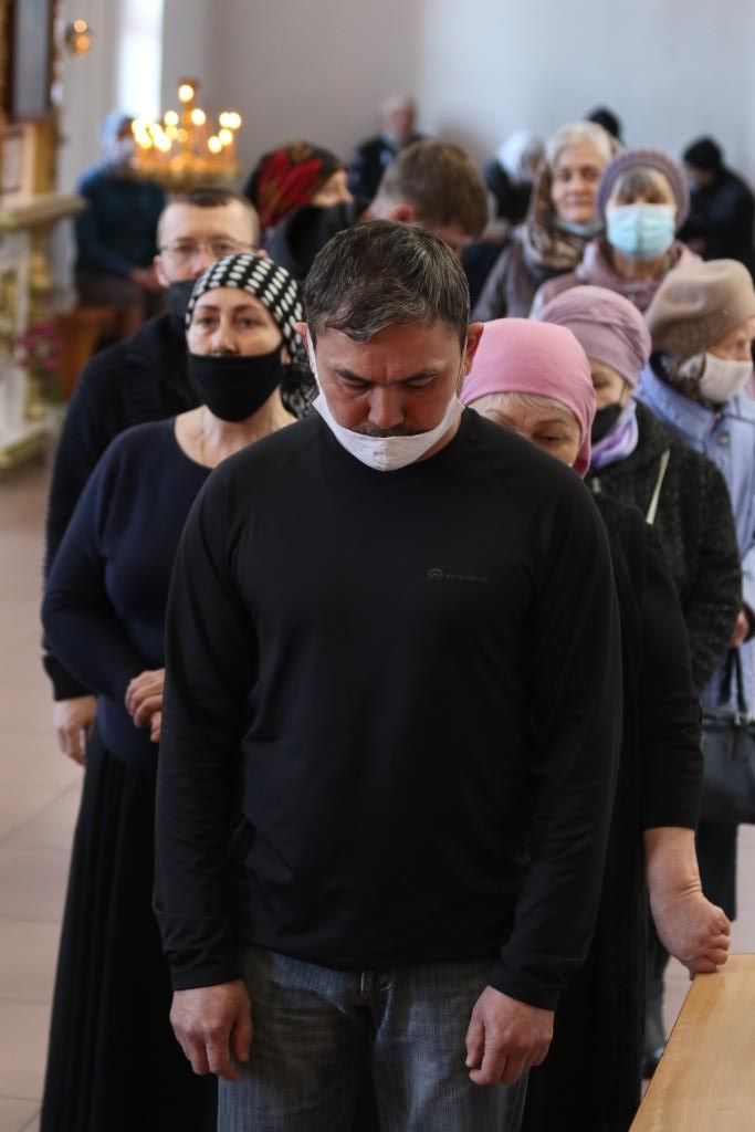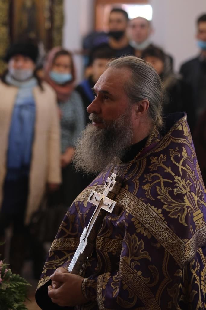 Песнопения Божественной Литургии исполнял хор Андреевского собора (регент – Н. Романцова). За воскресным богослужением молились прихожане и паломники кафедрального собора, насельники Свято-Троицкого мужского монастыря города Усть-Каменогорска и сотрудники епархиального управления. Перед причастием мирян проповедовал иеромонах Силуан (Магилёв).
