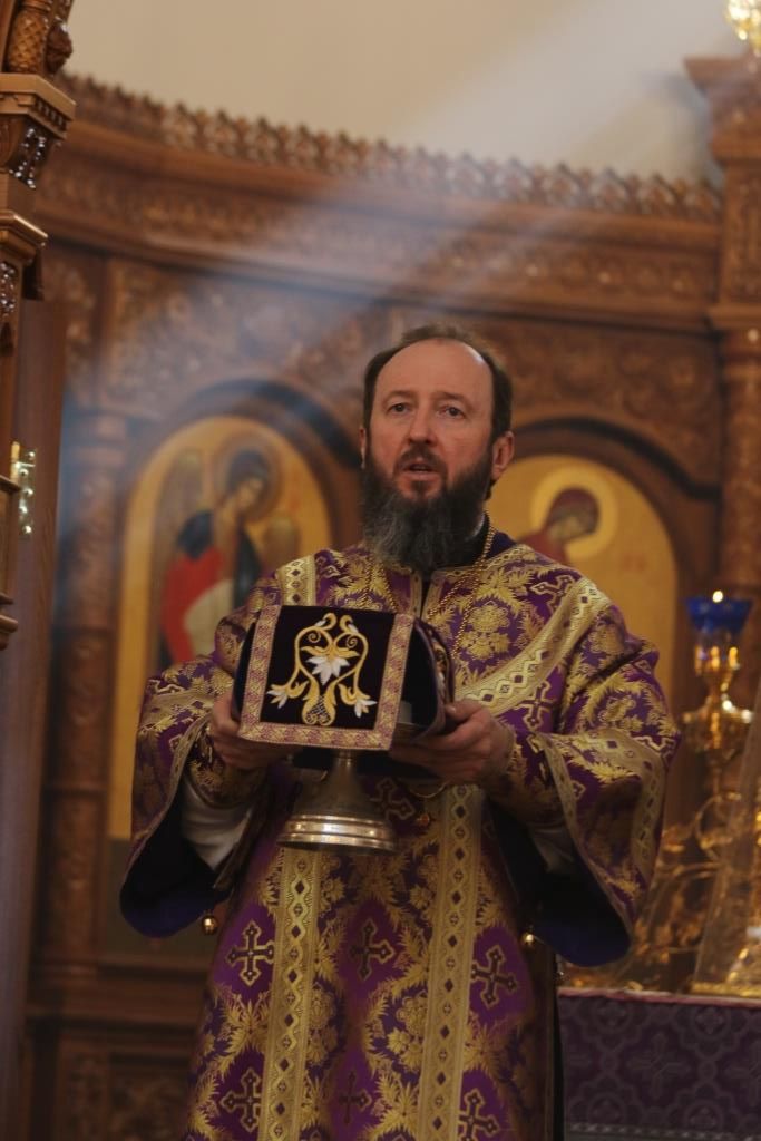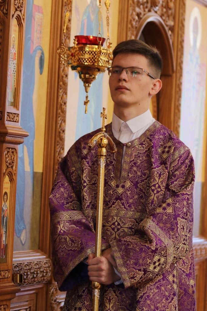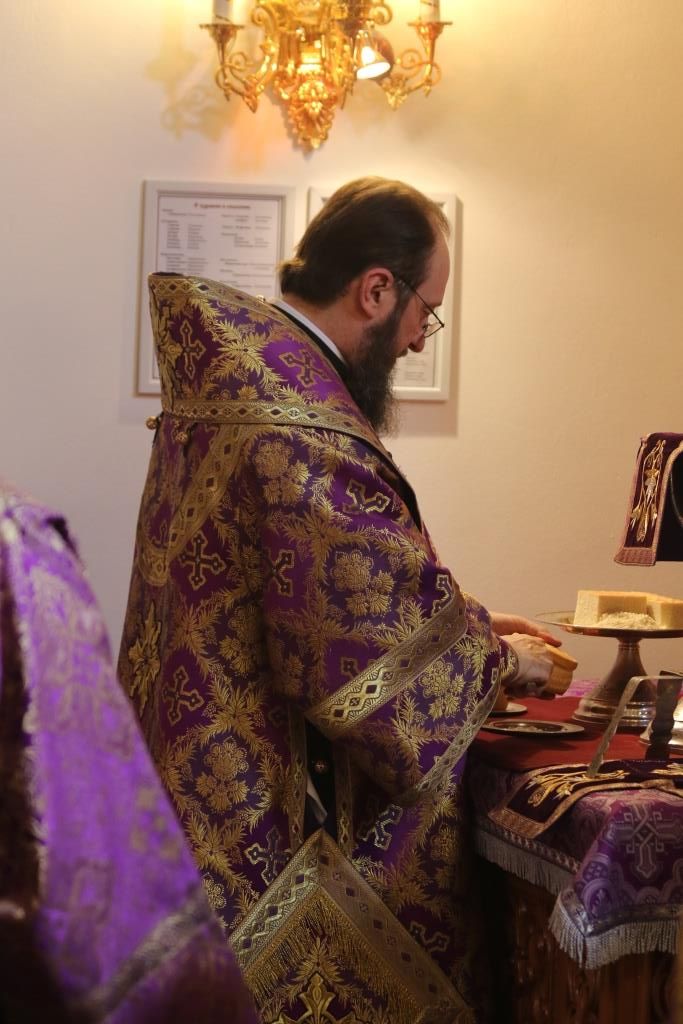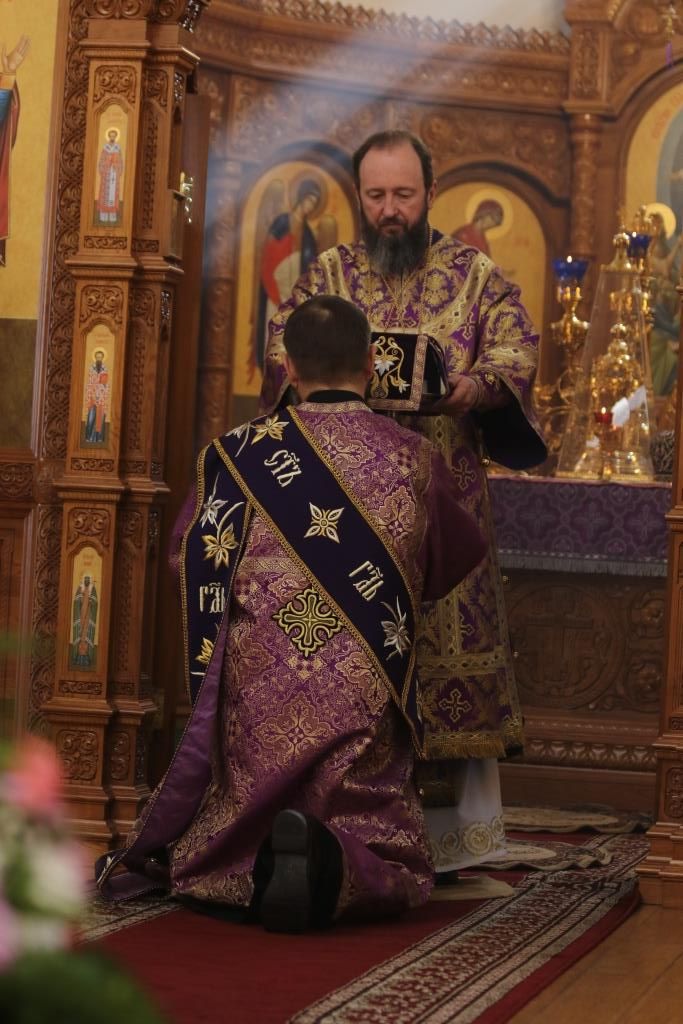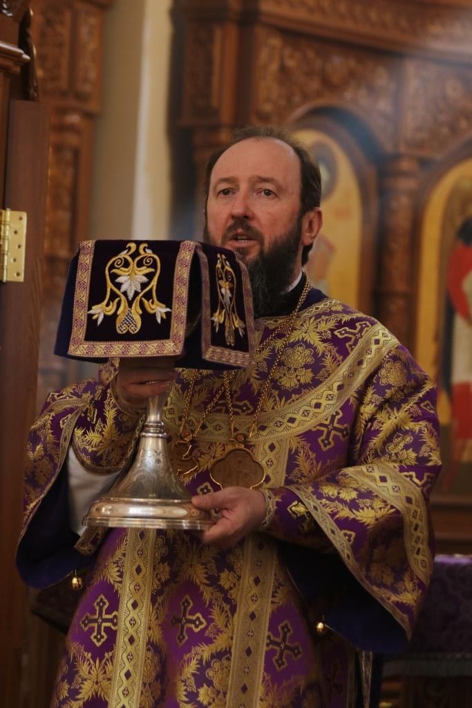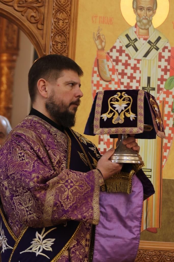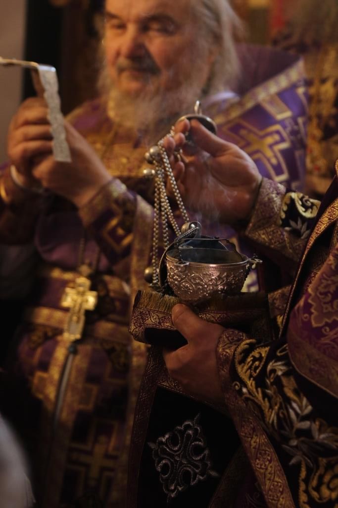 Его Преосвященству сослужили: духовник епархии архимандрит Спиридон (Теплухин), ключарь Андреевского собора иеромонах Никодим (Авдеев), клирики собора иеромонах Силуан (Магилёв) иерей Роман Подрезов, секретарь епархии диакон Илия Кван, протодиакон Георгий Засыпкин, протодиакон Андрей Дудник.