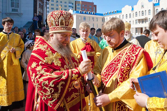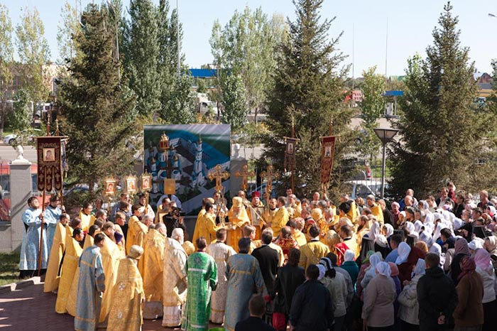 В молебне на начало строительства звонницы Успенского кафедрального собора приняли участие: архиепископ Уральский и Актюбинский Антоний, архиепископ Чимкентский и Таразский Елевферий, епископ Петропавловский и Булаевский Гурий, епископ Костанайский и Рудненский Анатолий, епископ Дубновский Нектарий, епископ Каскеленский Геннадий, Управляющий делами Казахстанского Митрополичьего Округа; епископ Павлодарский и Экибастузский Варнава, епископ Карагандинский и Шахтинский Севастиан, епископ Усть-Каменогорский и Семипалатинский Амфилохий и духовенство, сослужившее архипастырям за Литургией.