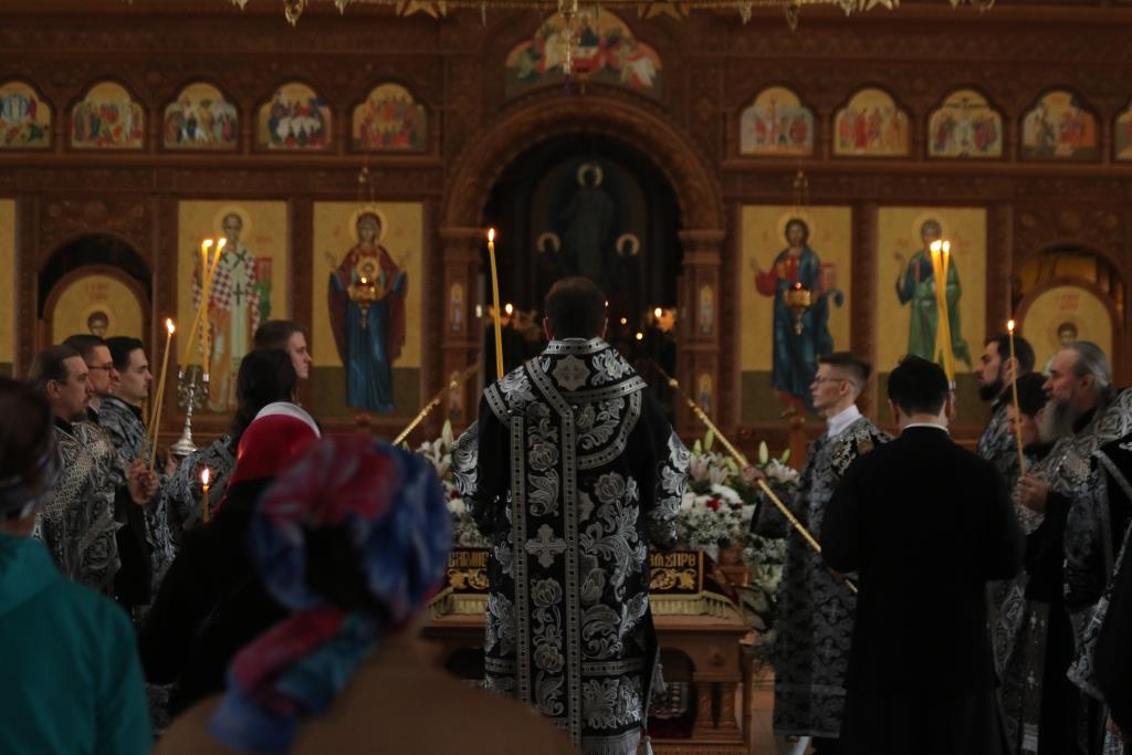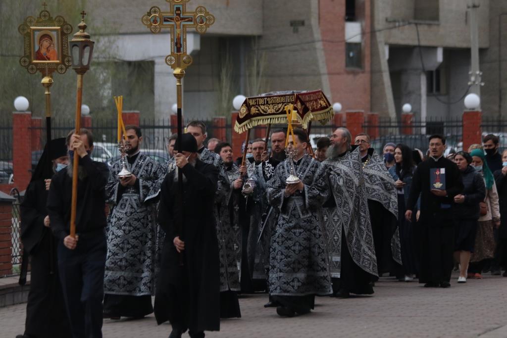 Преосвященнейший епископ Усть-Каменогорский и Семипалатинский Амфилохий совершил утреню с чином погребения Плащаницы Господа нашего Иисуса Христа в Андреевском кафедральном соборе столицы Рудного Алтая. Его Преосвященству сослужили клирики кафедрального собора. Песнопения Великой Пятницы исполнял хор под управлением регента Н. Романцовой.