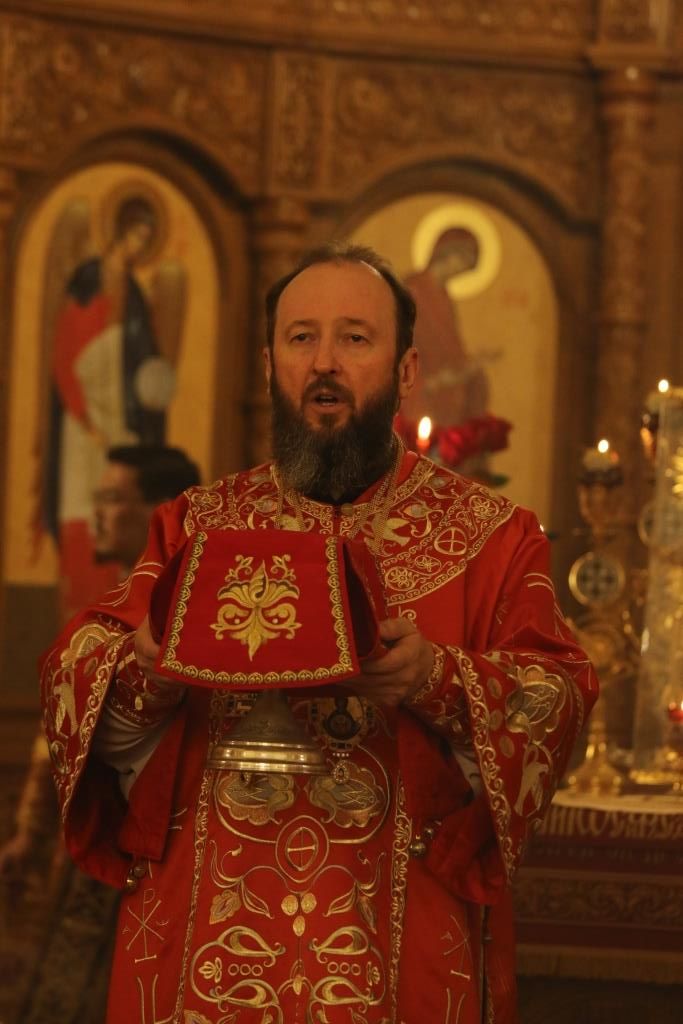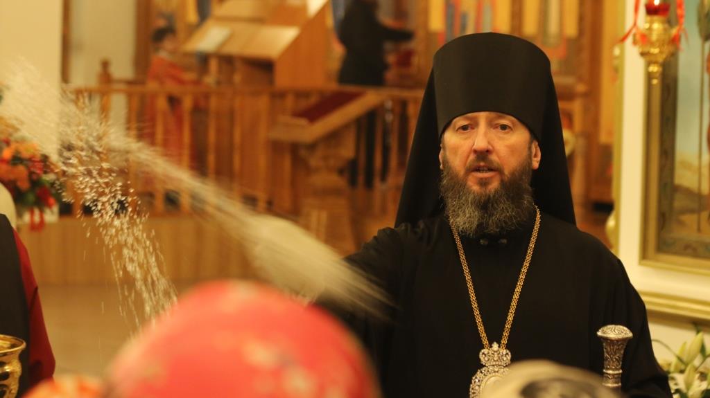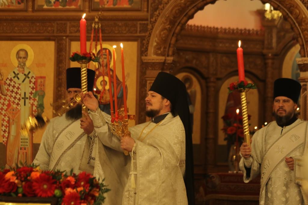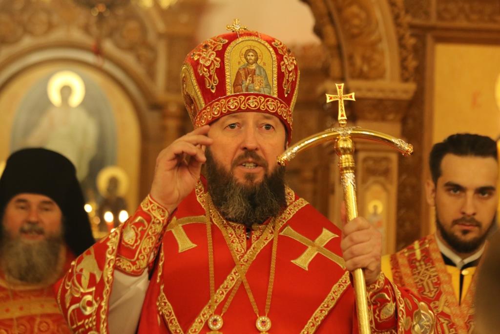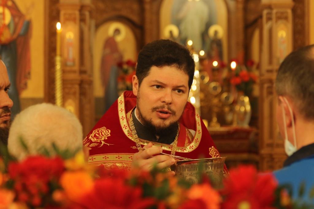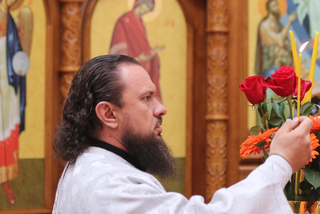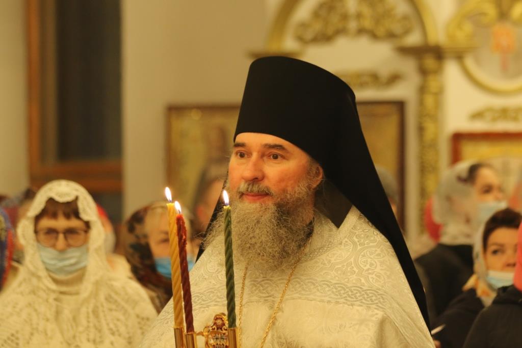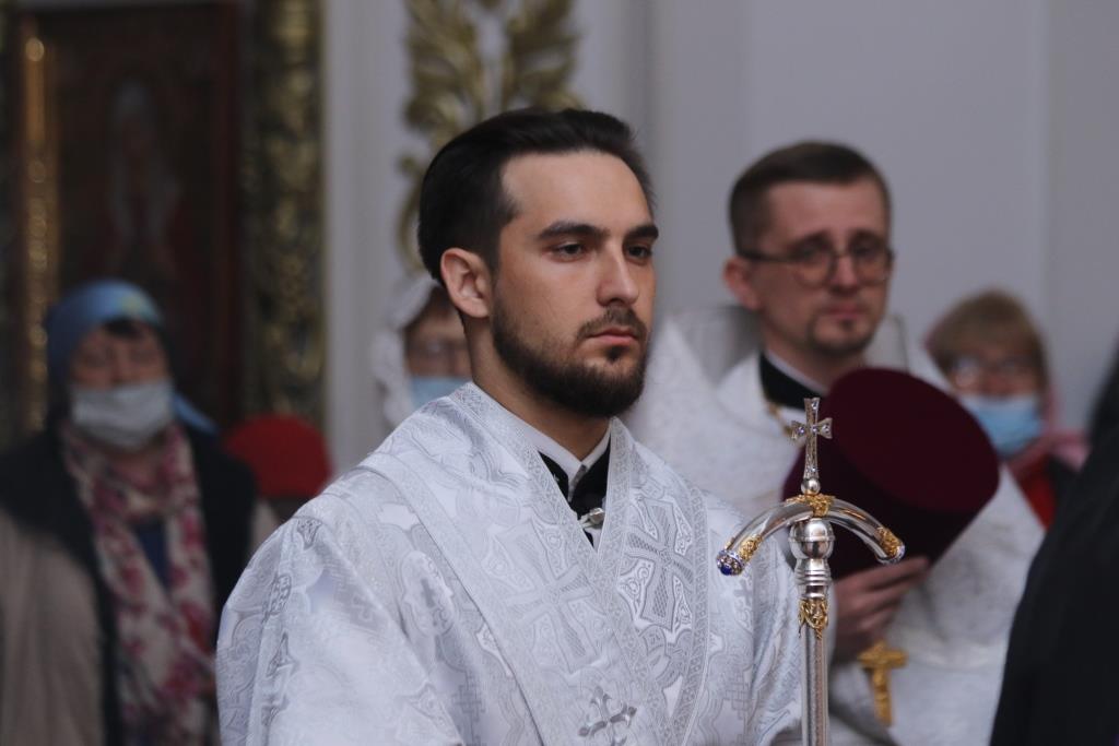 Его Преосвященству сослужили: духовник епархии архимандрит Спиридон (Теплухин), ключарь Андреевского собора иеромонах Никодим (Авдеев), клирики храма иерей Алексий Клепиков, иеромонах Силуан (Магилев), иерей Роман Подрезов, иерей Константин Дьяков, секретарь епархии диакон Илия Кван, протодиаконы Георгий Засыпкин и Андрей Дудник.