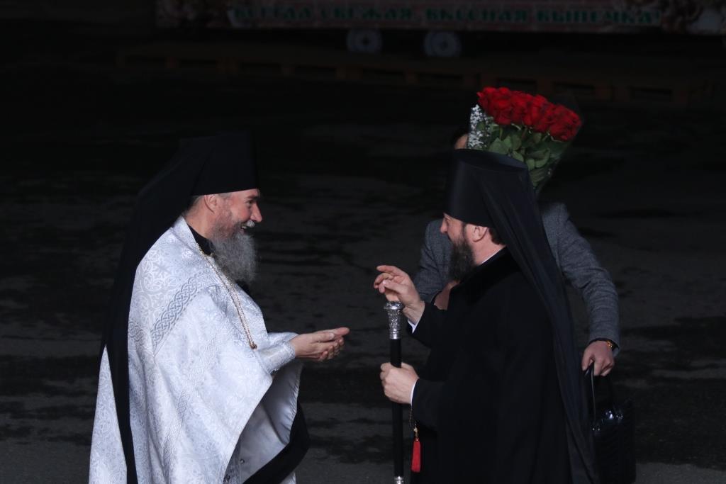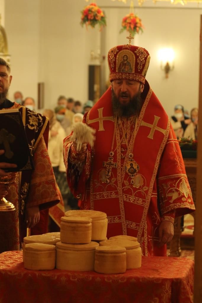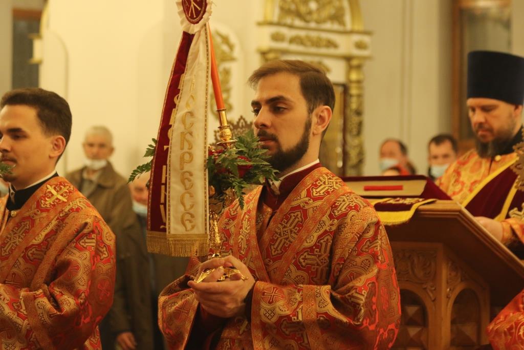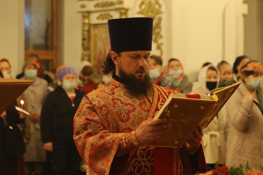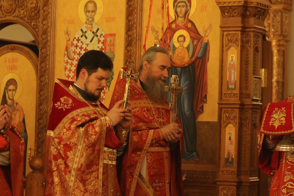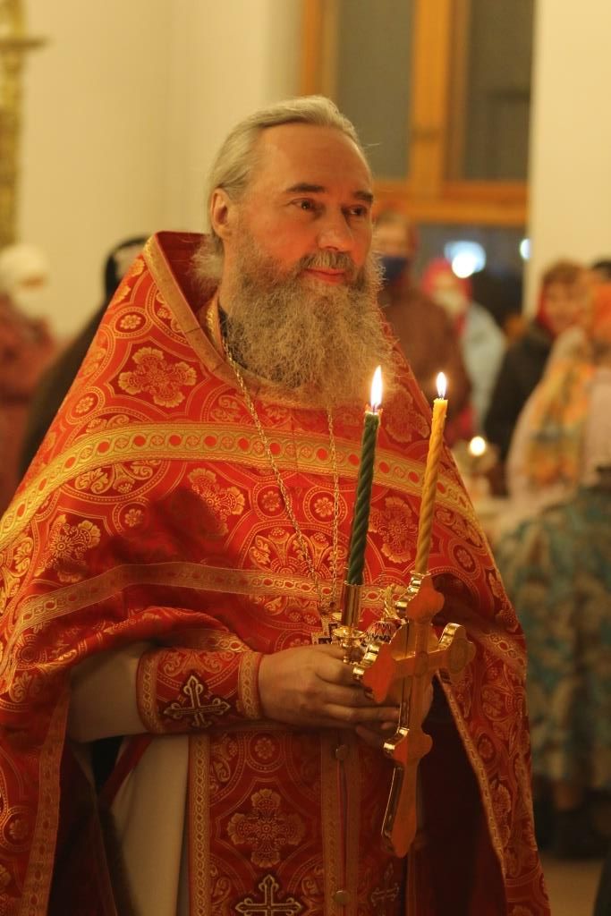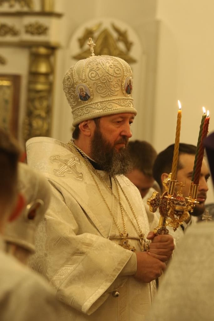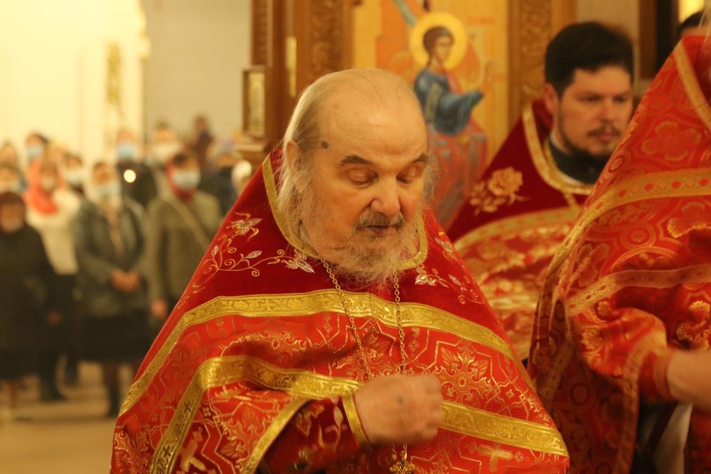 Его Преосвященству сослужили: духовник епархии архимандрит Спиридон (Теплухин), ключарь Андреевского собора иеромонах Никодим (Авдеев), клирики храма иерей Алексий Клепиков, иеромонах Силуан (Магилев), иерей Роман Подрезов, иерей Константин Дьяков, секретарь епархии диакон Илия Кван, протодиаконы Георгий Засыпкин и Андрей Дудник.