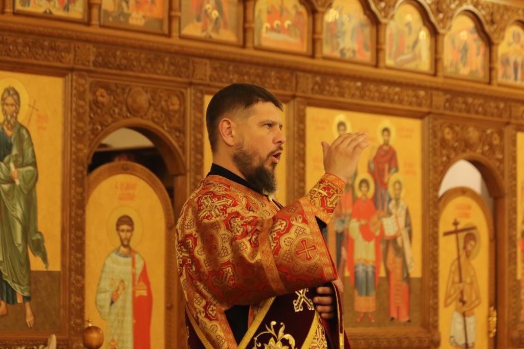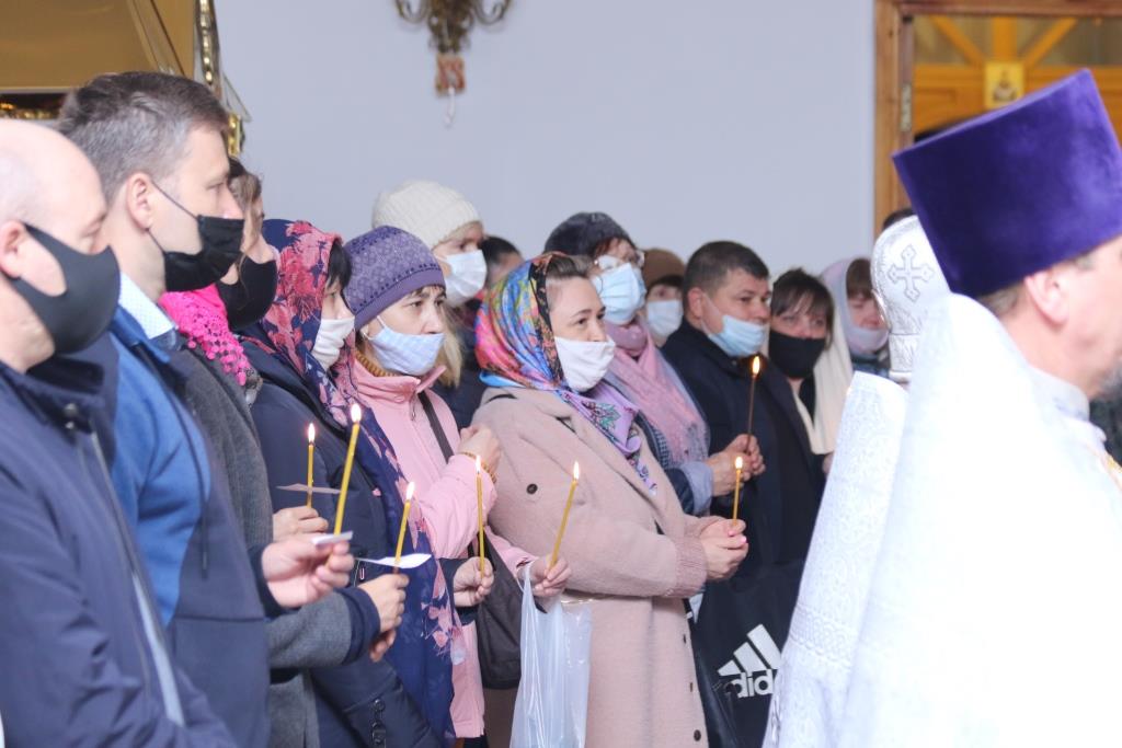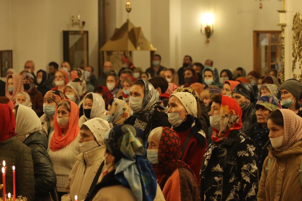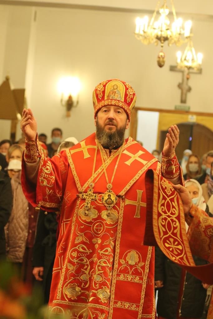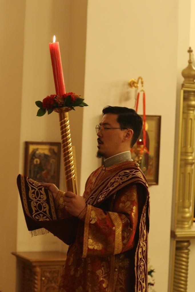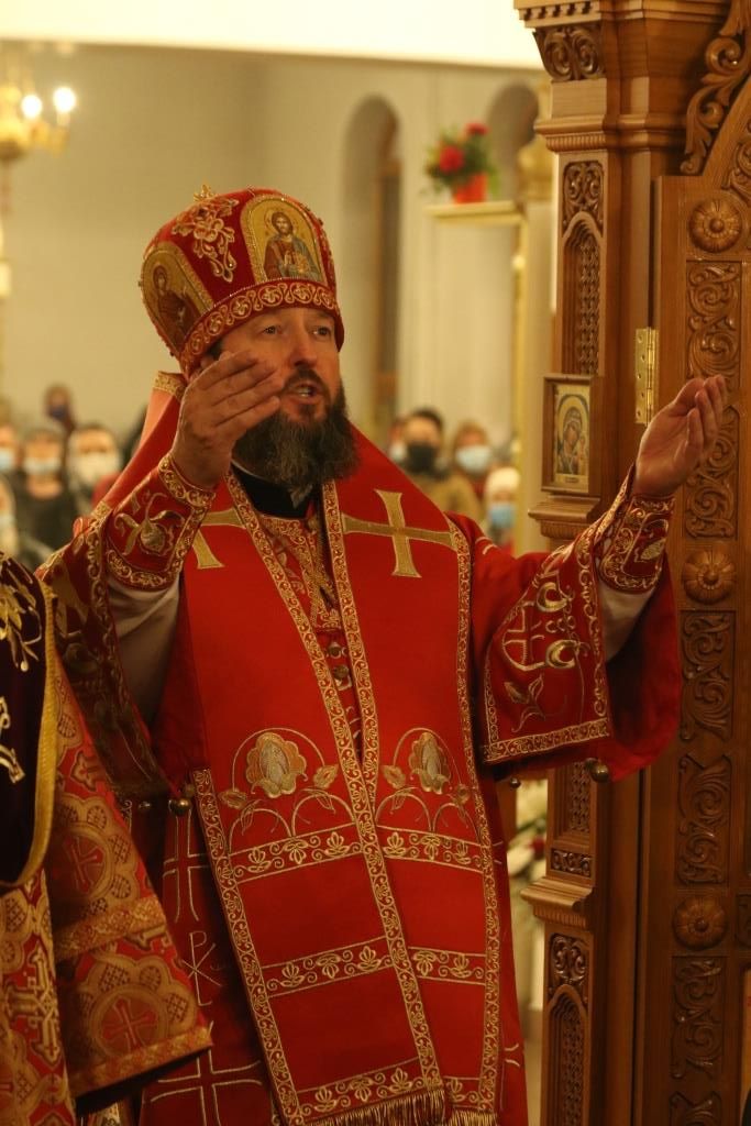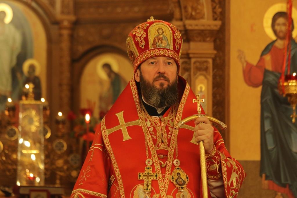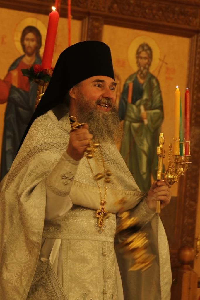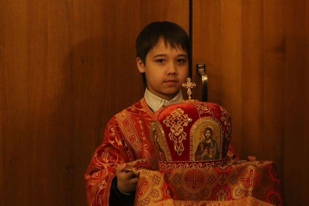 Его Преосвященству сослужили: духовник епархии архимандрит Спиридон (Теплухин), ключарь Андреевского собора иеромонах Никодим (Авдеев), клирики храма иерей Алексий Клепиков, иеромонах Силуан (Магилев), иерей Роман Подрезов, иерей Константин Дьяков, секретарь епархии диакон Илия Кван, протодиаконы Георгий Засыпкин и Андрей Дудник.
