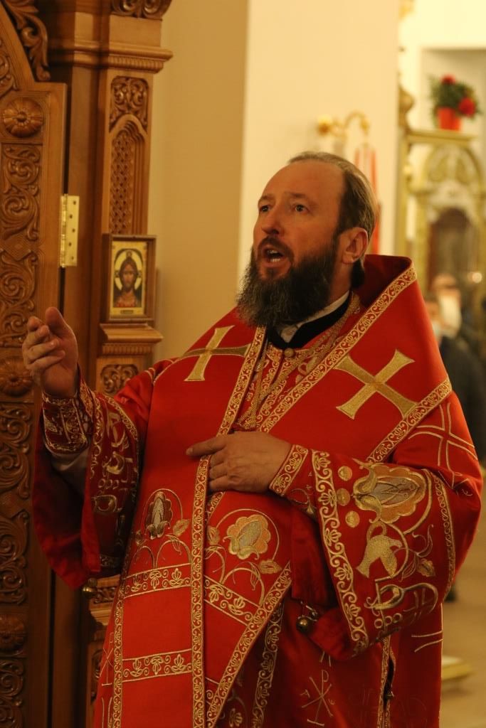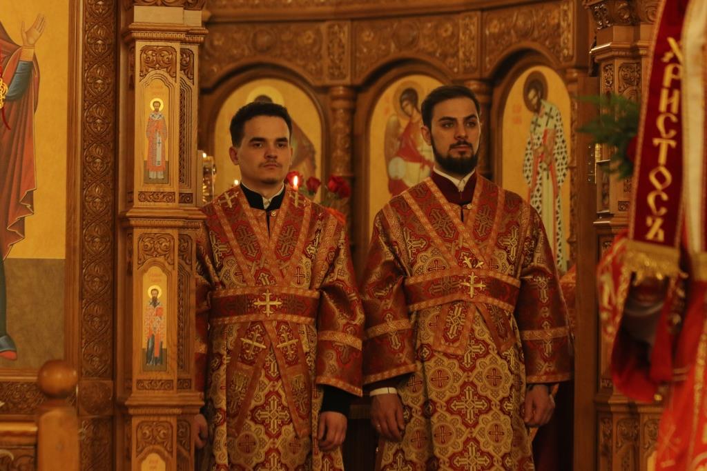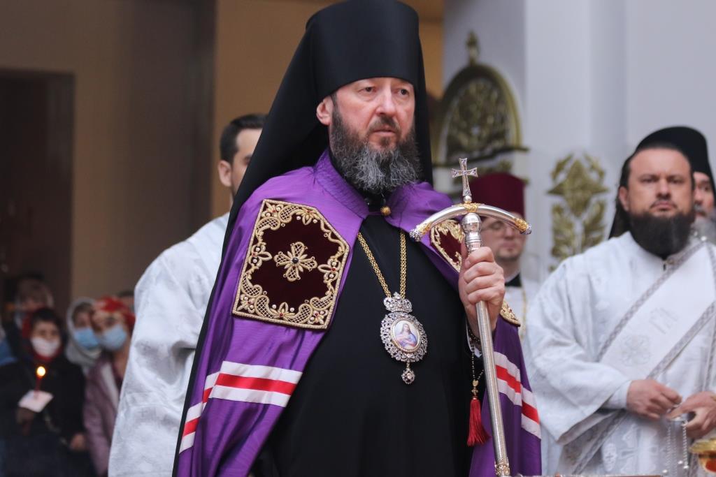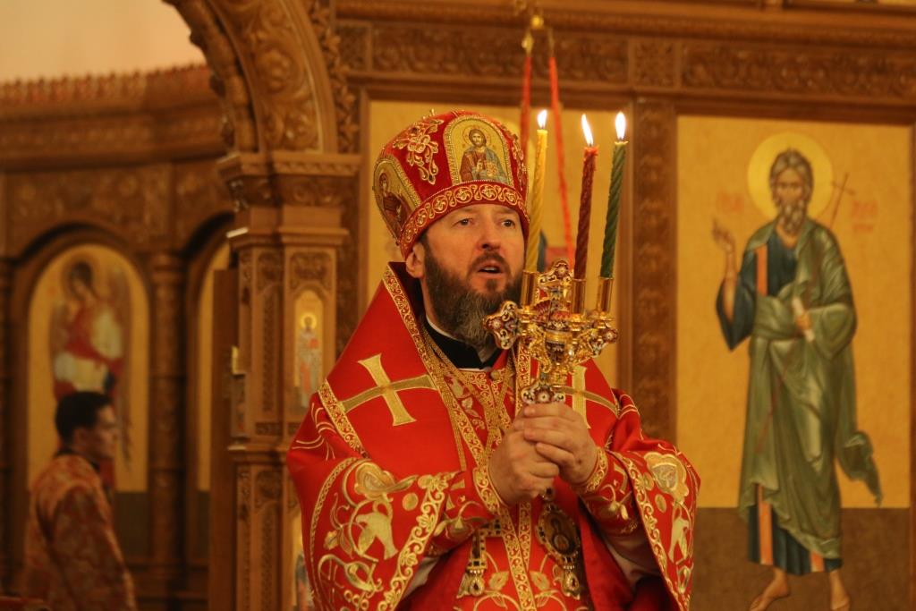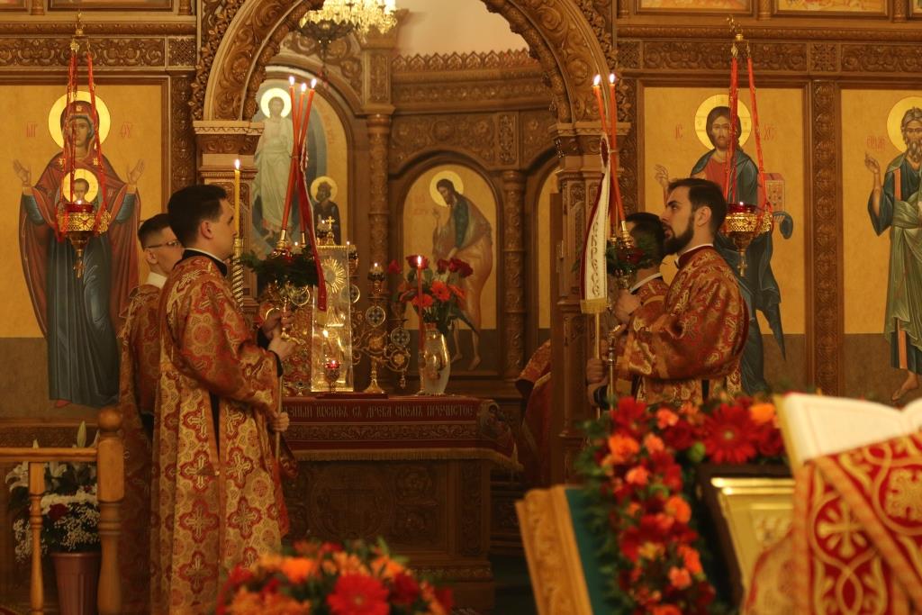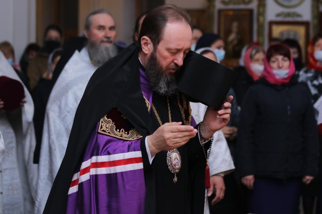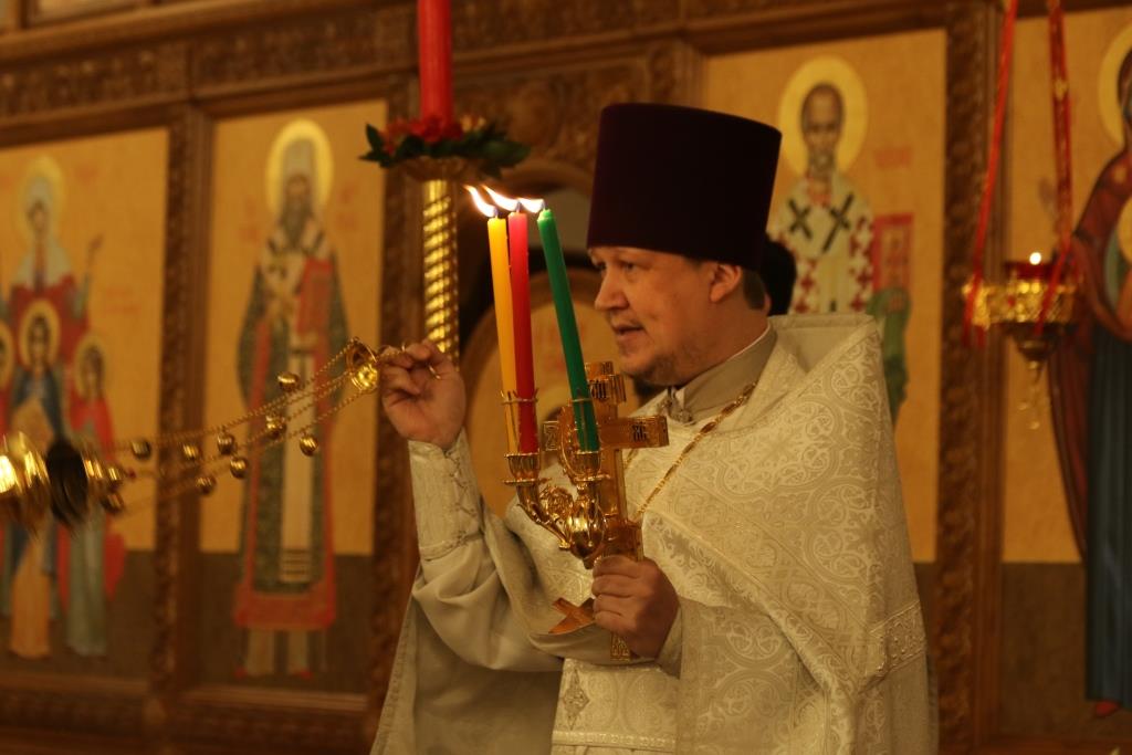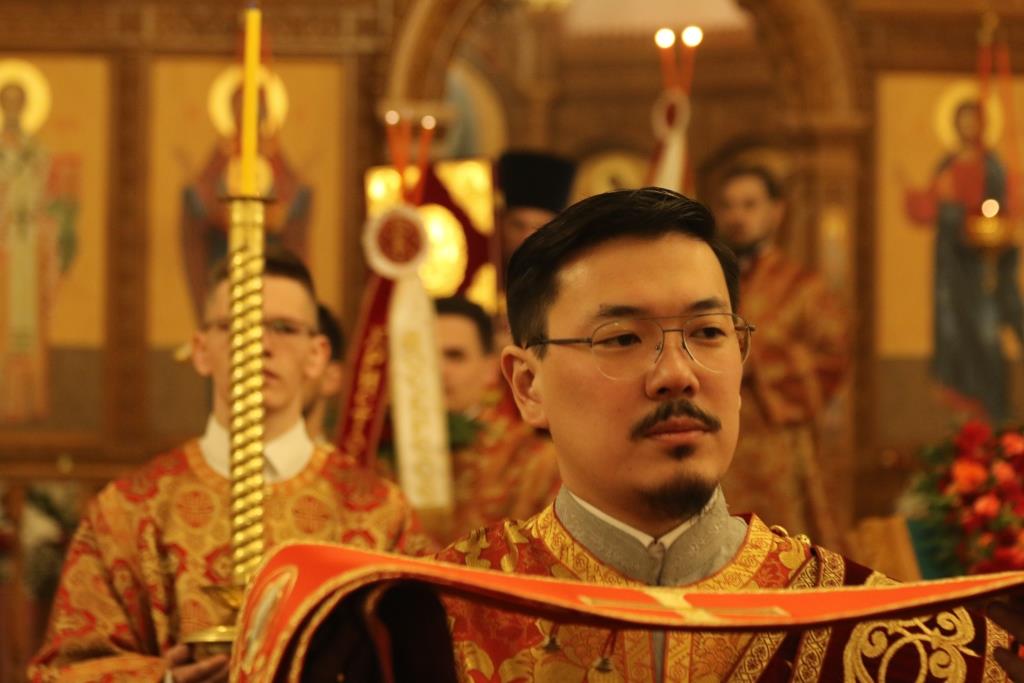 Его Преосвященству сослужили: духовник епархии архимандрит Спиридон (Теплухин), ключарь Андреевского собора иеромонах Никодим (Авдеев), клирики храма иерей Алексий Клепиков, иеромонах Силуан (Магилев), иерей Роман Подрезов, иерей Константин Дьяков, секретарь епархии диакон Илия Кван, протодиаконы Георгий Засыпкин и Андрей Дудник.