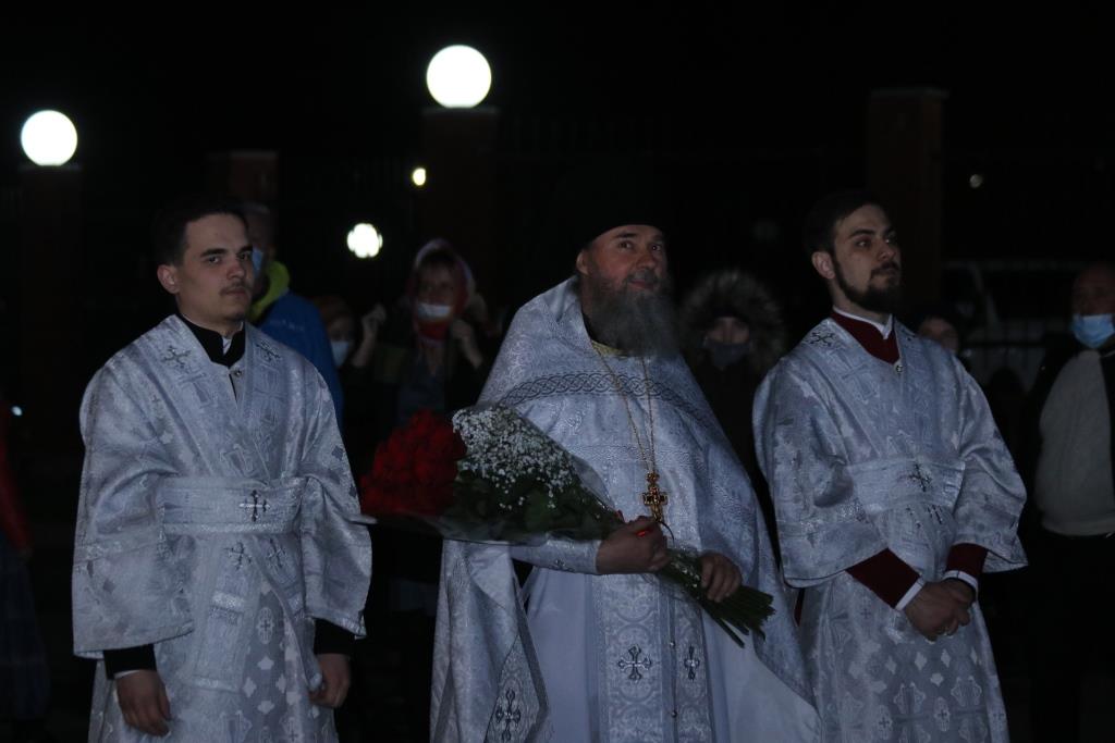 После пения канона и стихир Пасхи молящиеся услышали «Слово огласительное святителя Иоанна Златоуста», замечательное творение Отца Церкви, в котором все христиане призываются в святую пасхальную ночь насладиться светлым торжеством и войти в радость тридневно Воскресшего Господа.