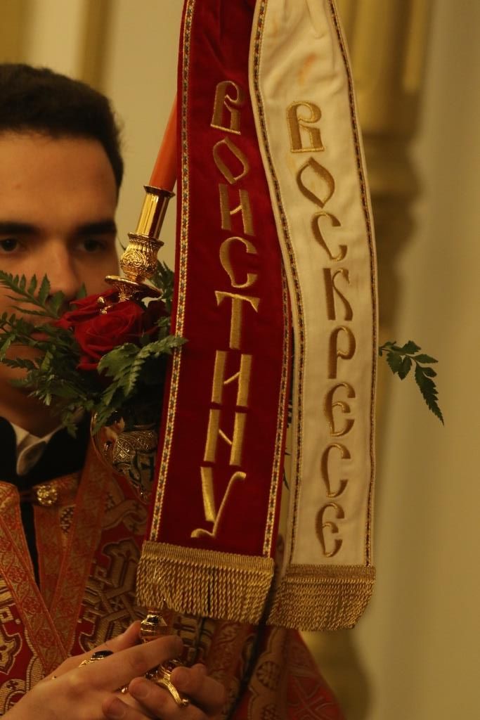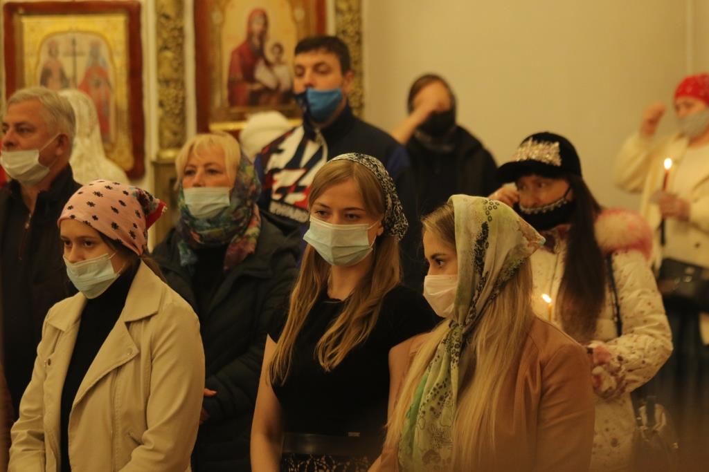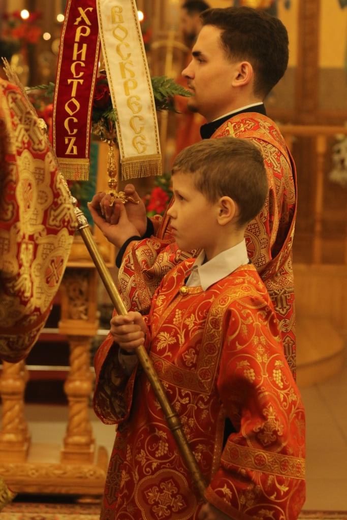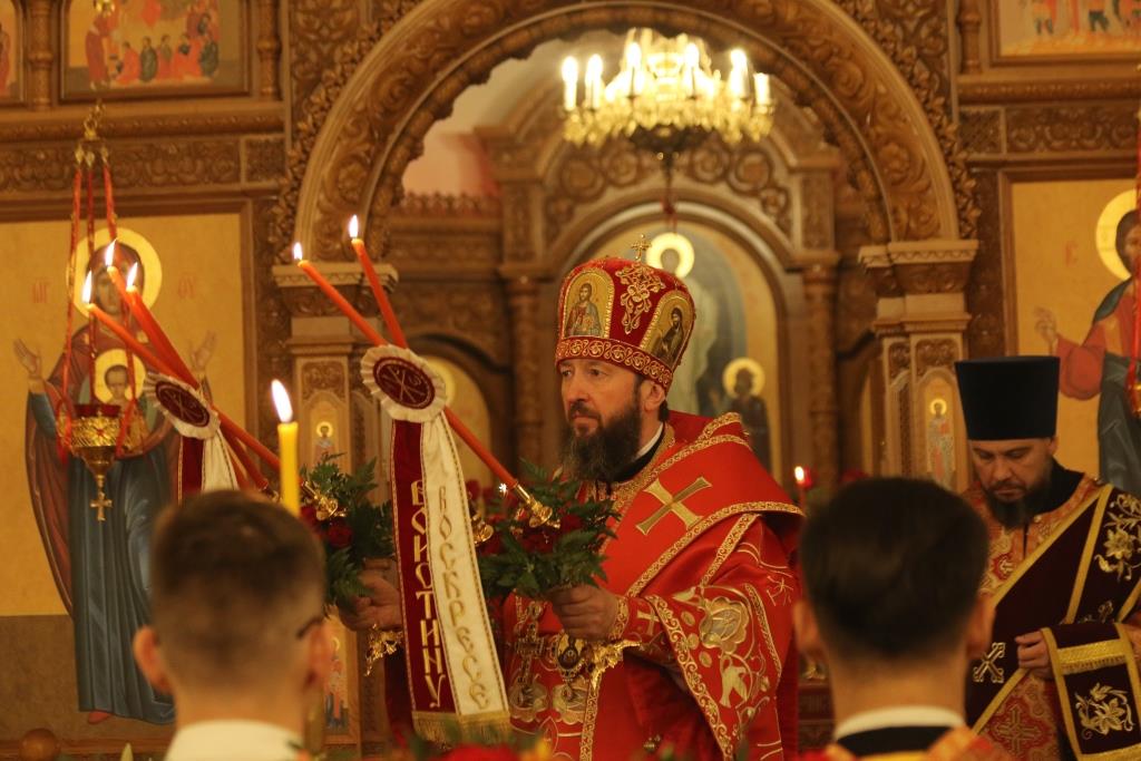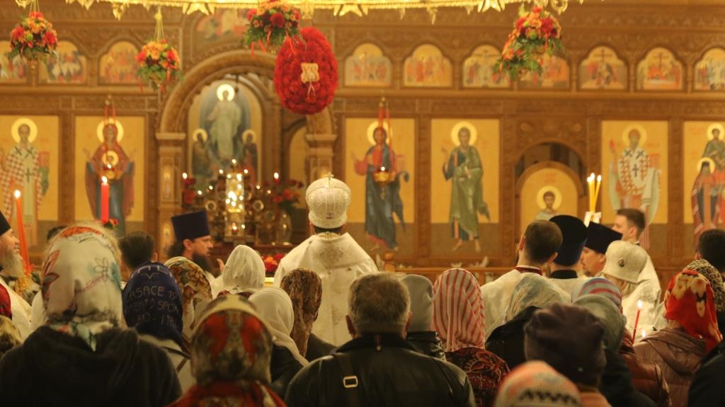 Пасхальные богослужения предварились чтением книги Деяний святых апостолов, общей исповедью для желающих причаститься Святых Христовых Таин за Божественной Литургией, и полунощницей с каноном Великой Субботы «Волною морскою», в котором повествуется о погребении Распятого на Кресте Сына Божия. На девятой песне канона Святая Плащаница была внесена в алтарь и положена на Престол, где она будет пребывать до праздника Вознесения – в память о сорокадневном пребывании на земле Воскресшего Господа.