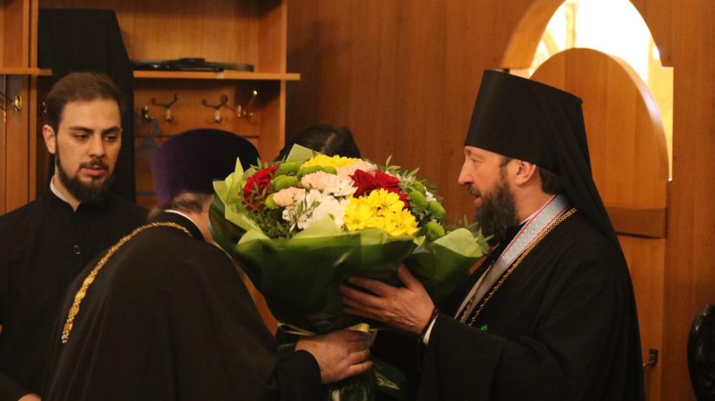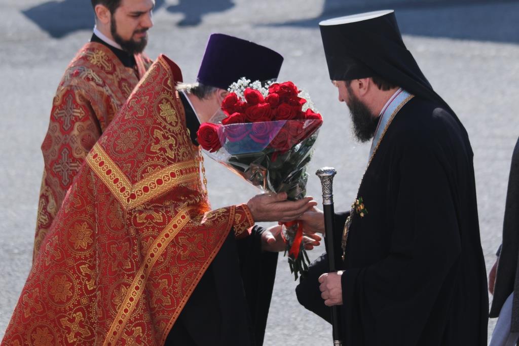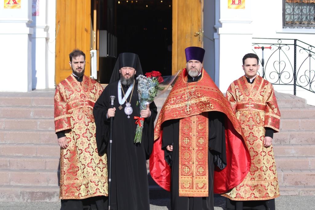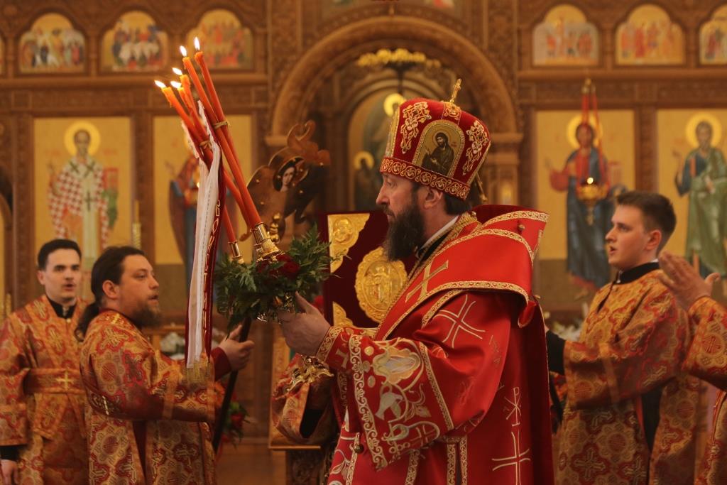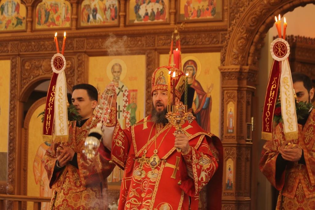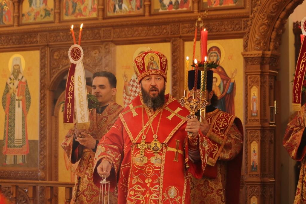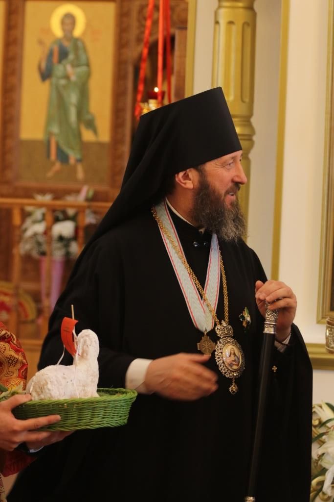 После чтения Пасхального послания Преосвященнейший Владыка обратился к духовенству и прихожанам с Архипастырским словом, в котором поздравил всех собравшихся с великим торжеством Пасхи Господней и пожелал всем трепетно хранить радость о тридневно Воскресшем Спасителе мира в своих сердцах, чтоб делиться этой светлой и спасительной вестью со всеми близкими. После проповеди духовенство и прихожане поздравили Преосвященного Владыку с праздником Воскресения Христова.